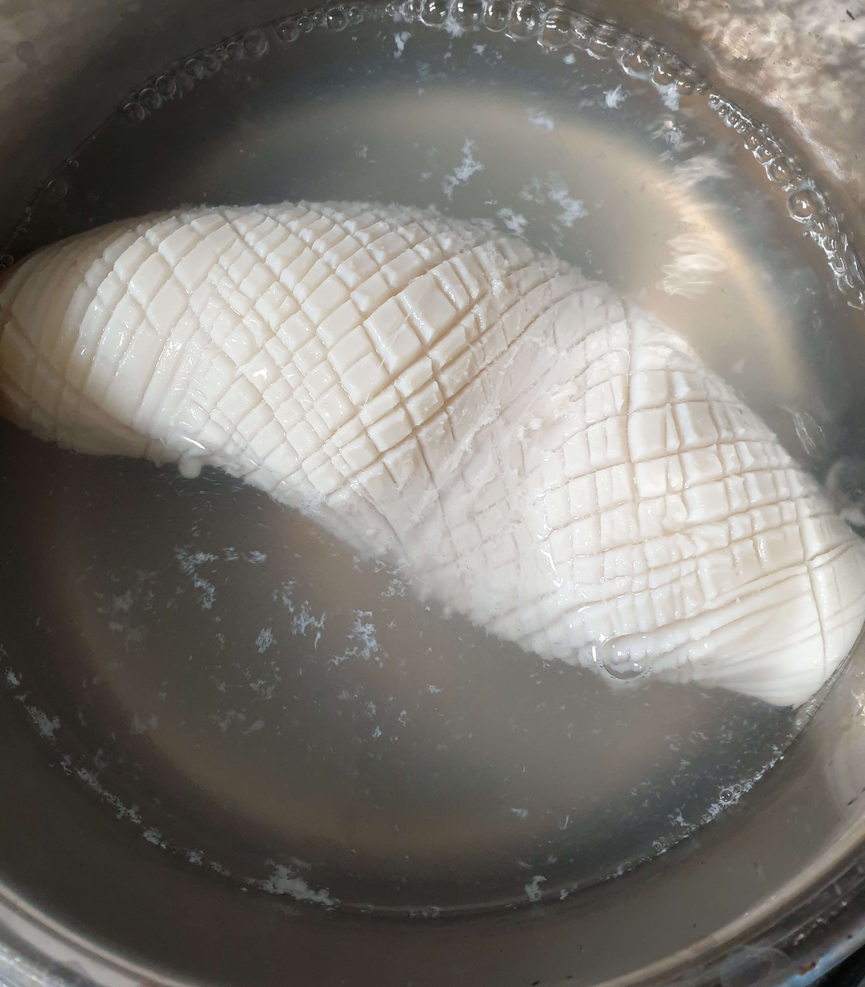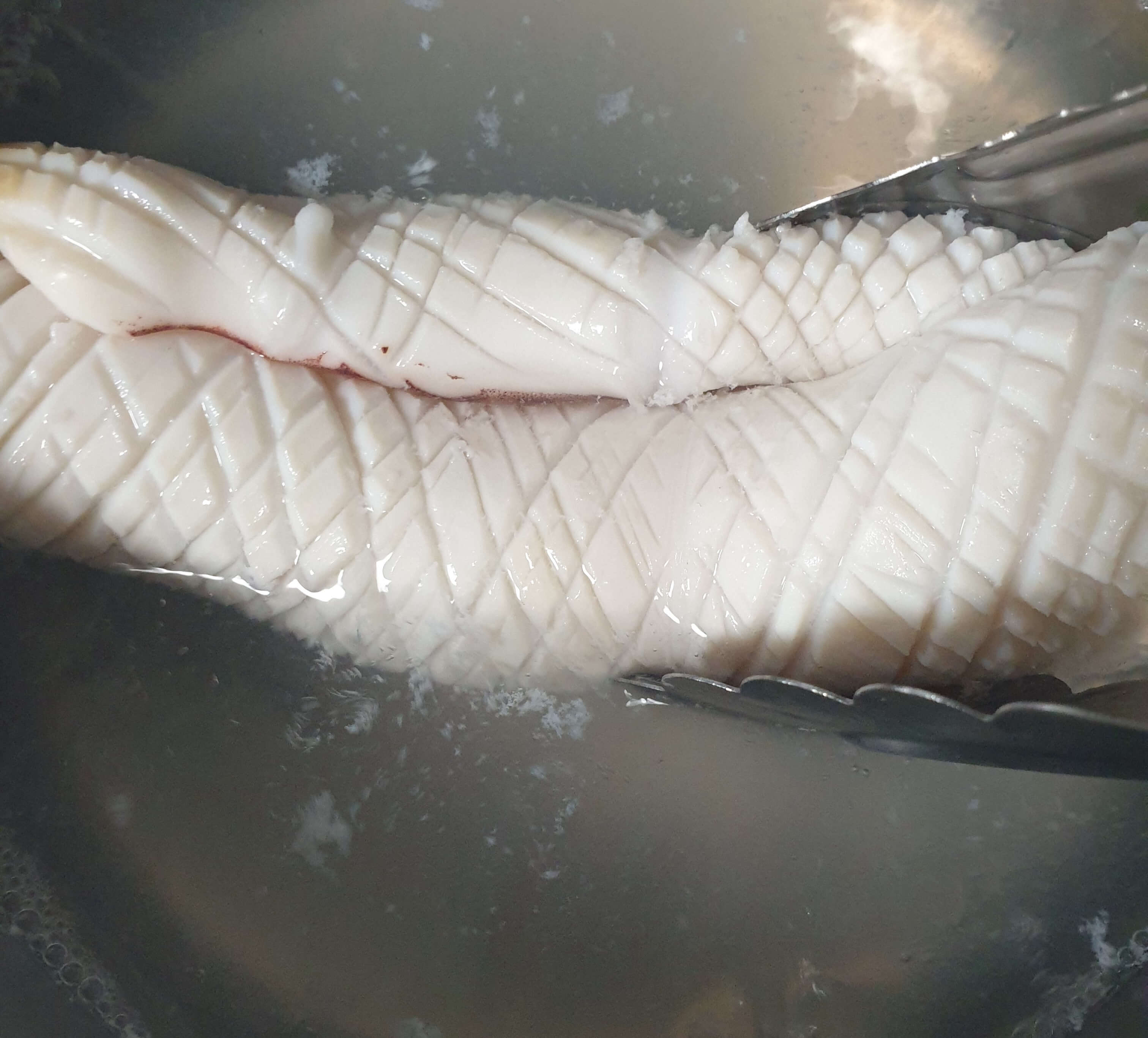 오징어를 40초 정도만 짧게 데쳐 주세요.