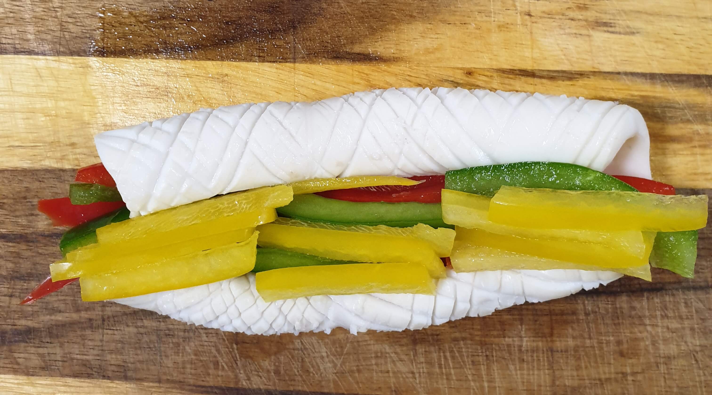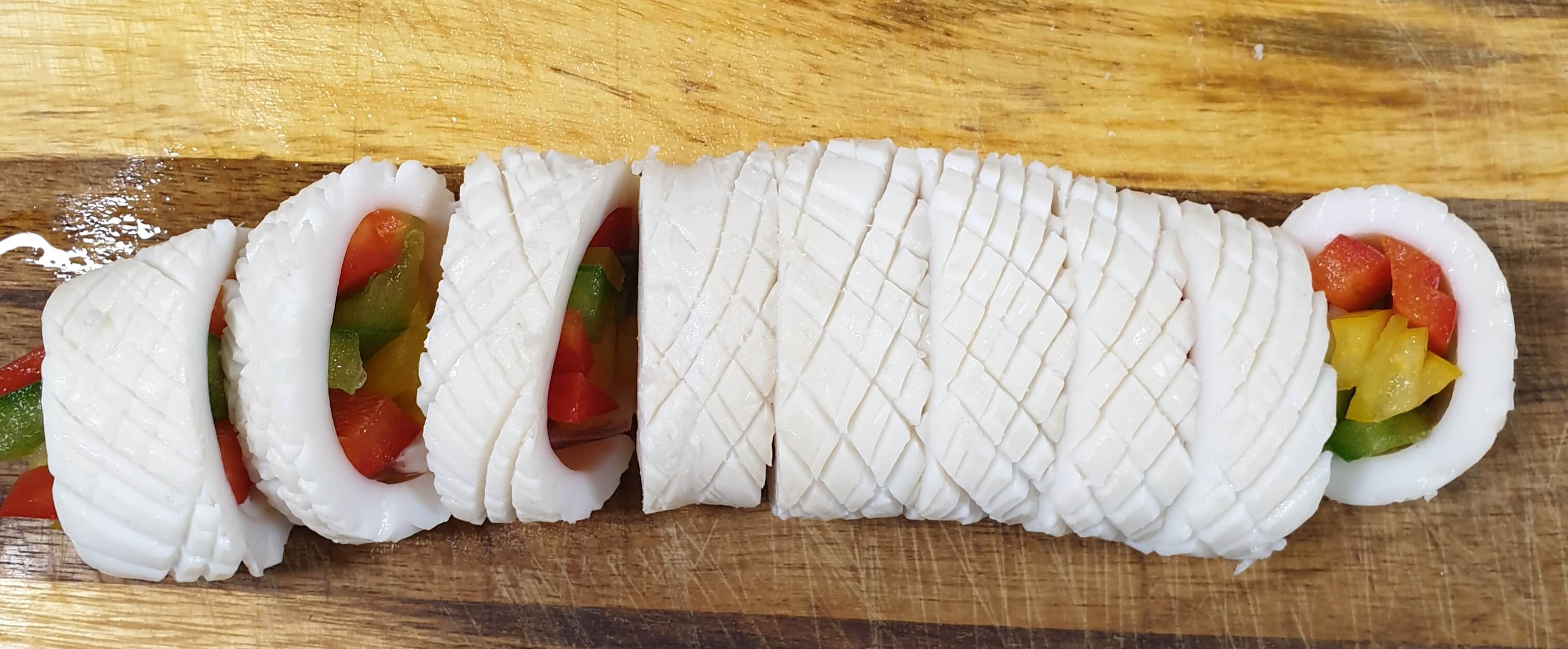 냉동고에 있던 오징어를 꺼내 만들어 봤어요.