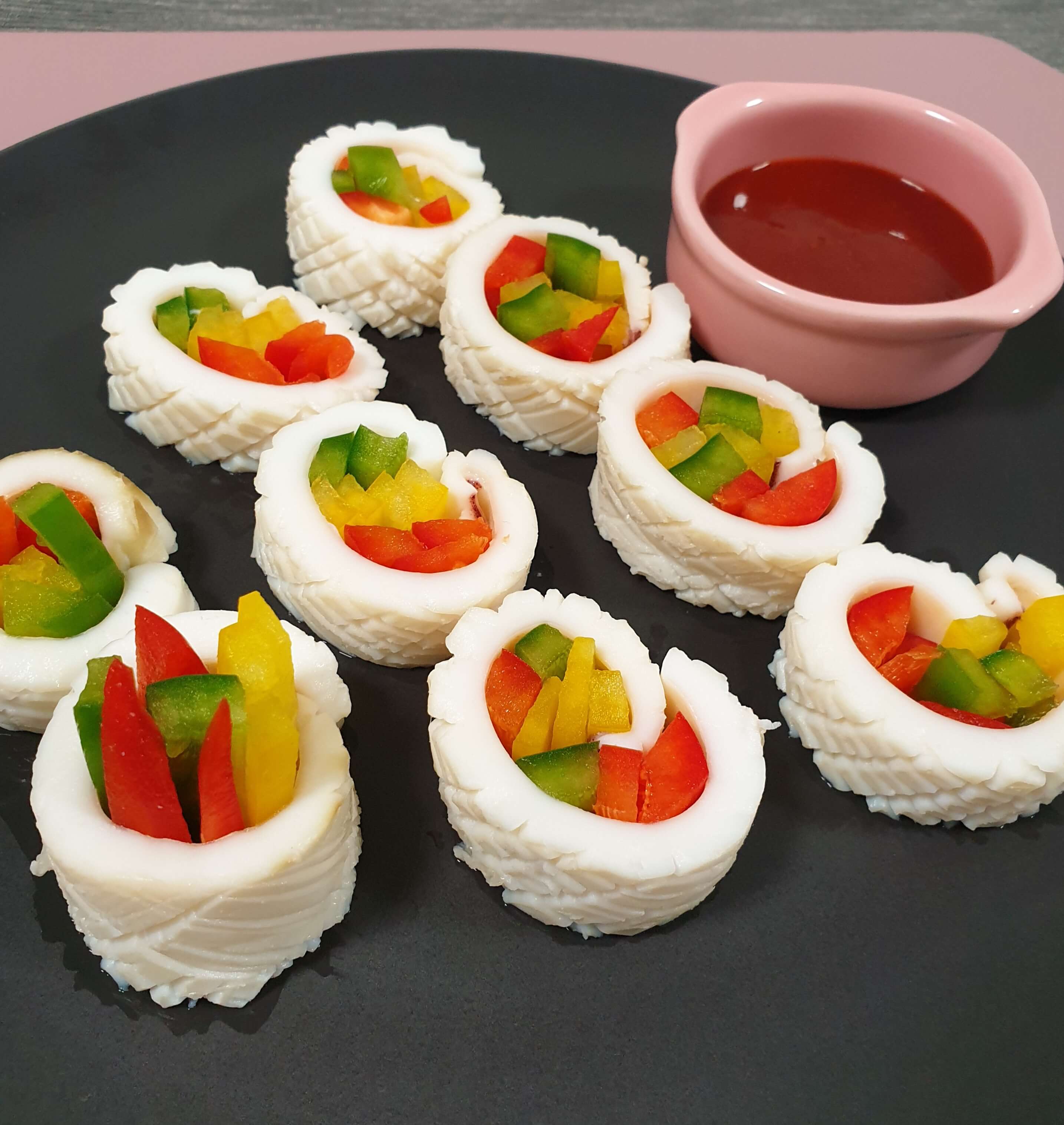알록달록 예쁜 오징어 숙회가 나오더라고요.