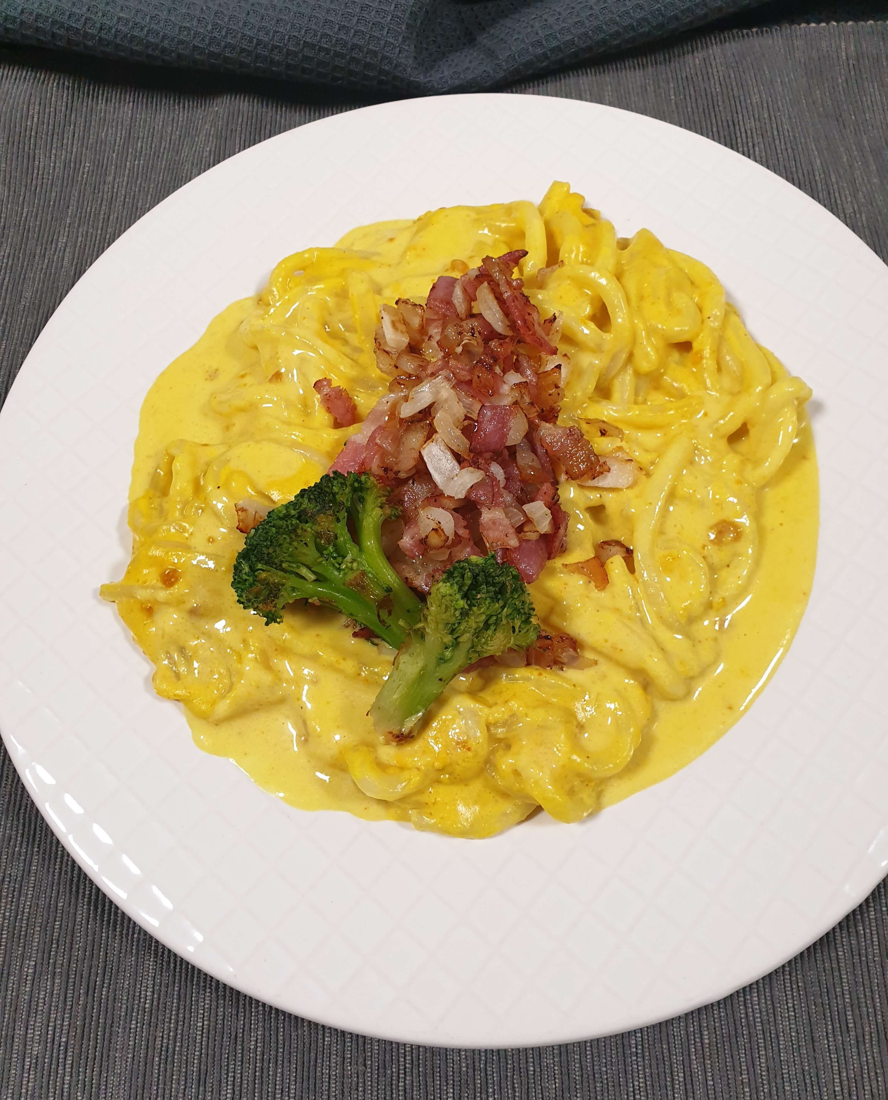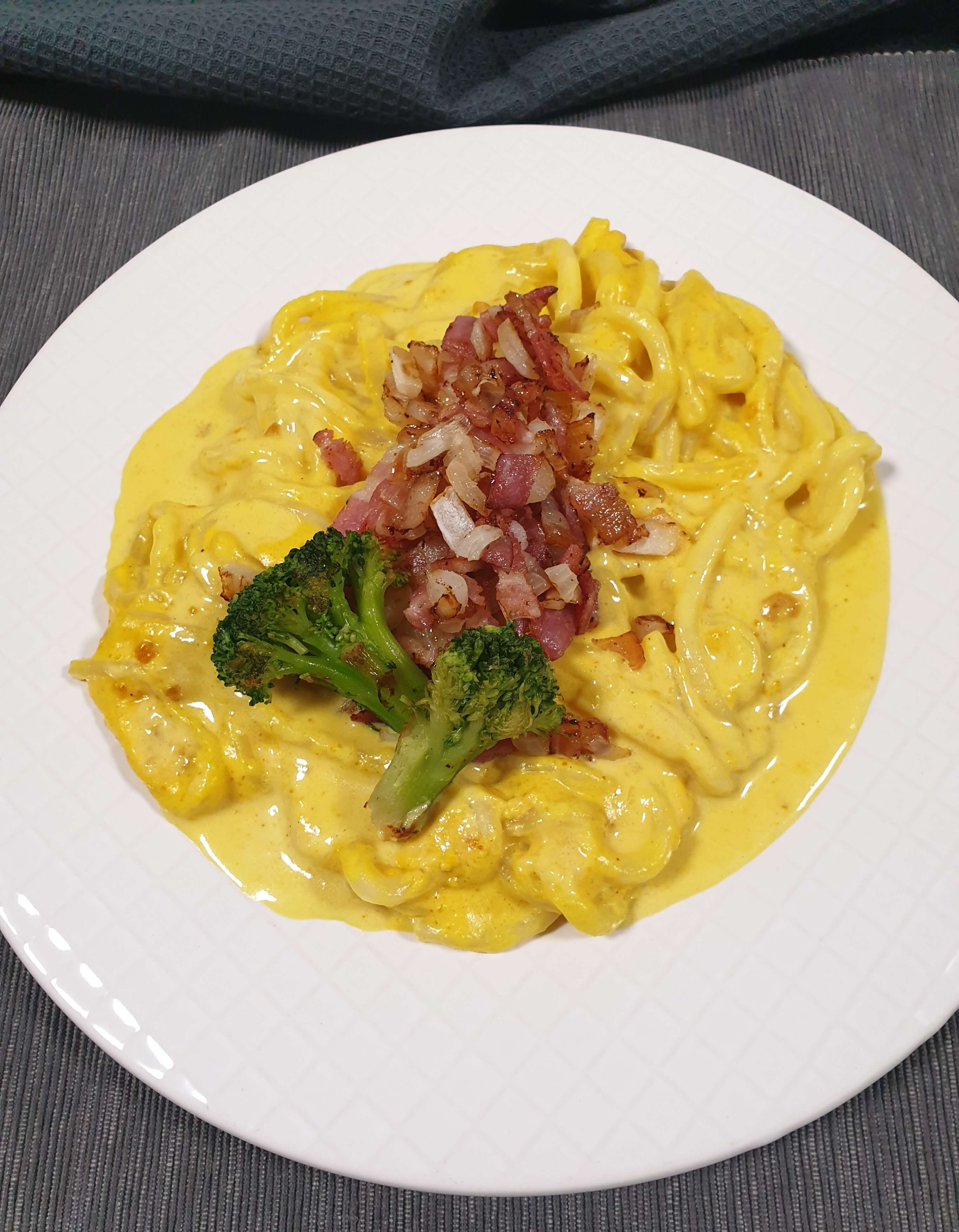 양파, 베이컨과 브로컬리를 가니쉬로 올려줬어요.