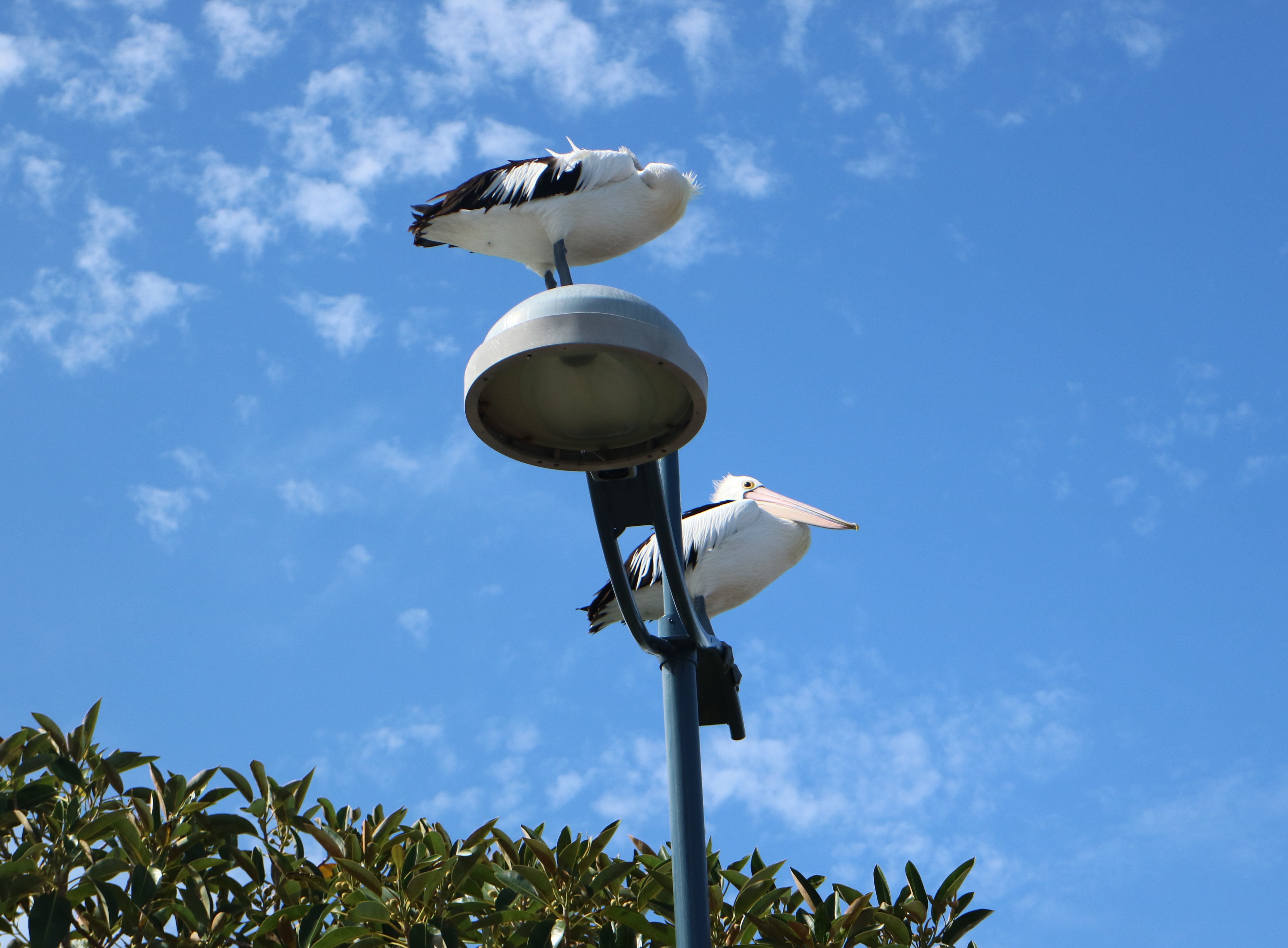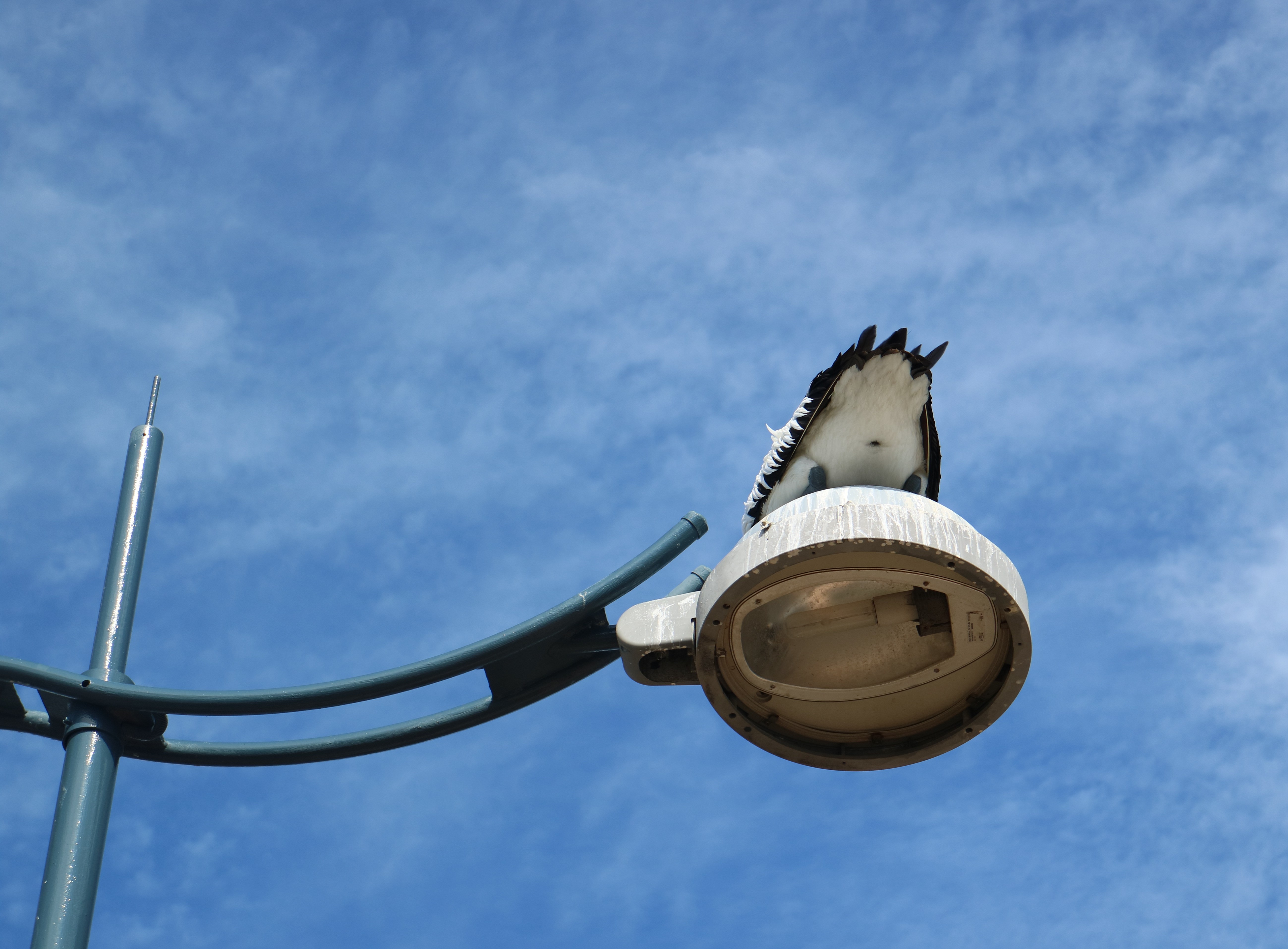 엄청 높은 가로등 위에 앉아 있었어요
