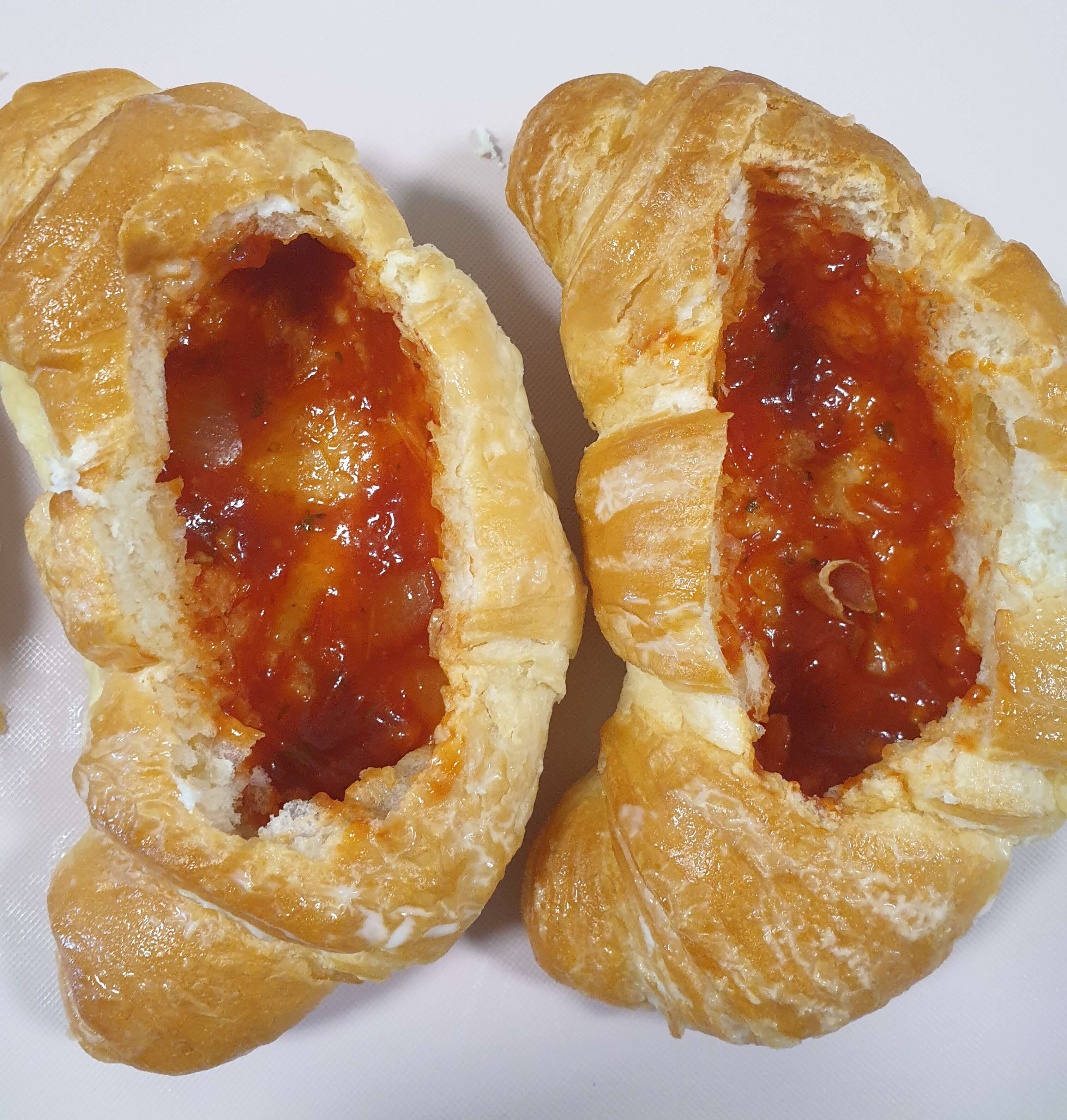 제일 먼저 크루아상 속을 파내 주세요.