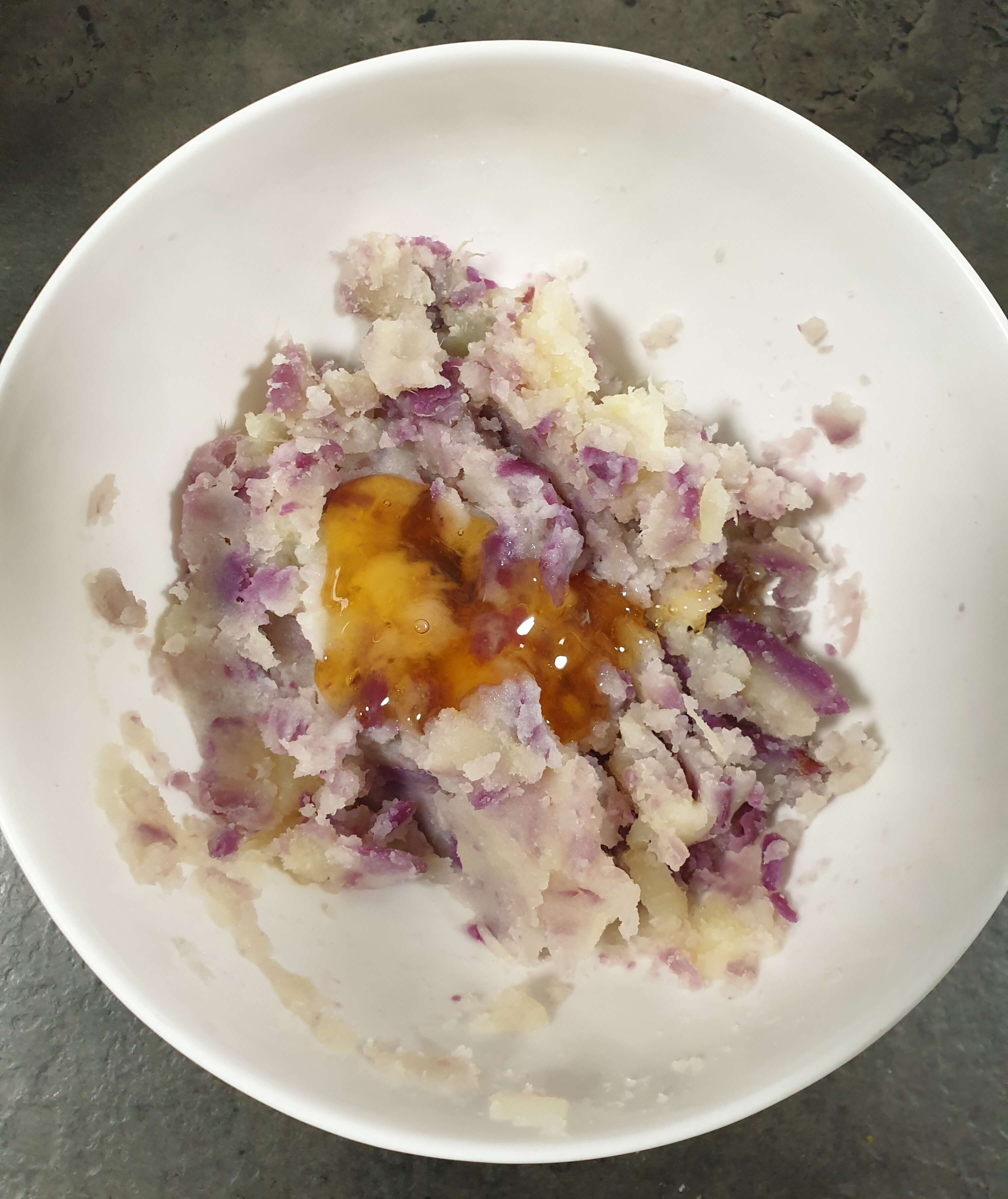 고구마 1개를 삶아 으깨 주세요.