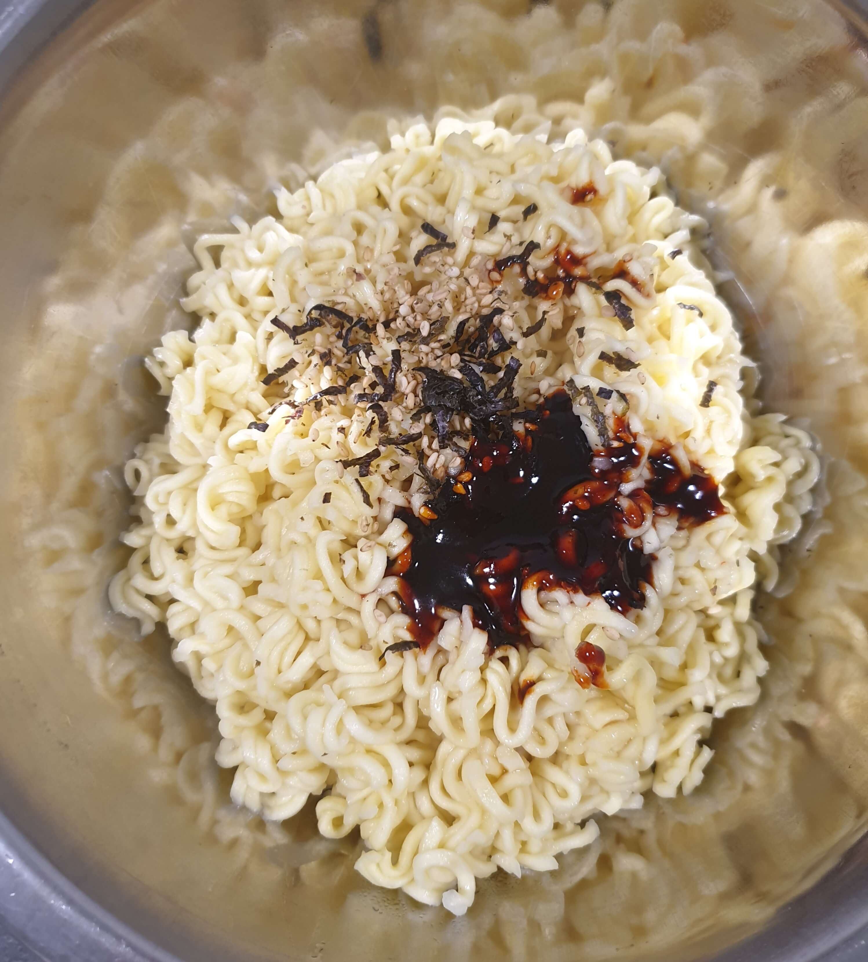 후레이크와 불닭 소스를 2/3만 넣어줬어요.