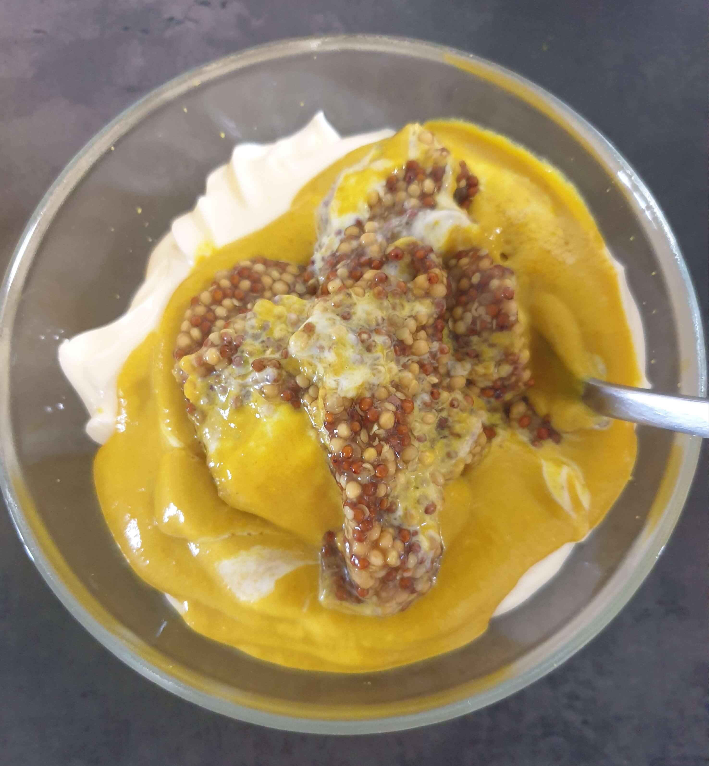 소스- 마요네즈, 머스터드, 설탕, 씨 겨자