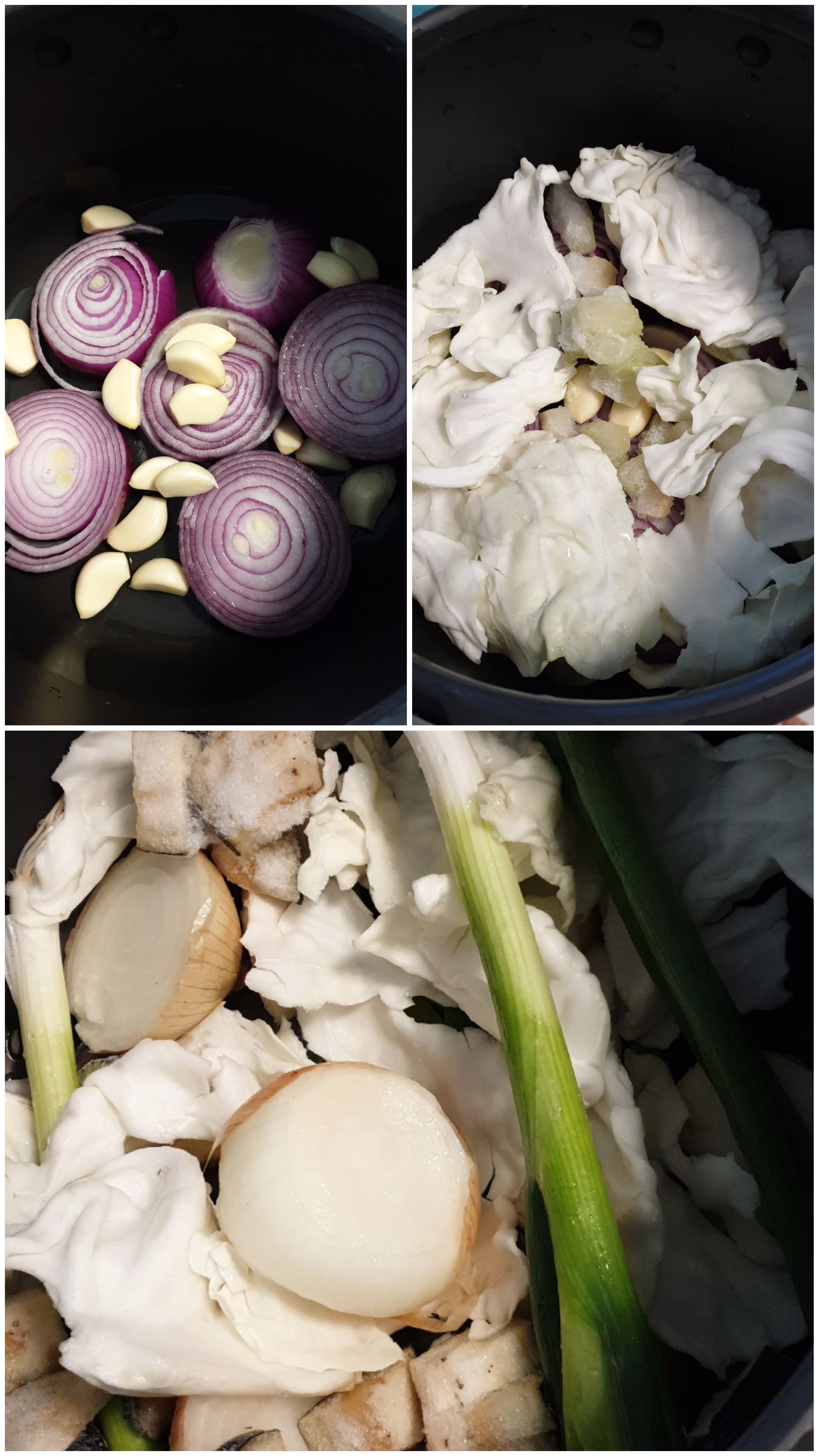 어떤 날은 양파, 대파, 양배추, 가지를 넣기도 하고요