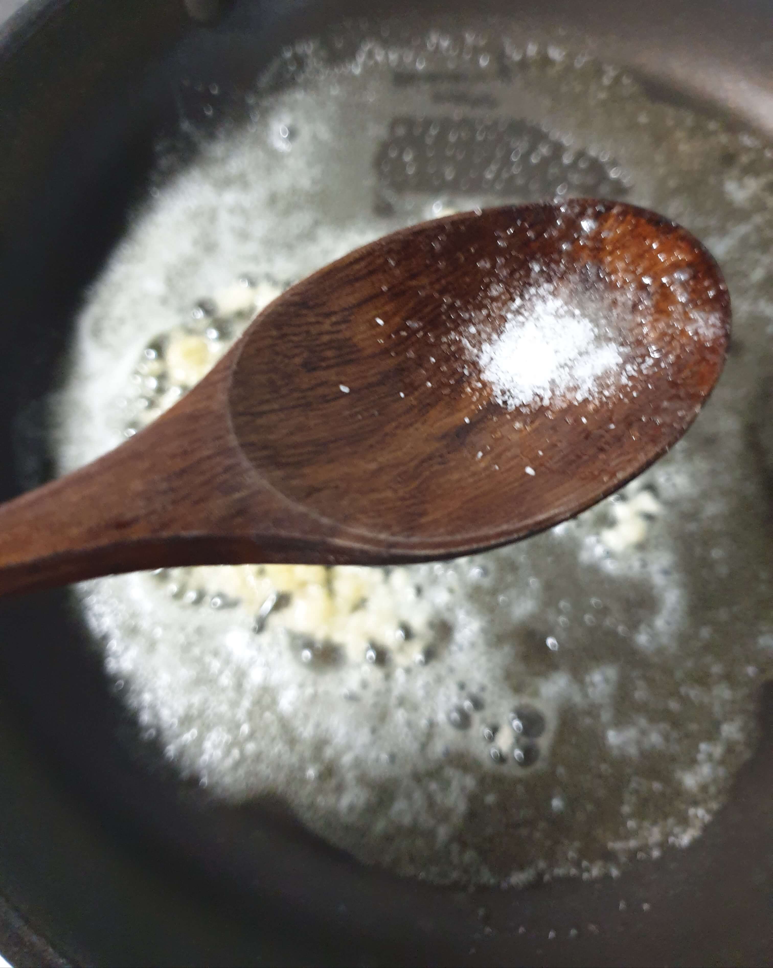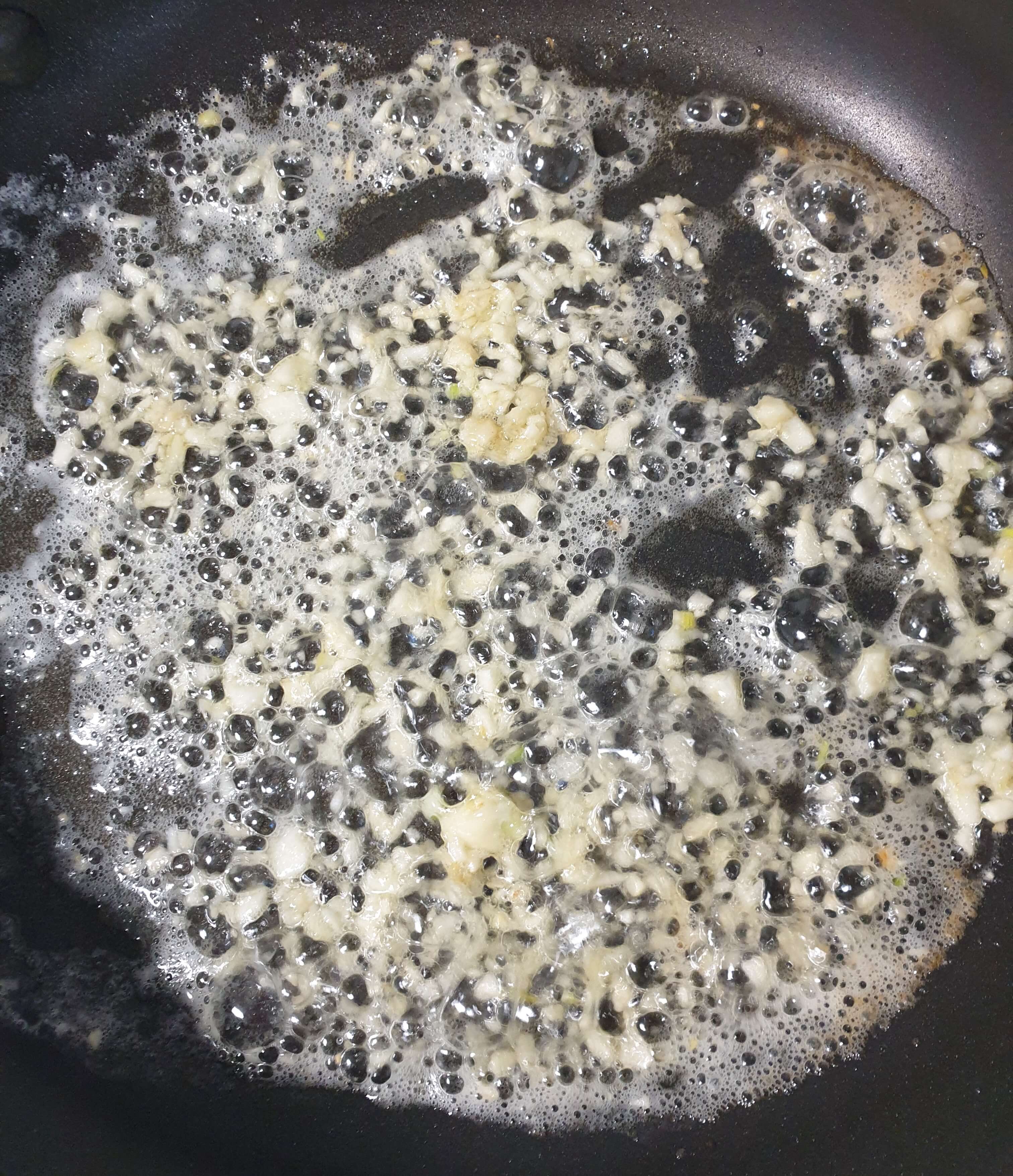 마늘이 노릇노릇 충분히 볶아졌을 때