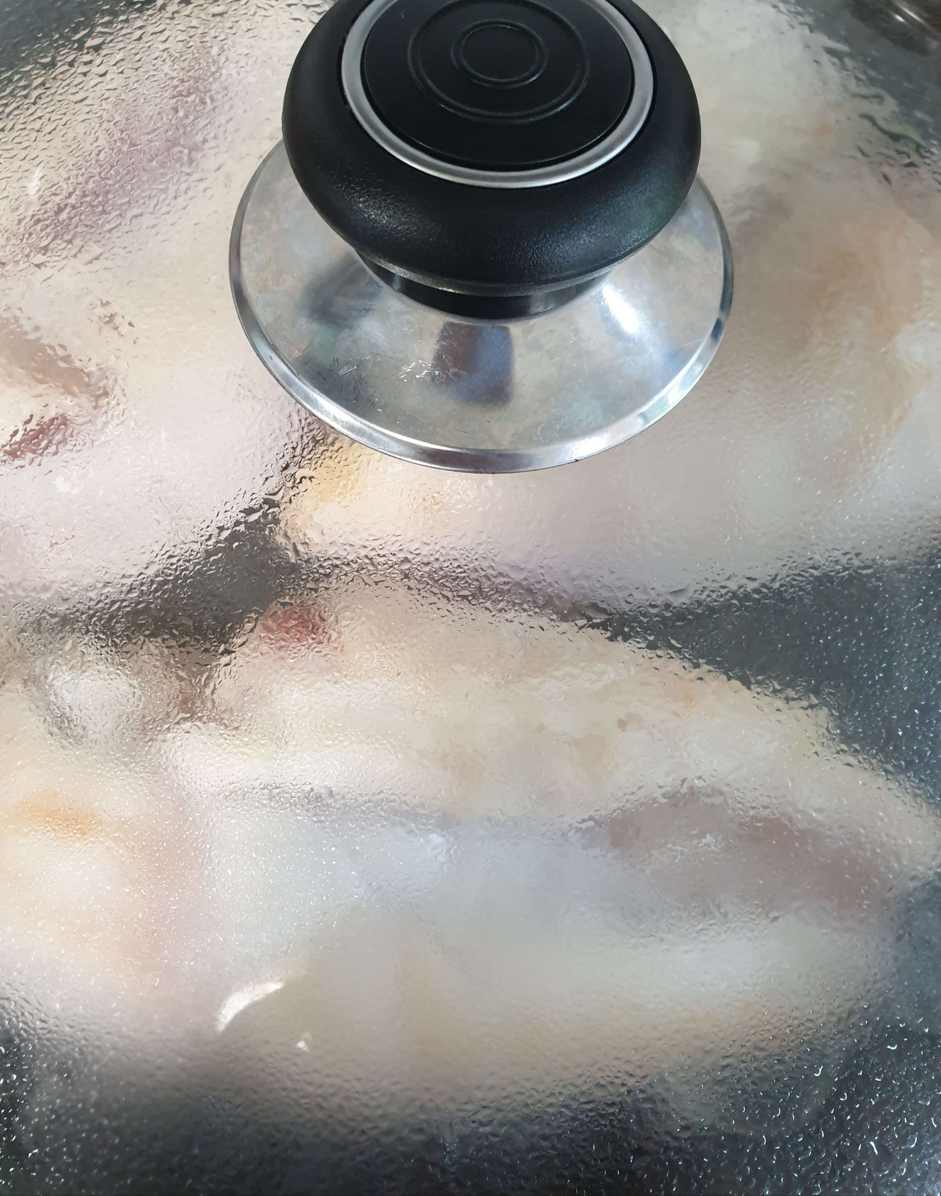 헹구지 않고 닭만 건져내서 바로 구워 주세요.