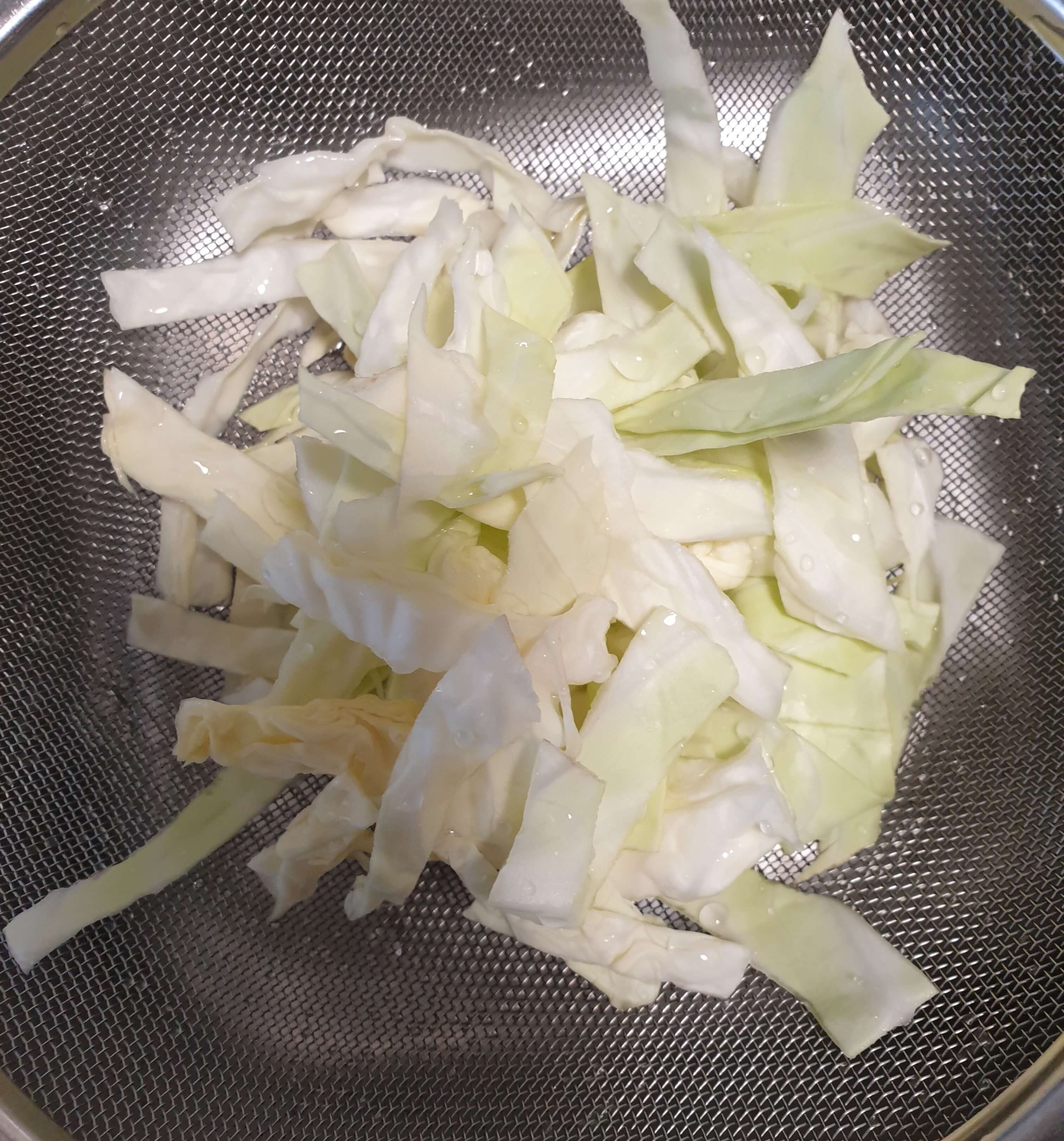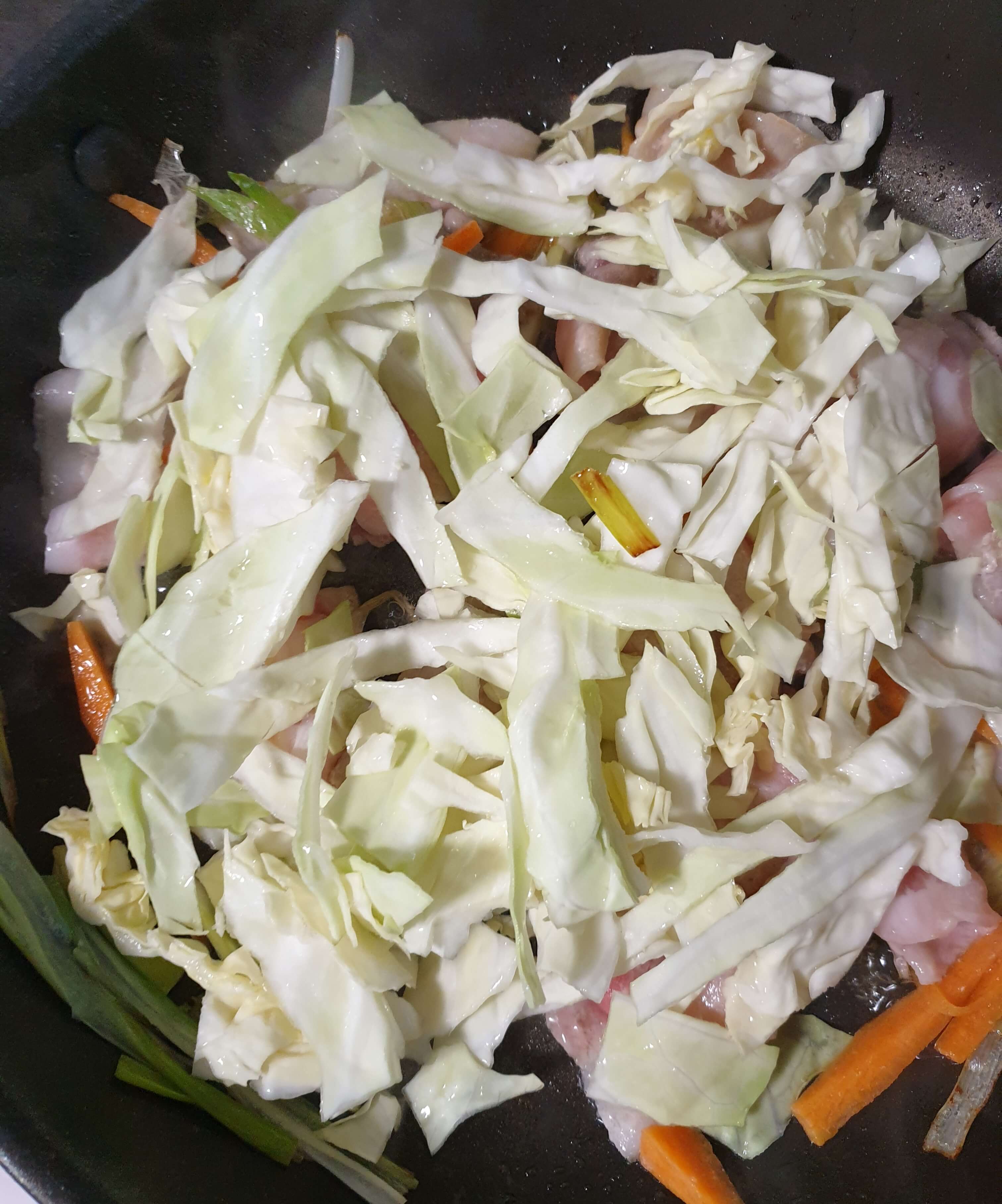 팬에는 양배추를 넣고 마무리로 볶아 주세요.