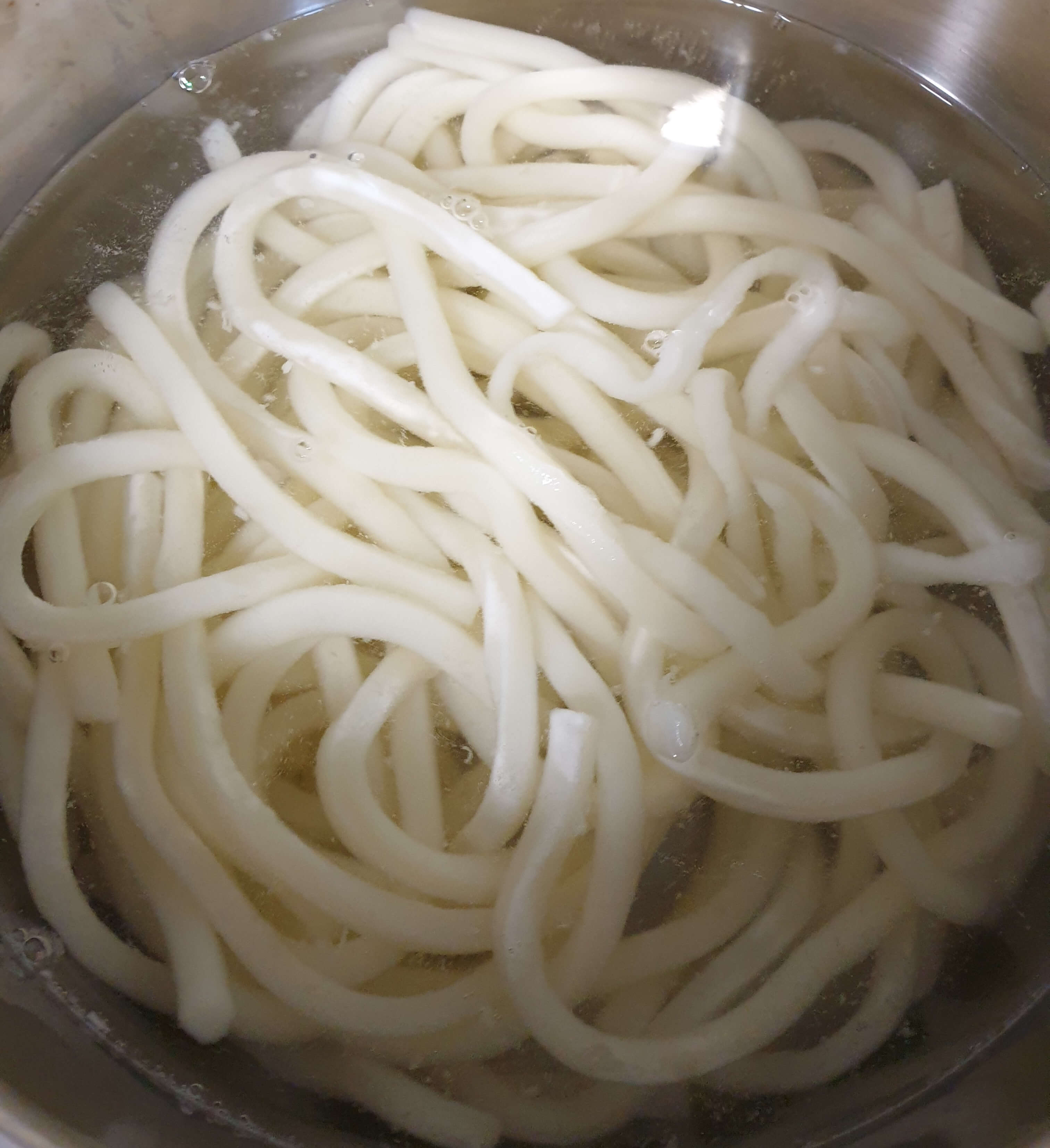 우동 면을 삶아 주세요.
