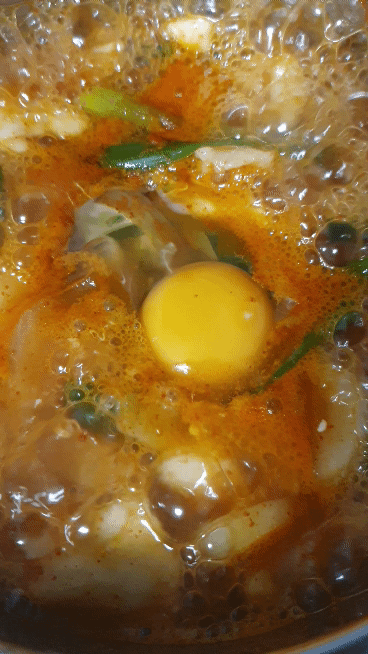마지막으로 계란 하나를 톡 까서 넣어 주세요.