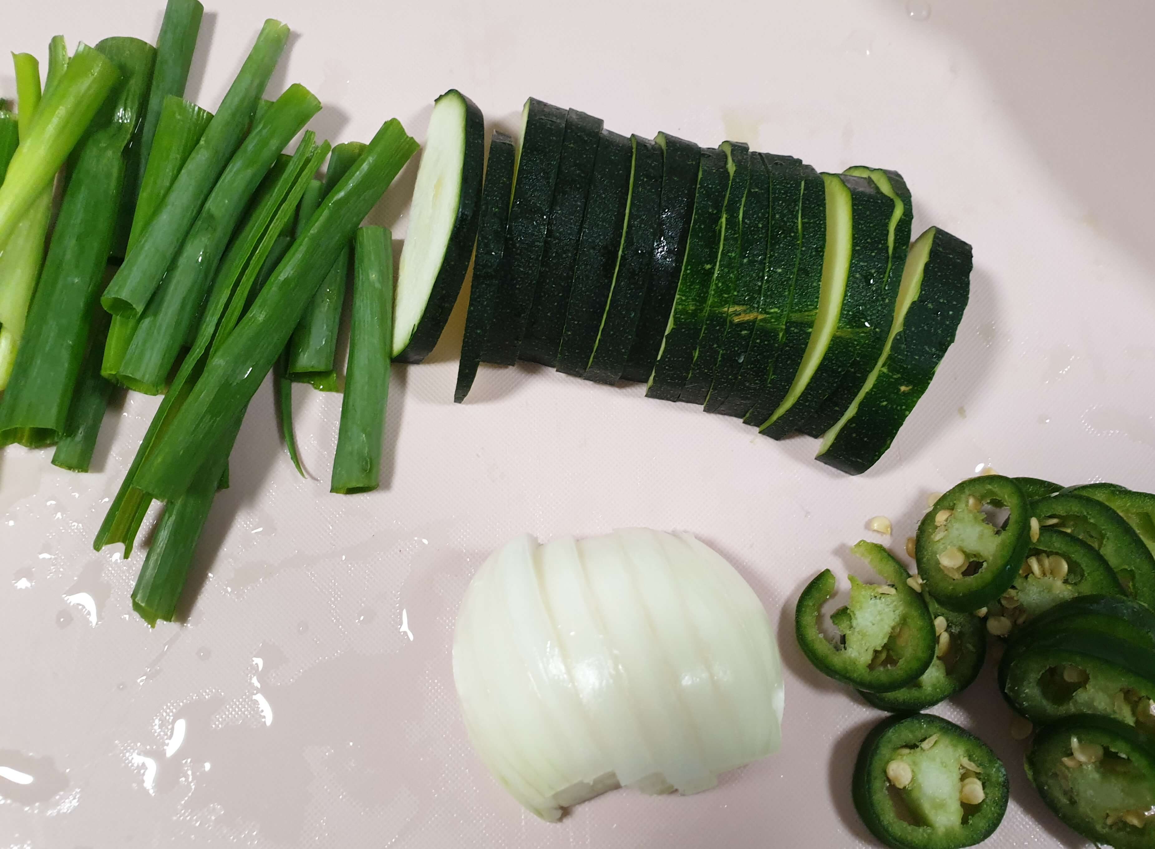 애호박, 양파, 청양고추를 썰어서 준비해 주세요.
