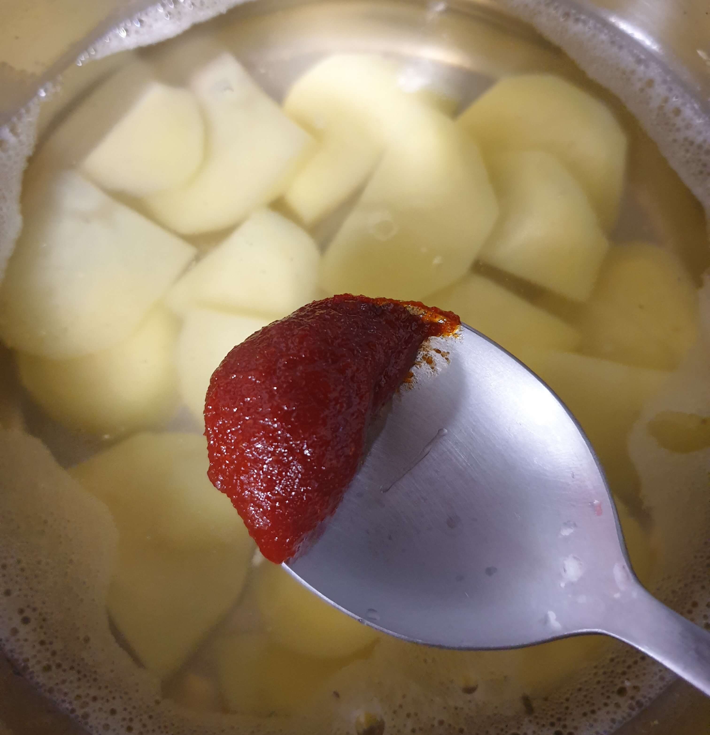 그래서 고추장은 조금만 넣고 끓이는데