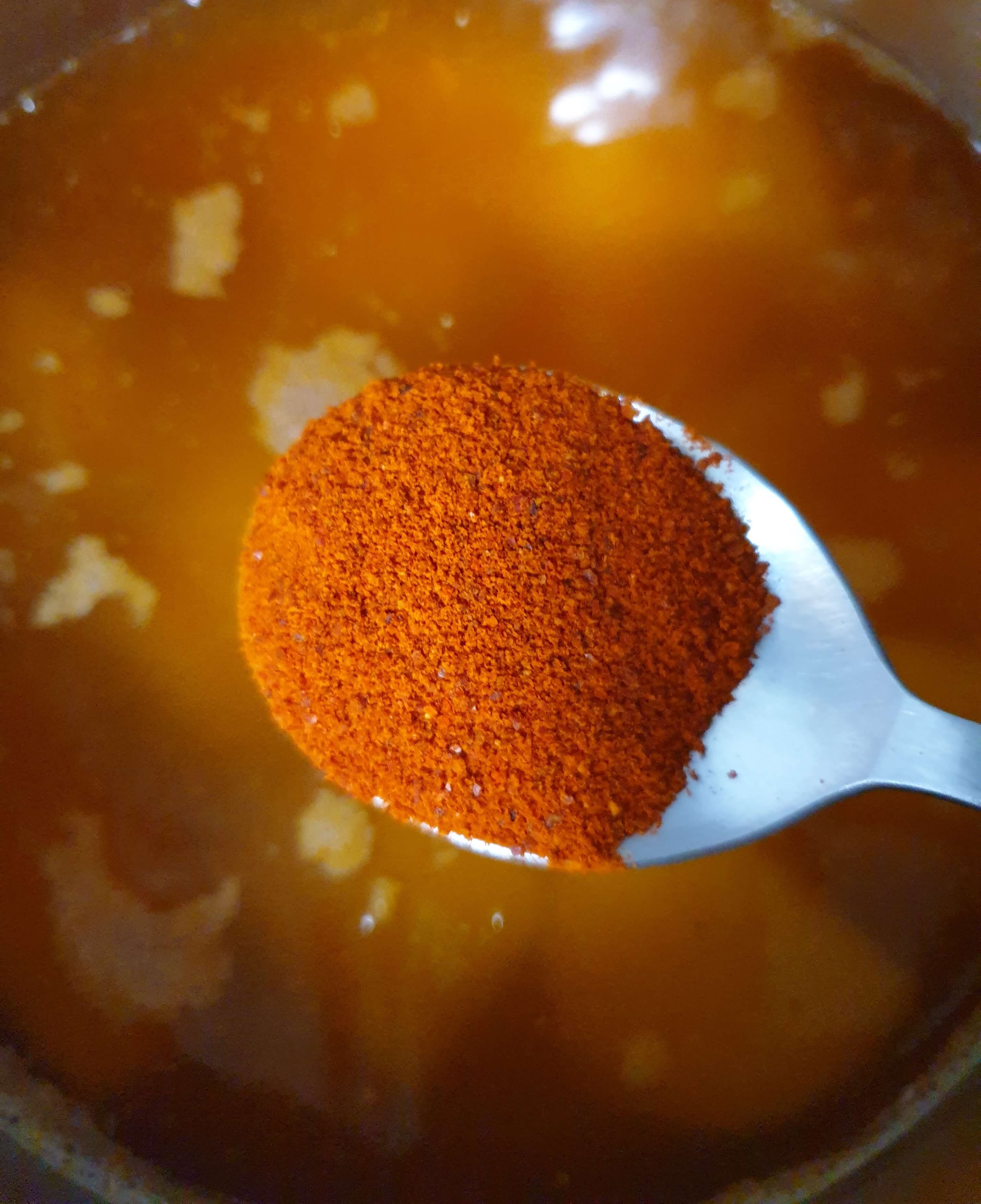 고춧가루 1큰술을 넣고 끓여 주세요.