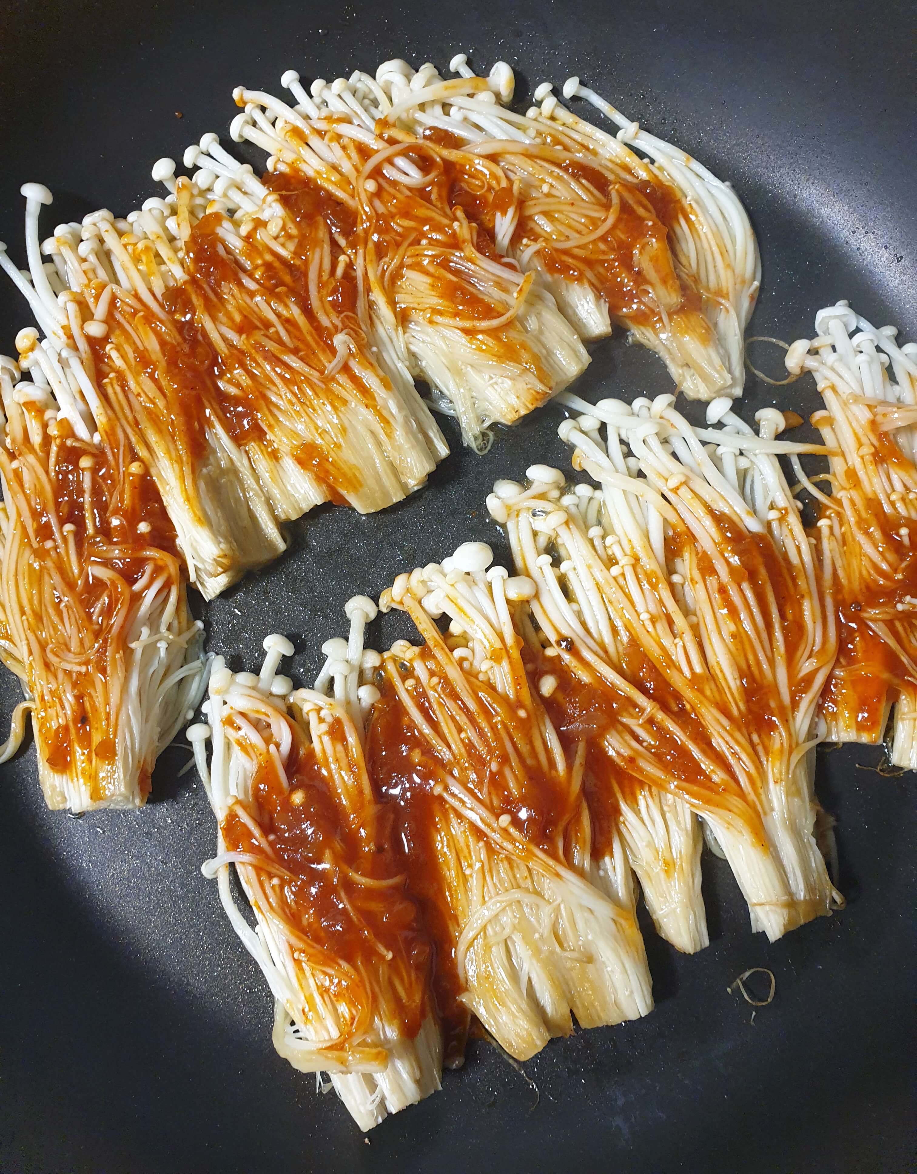 매운 팽이버섯 조림을 만들어 봤어요.