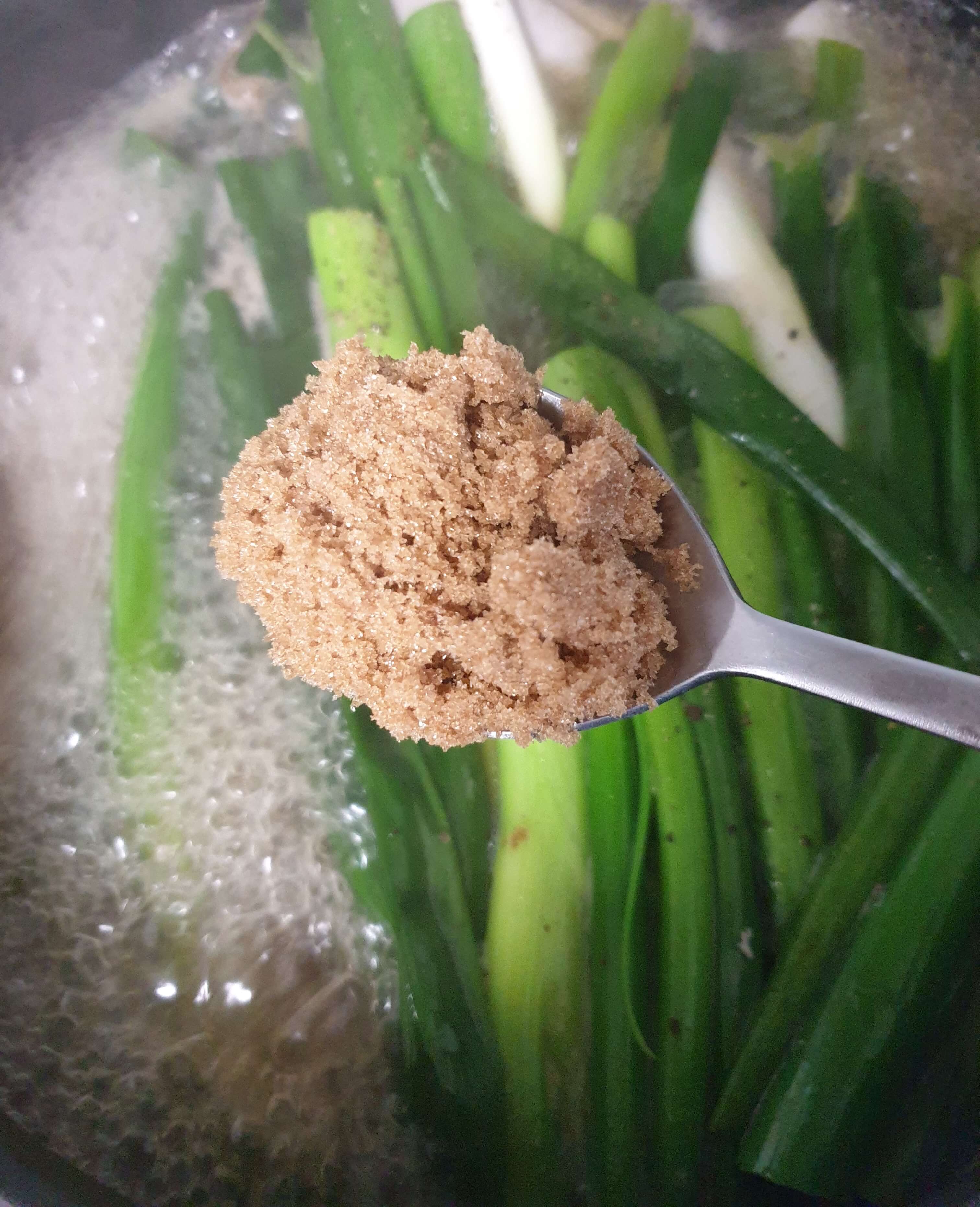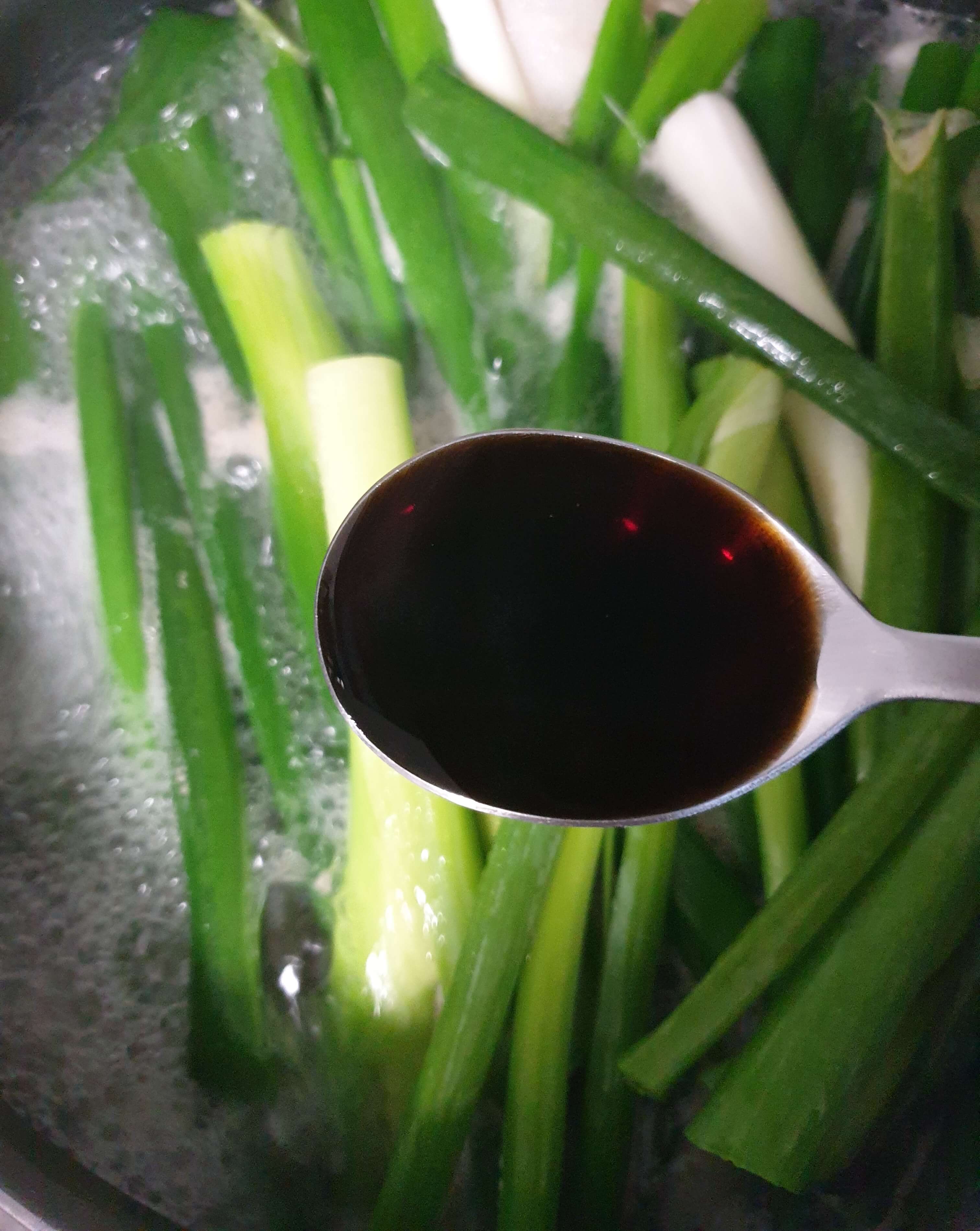 국물 맛을 보고 간장 2큰술 추가했네요.