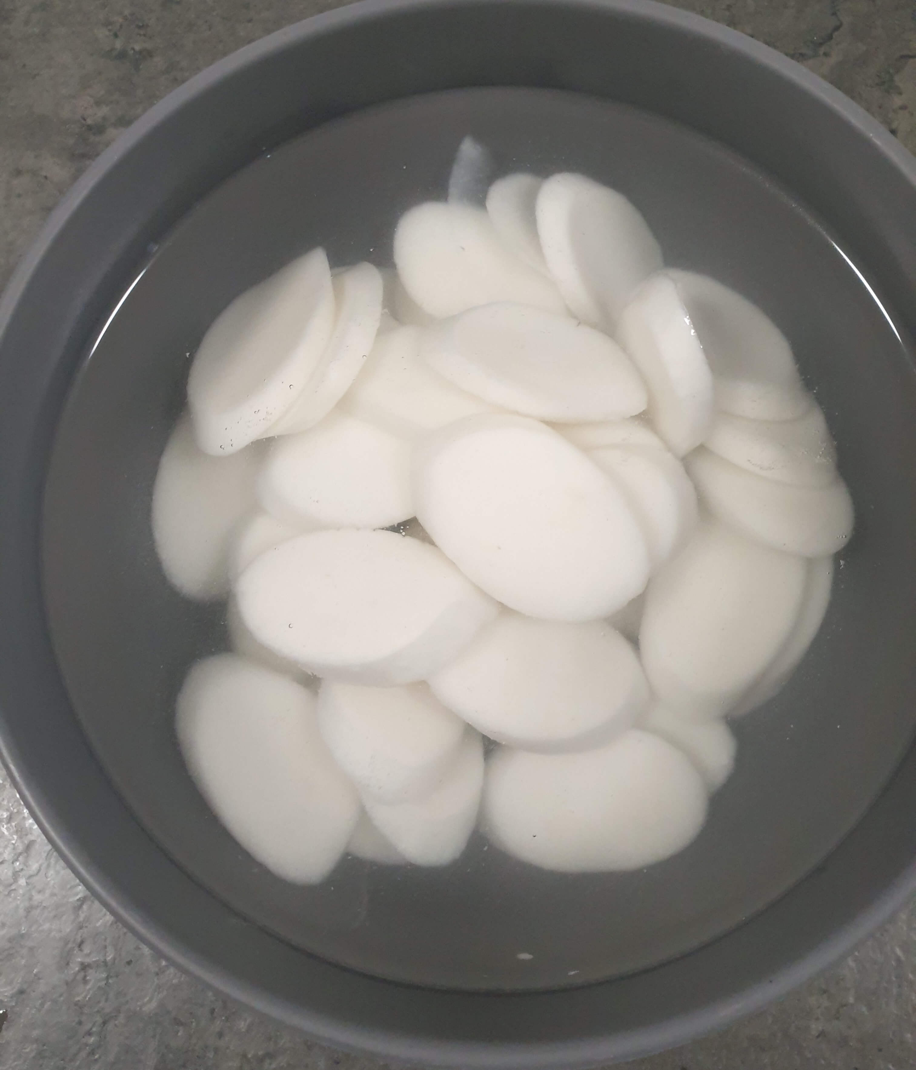저는 냉동 떡이라 물에 살짝 담가 뒀어요.