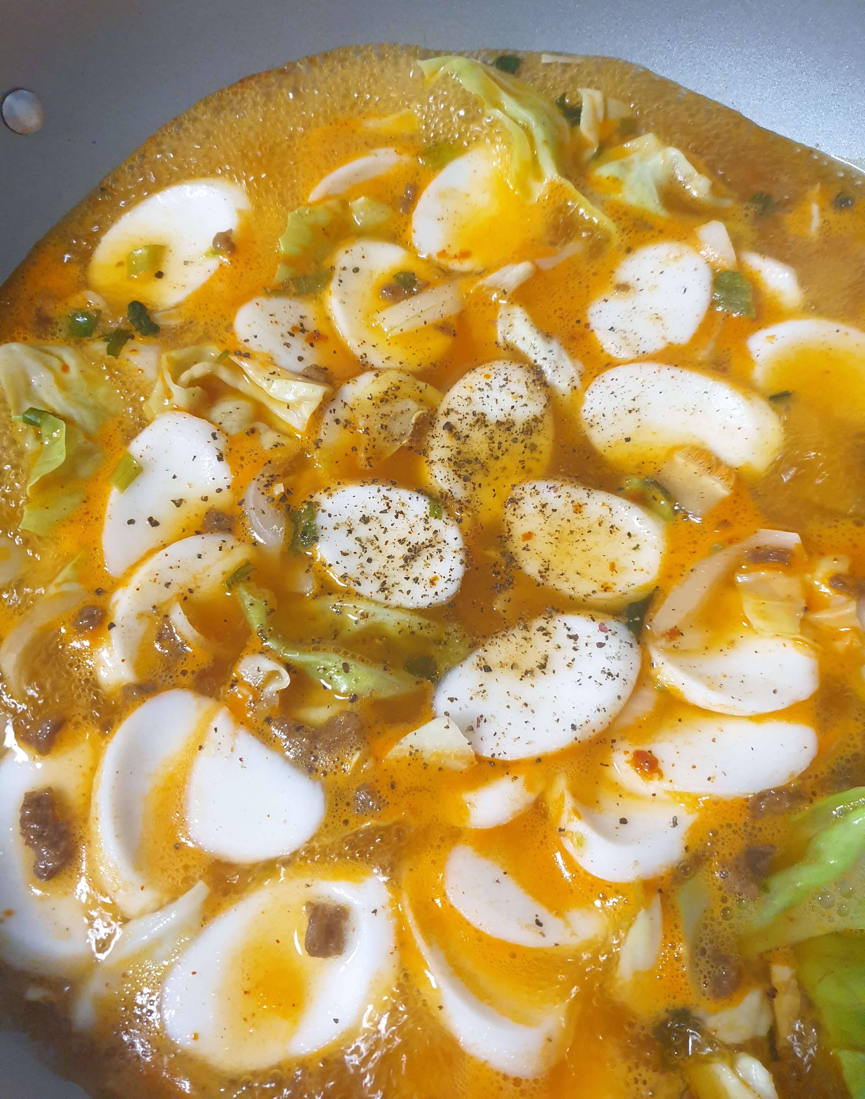 진라면 2개와 떡국떡을 취향껏 준비해 주세요.