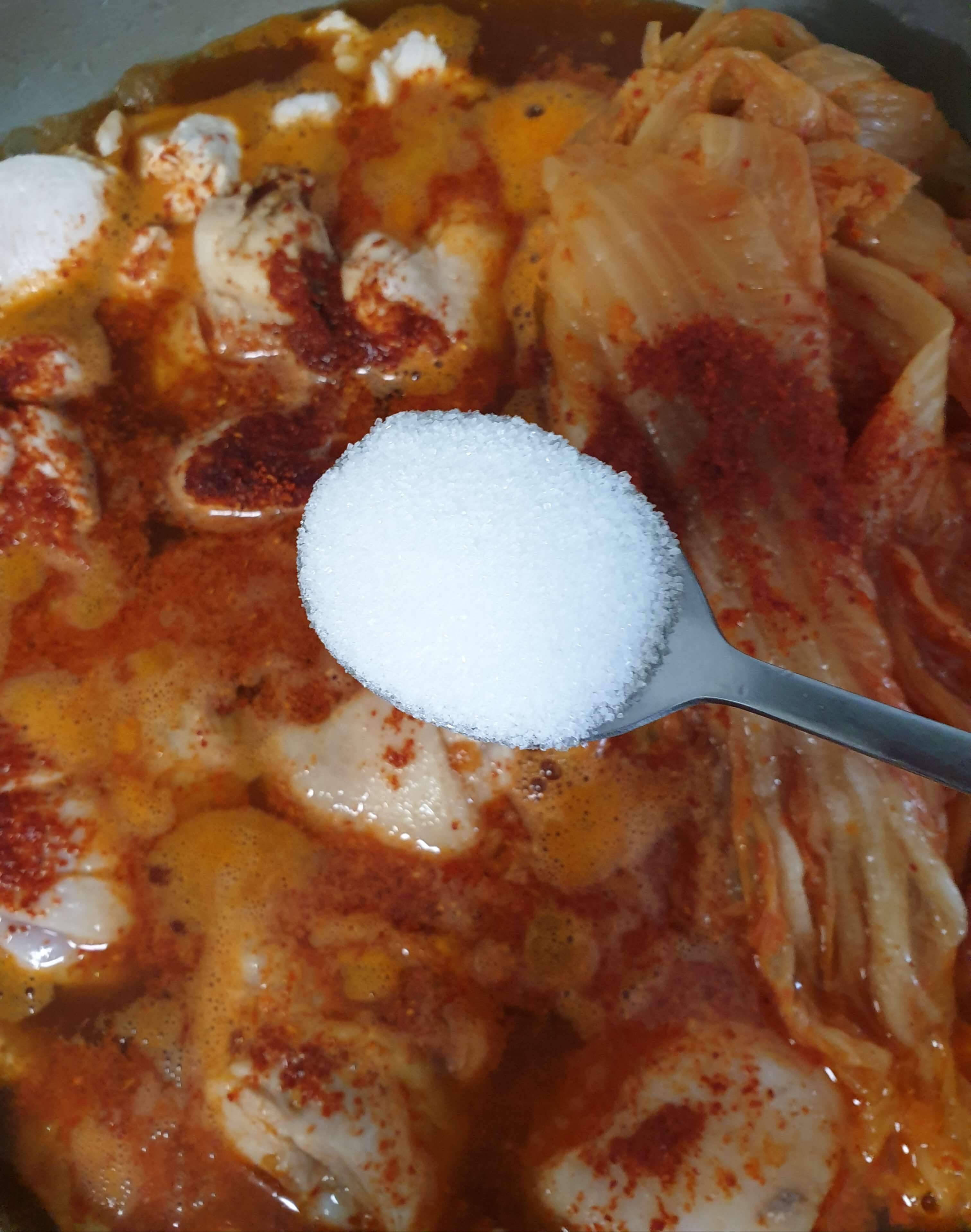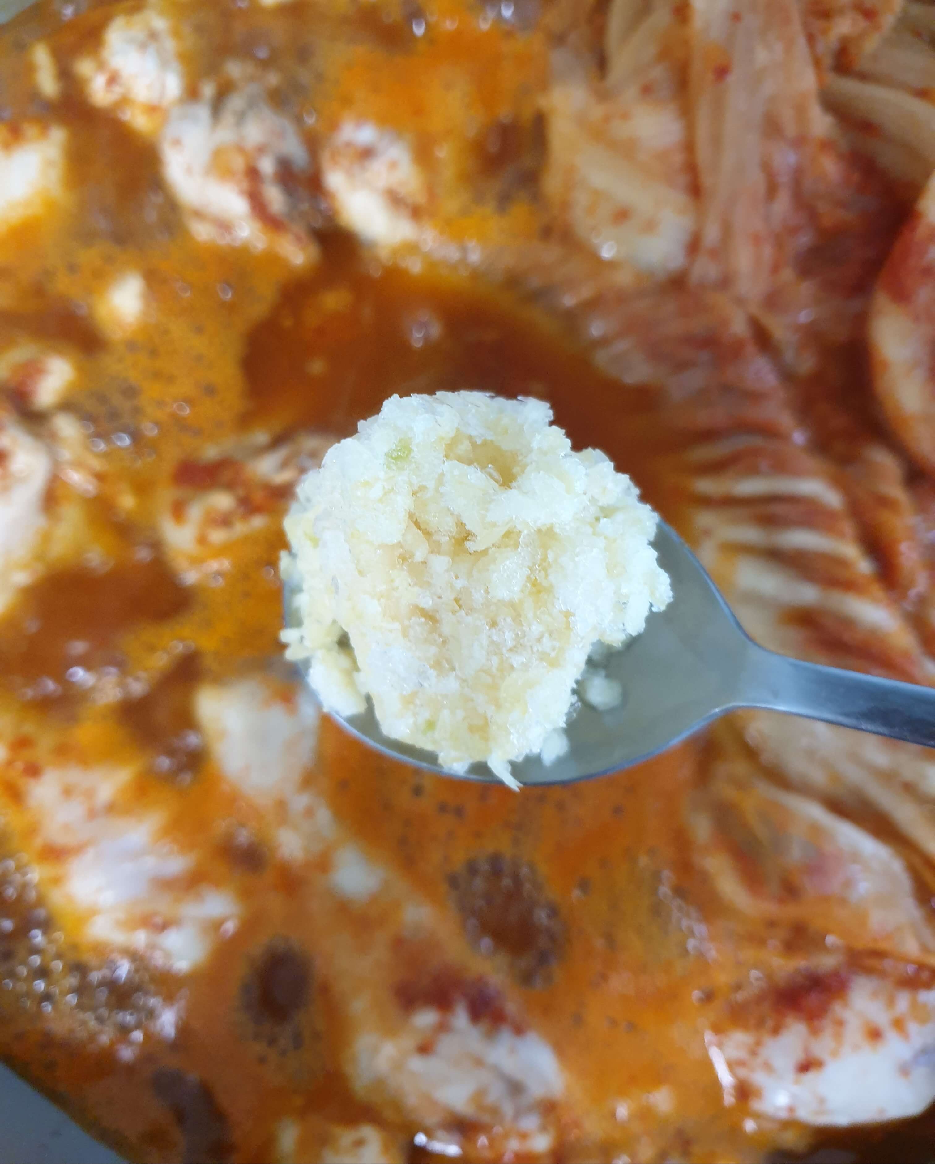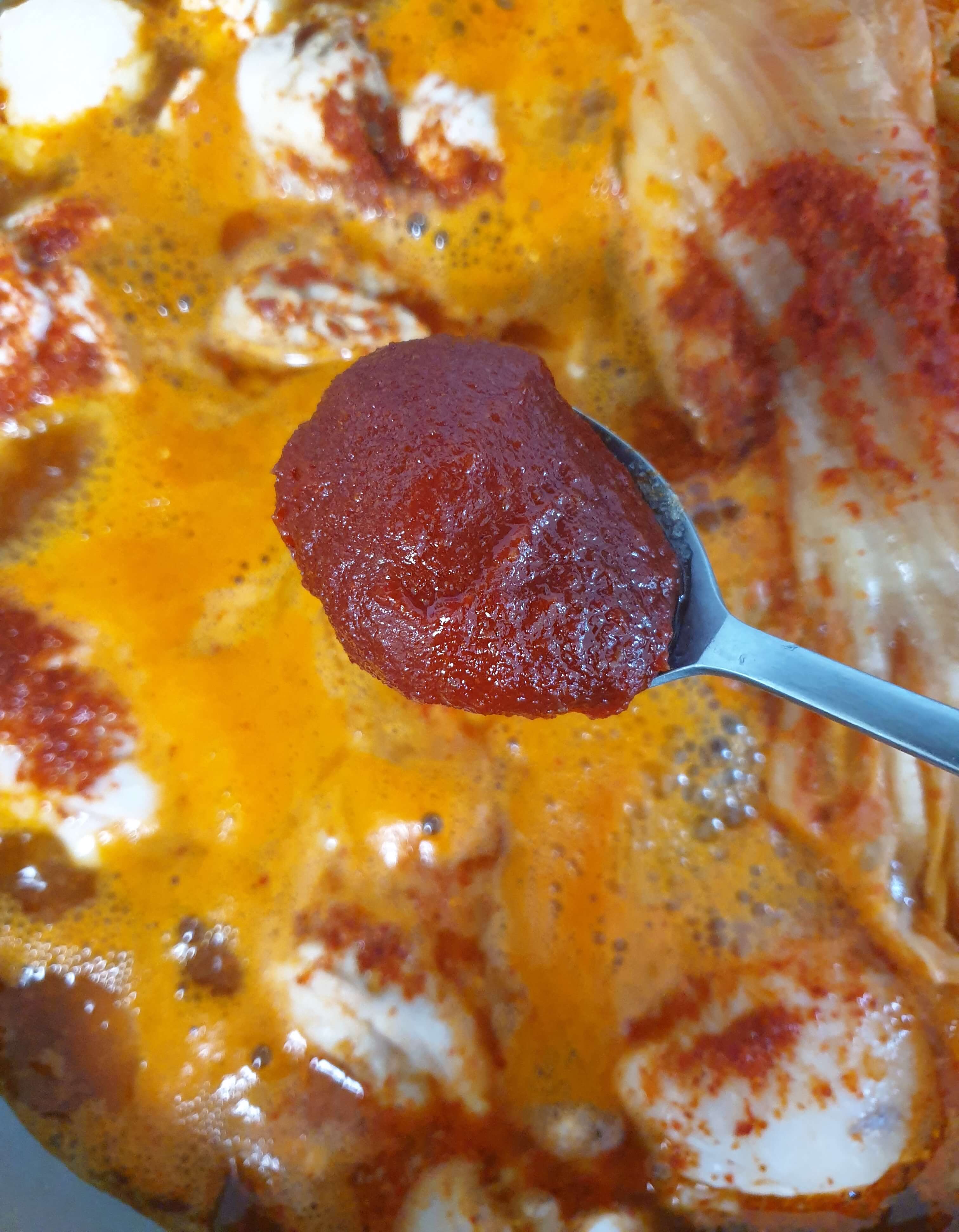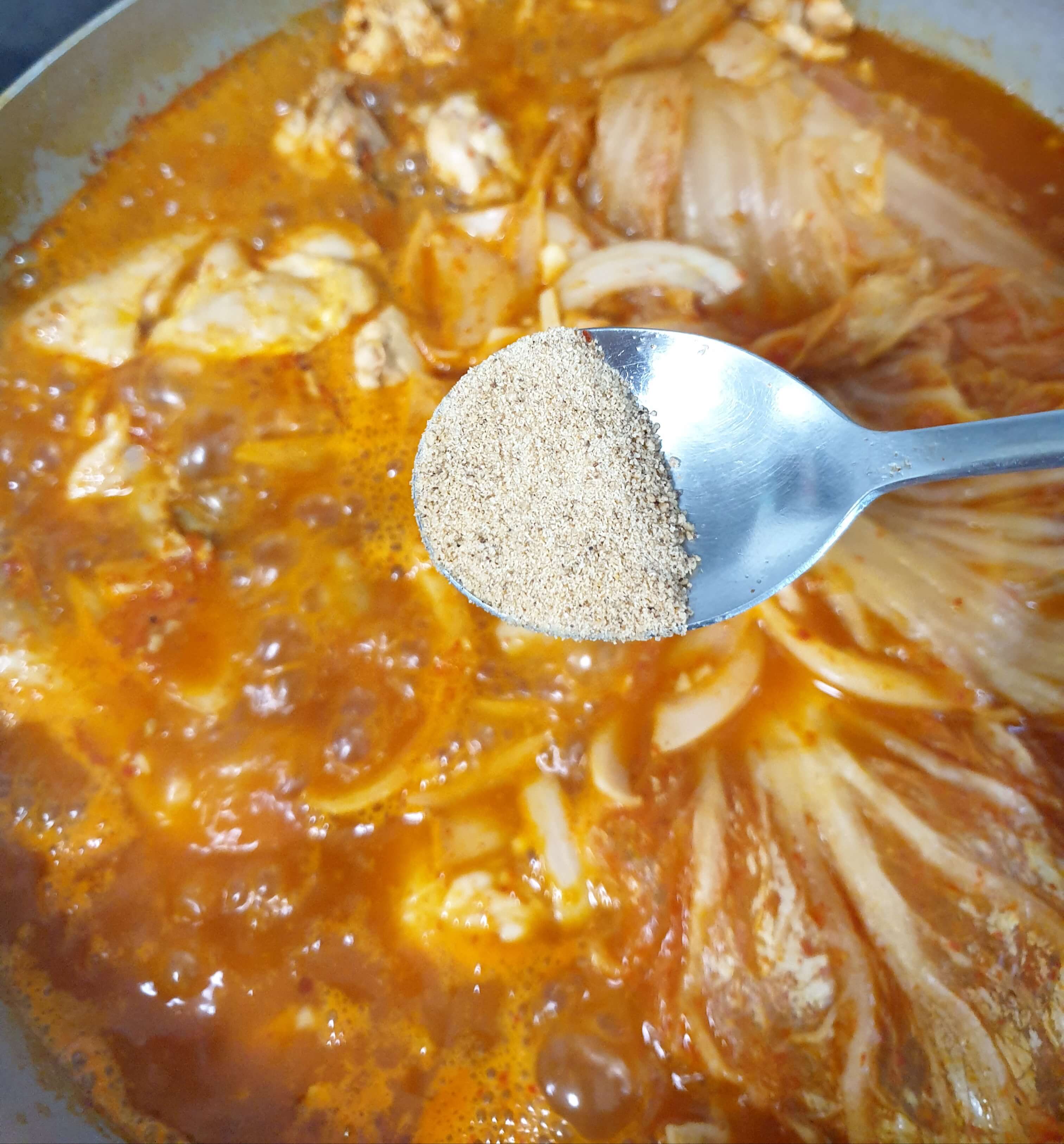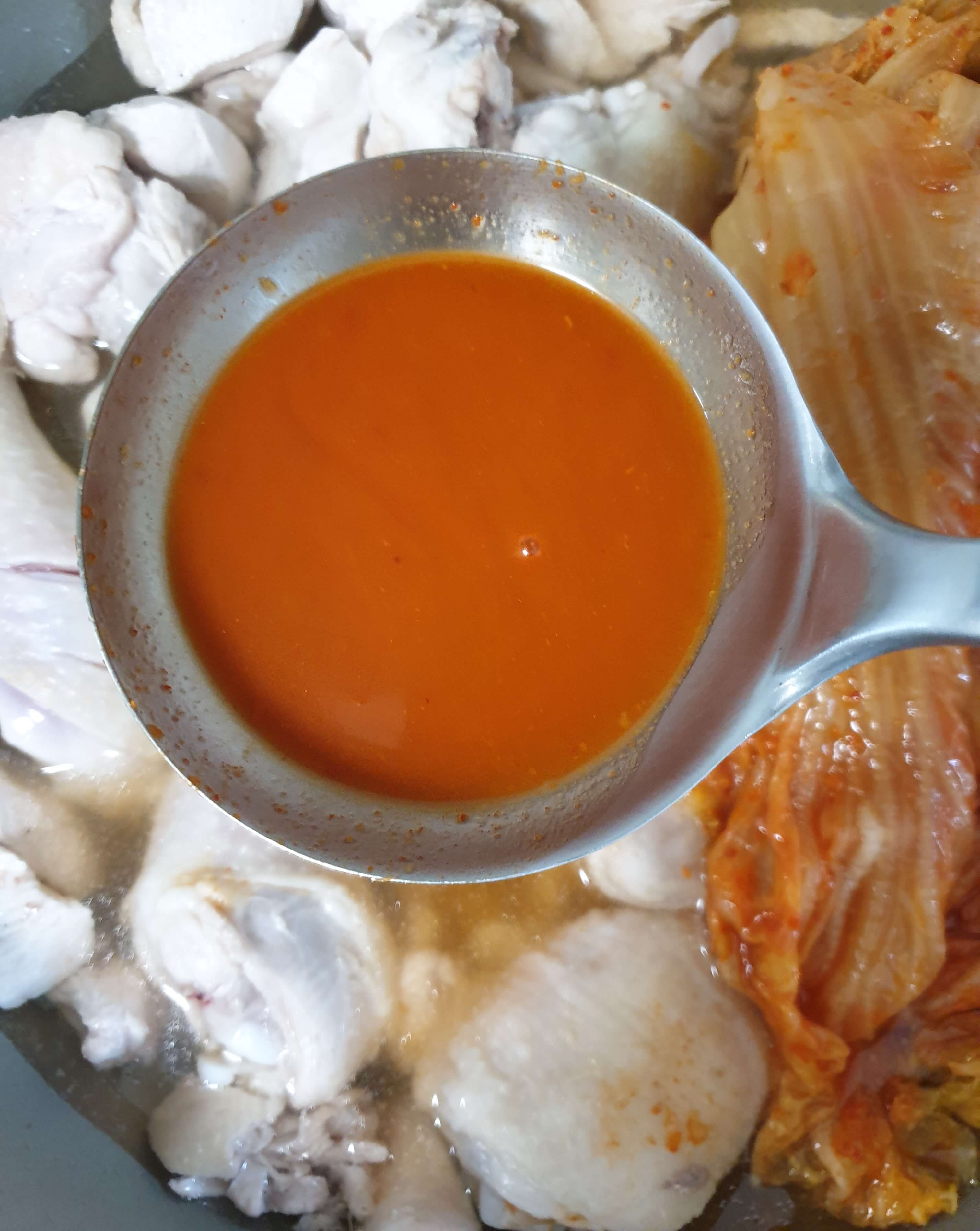 김치 국물 1 국자(50ml)를 넣어 주세요.