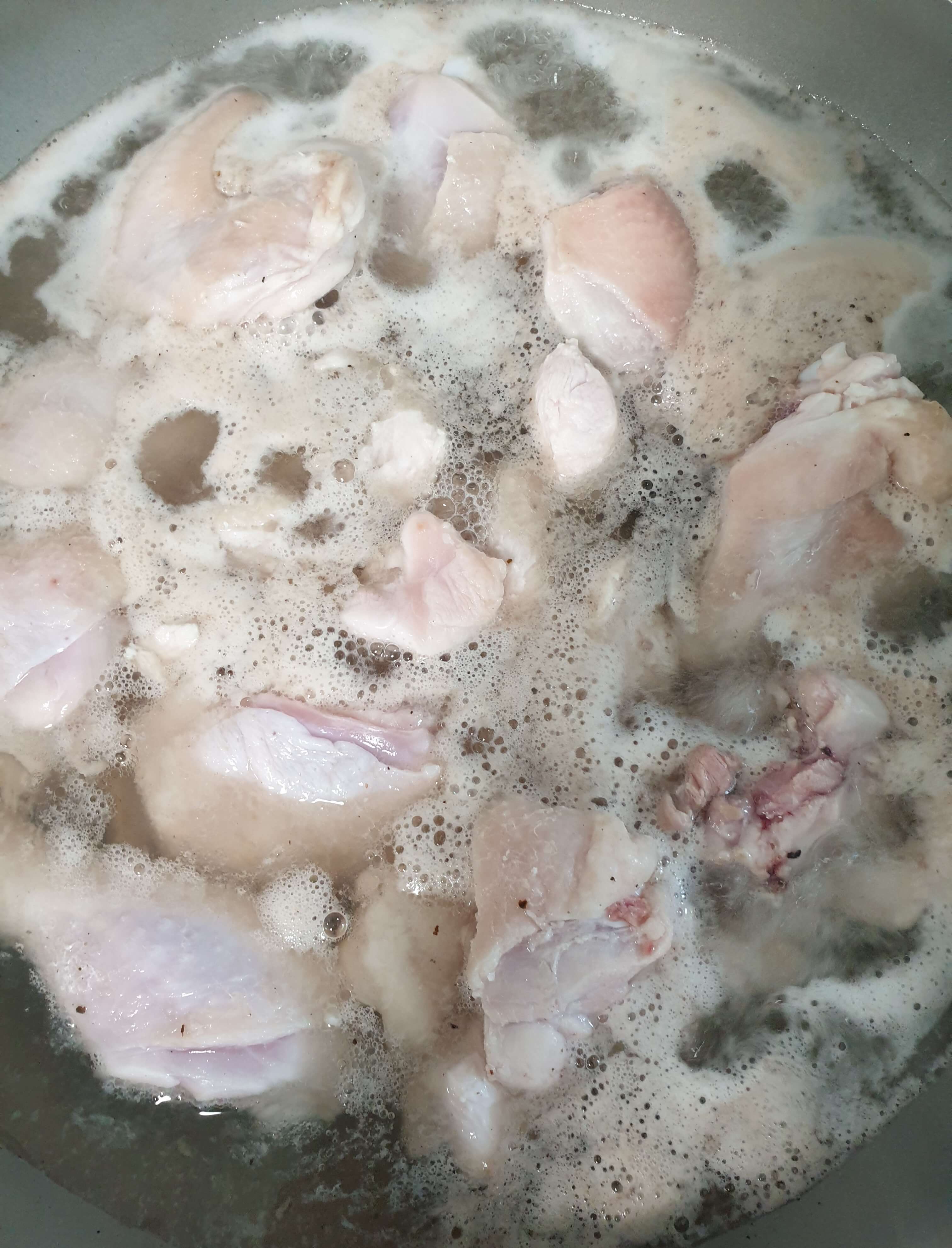 닭이 잠길 정도로 물을 넣어 준 후