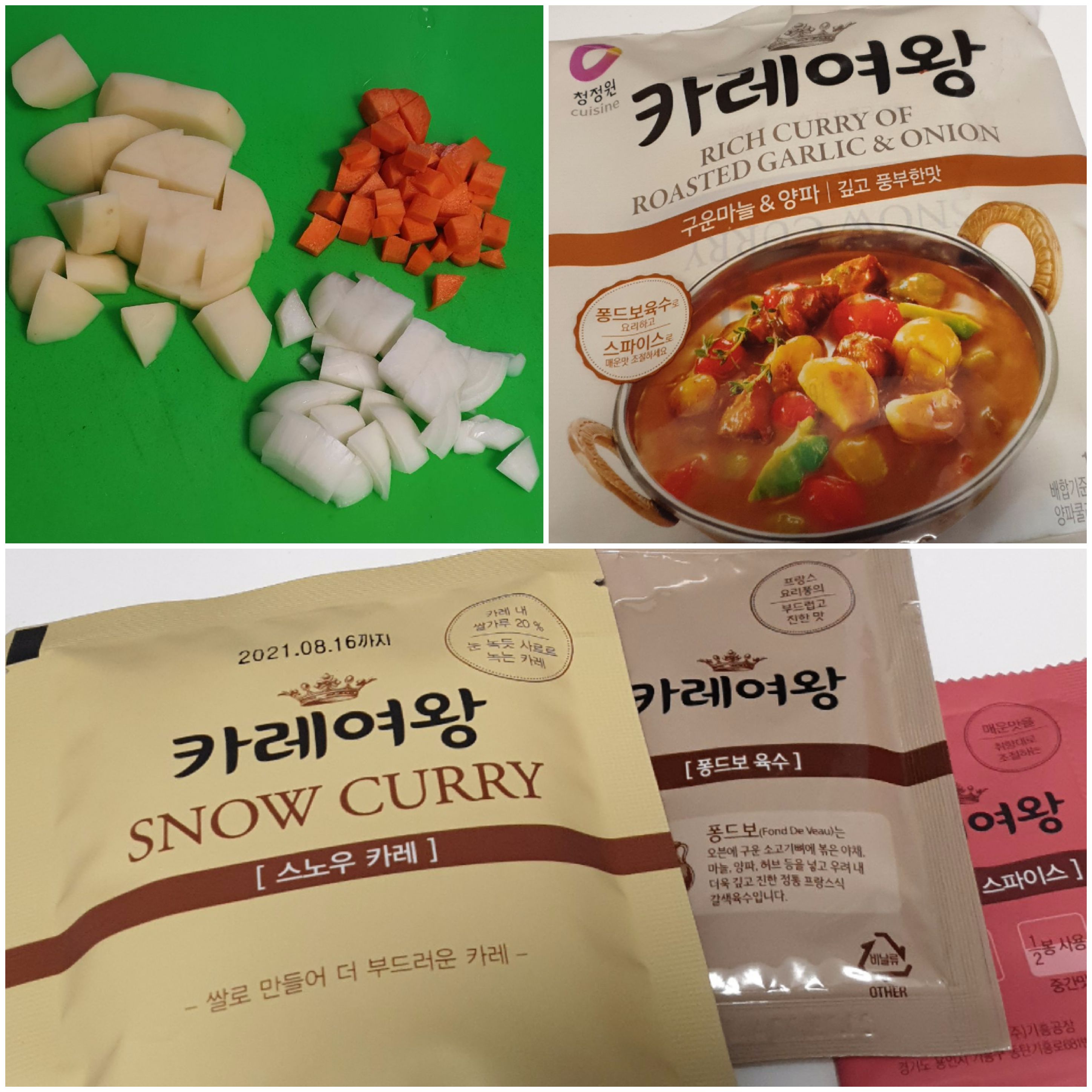 카레는 카레여왕 구운 마늘&양파 맛을 사용했는데