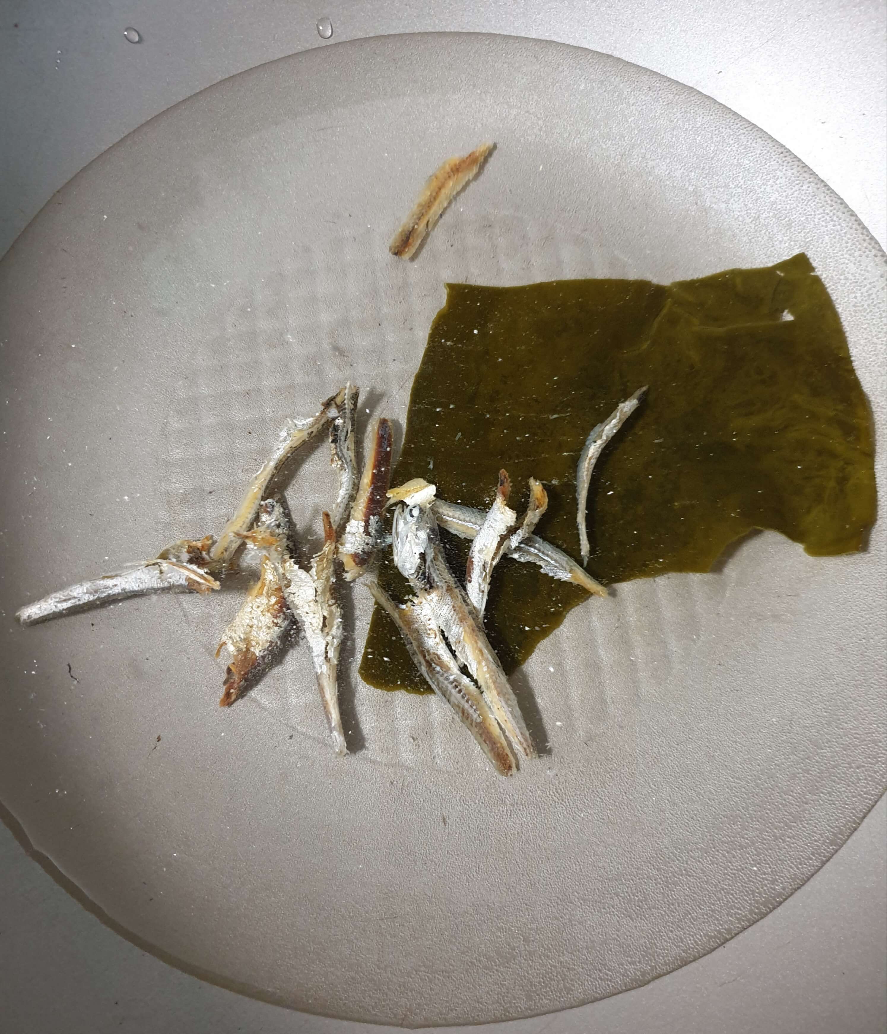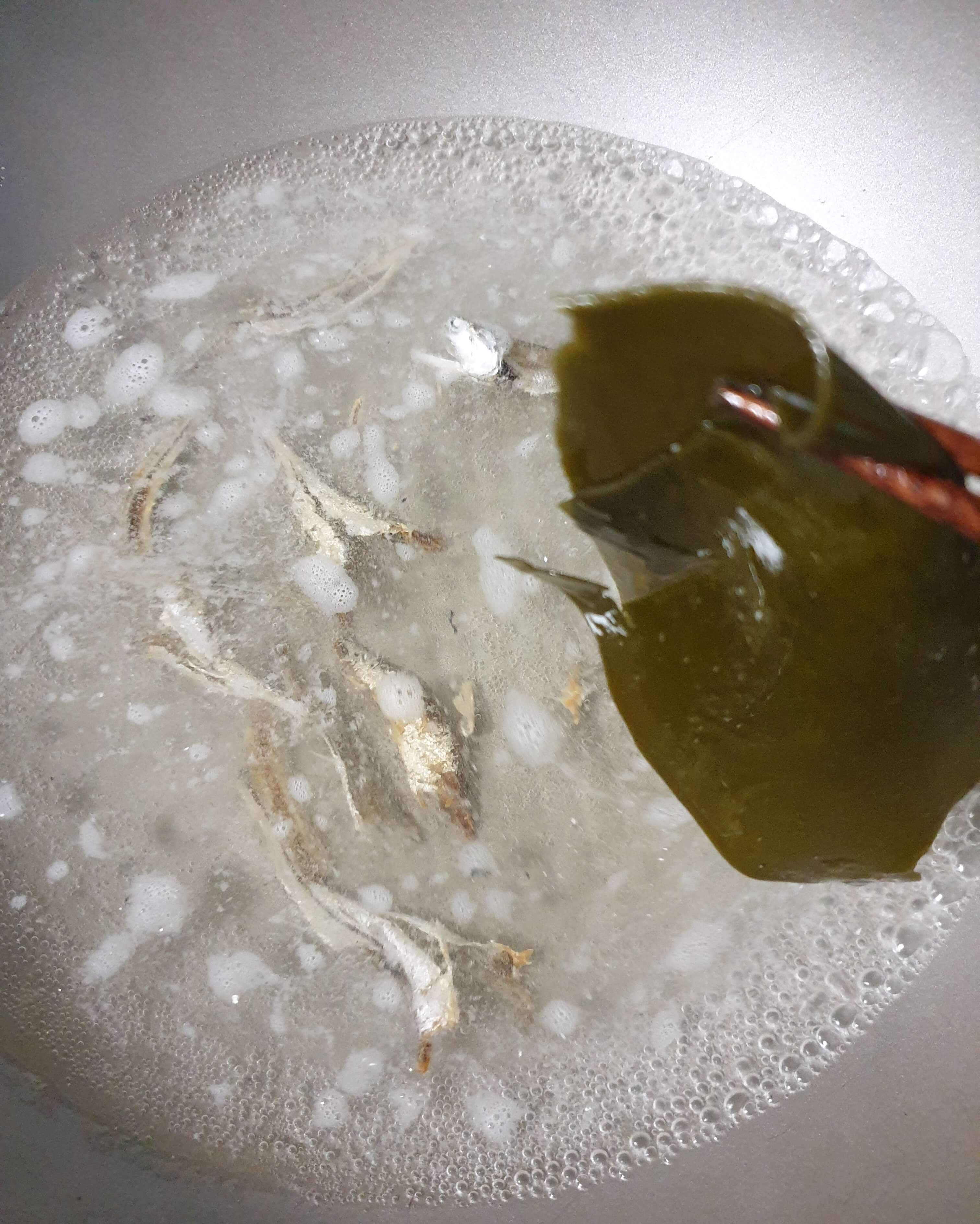 멸치 5~6 마리와 다시마 한 조각을 넣고