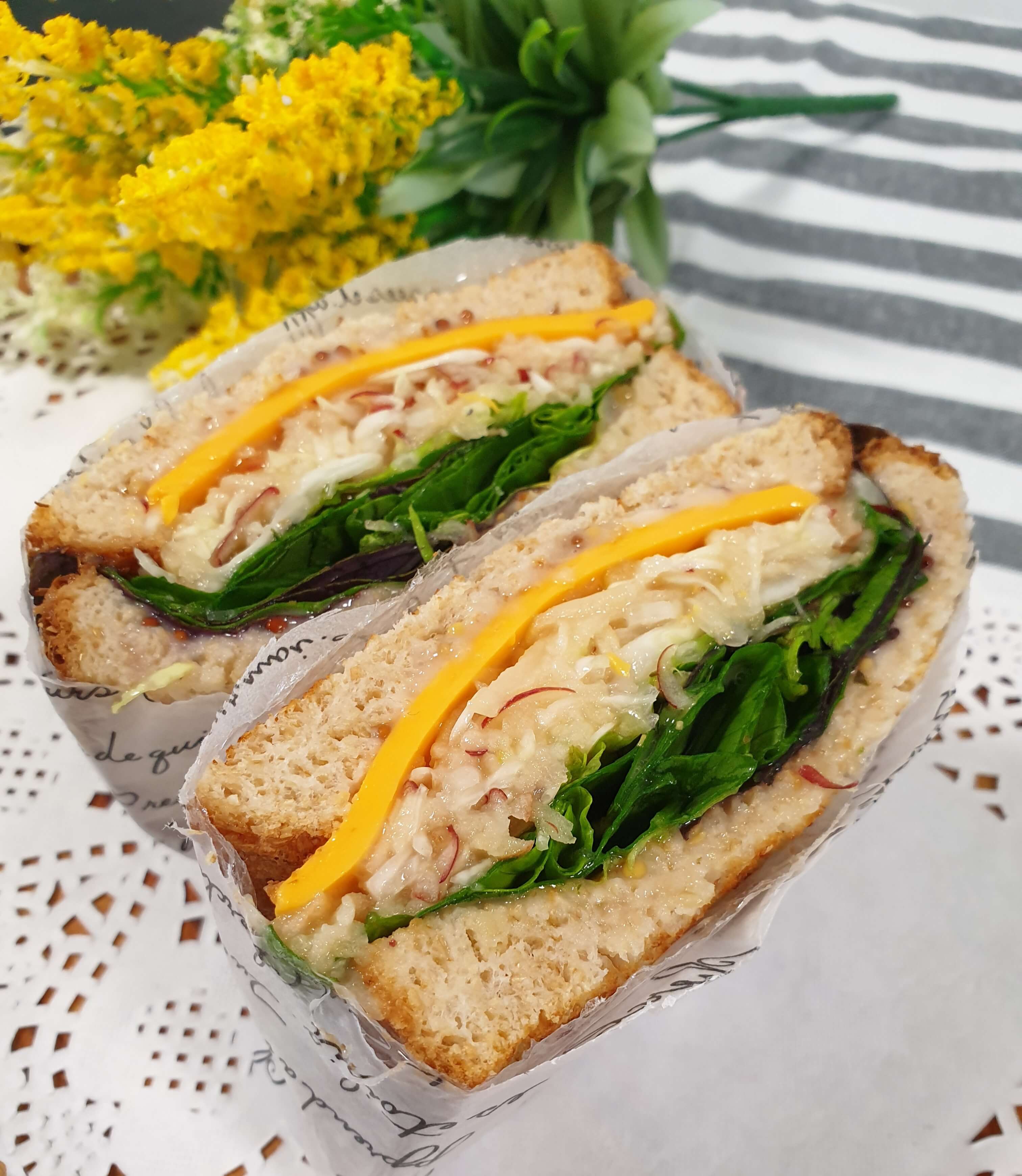 아삭한 식감이 좋은 사과 양배추 샌드위치 만들기