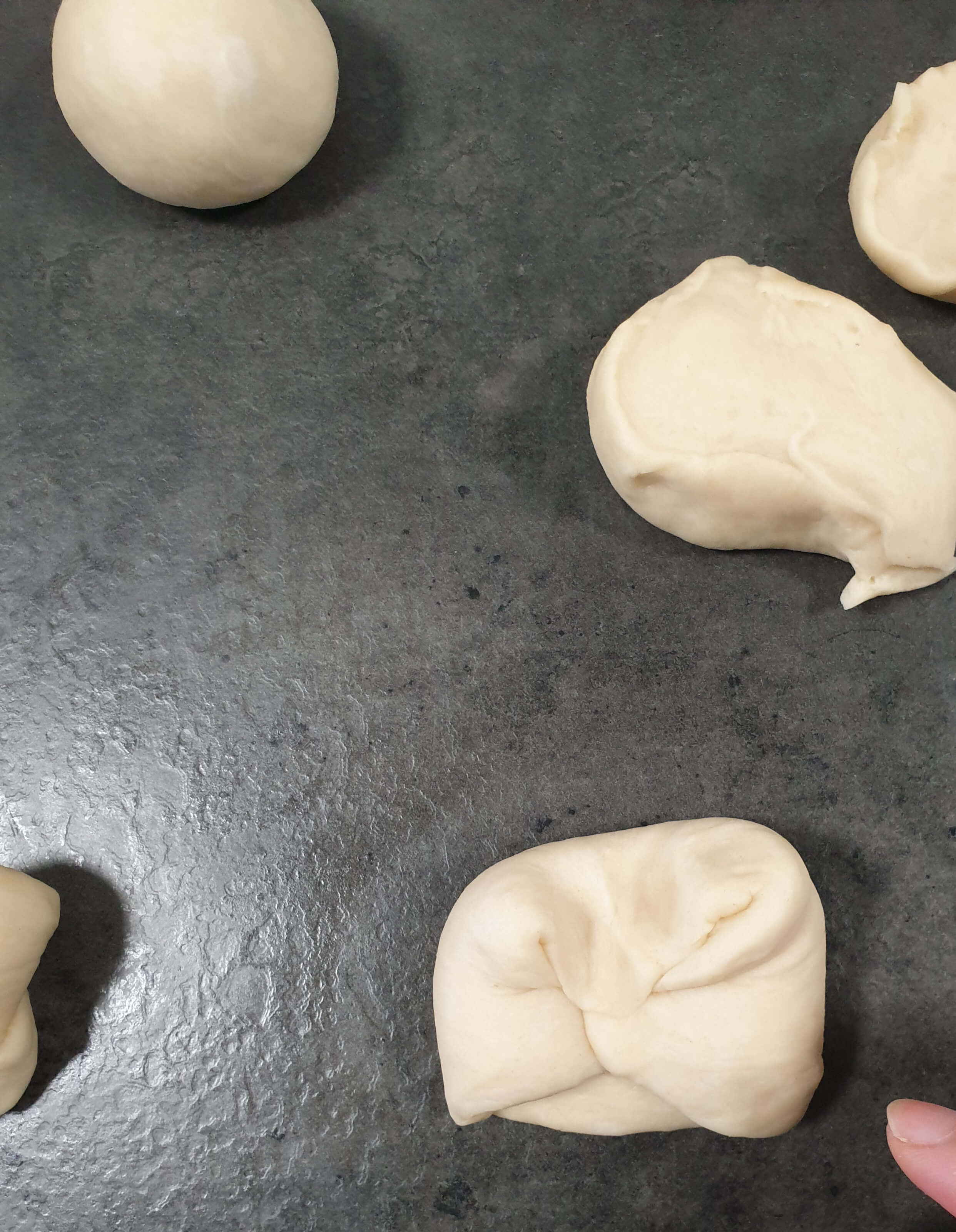 반죽을 뒤집어서 쭉쭉 늘려 주세요.