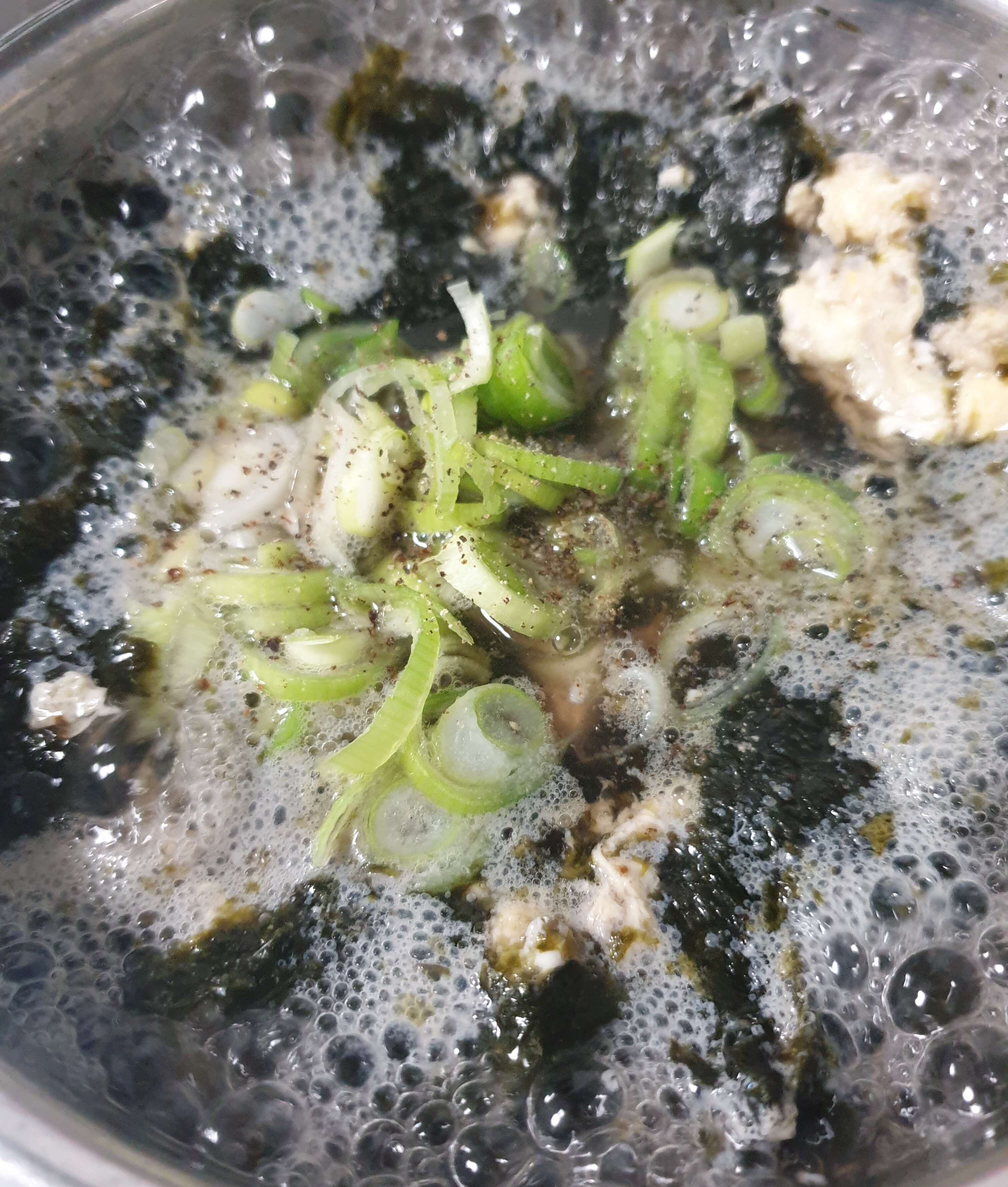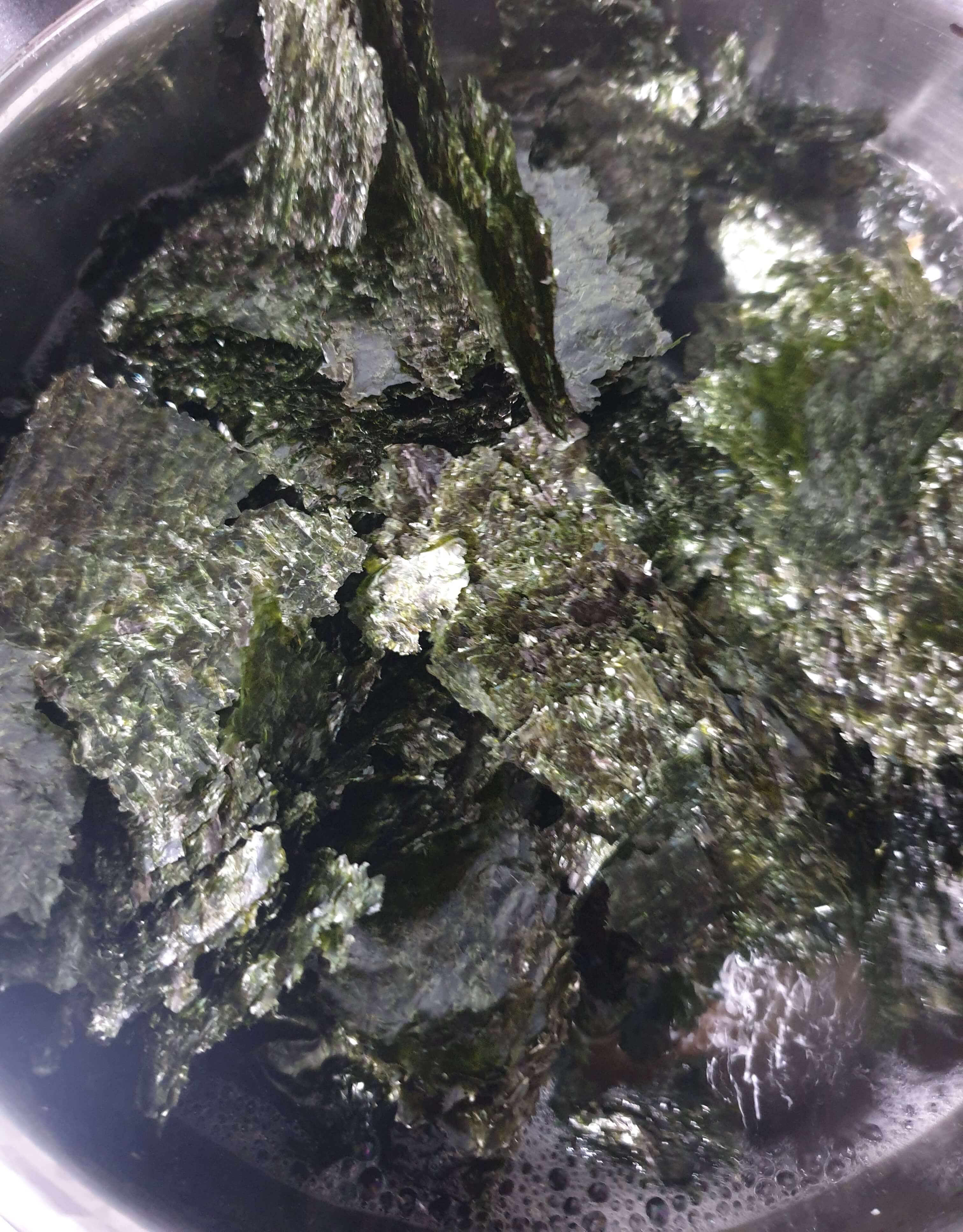마른 김 8~10장 정도를 찢어서 넣어 주세요.