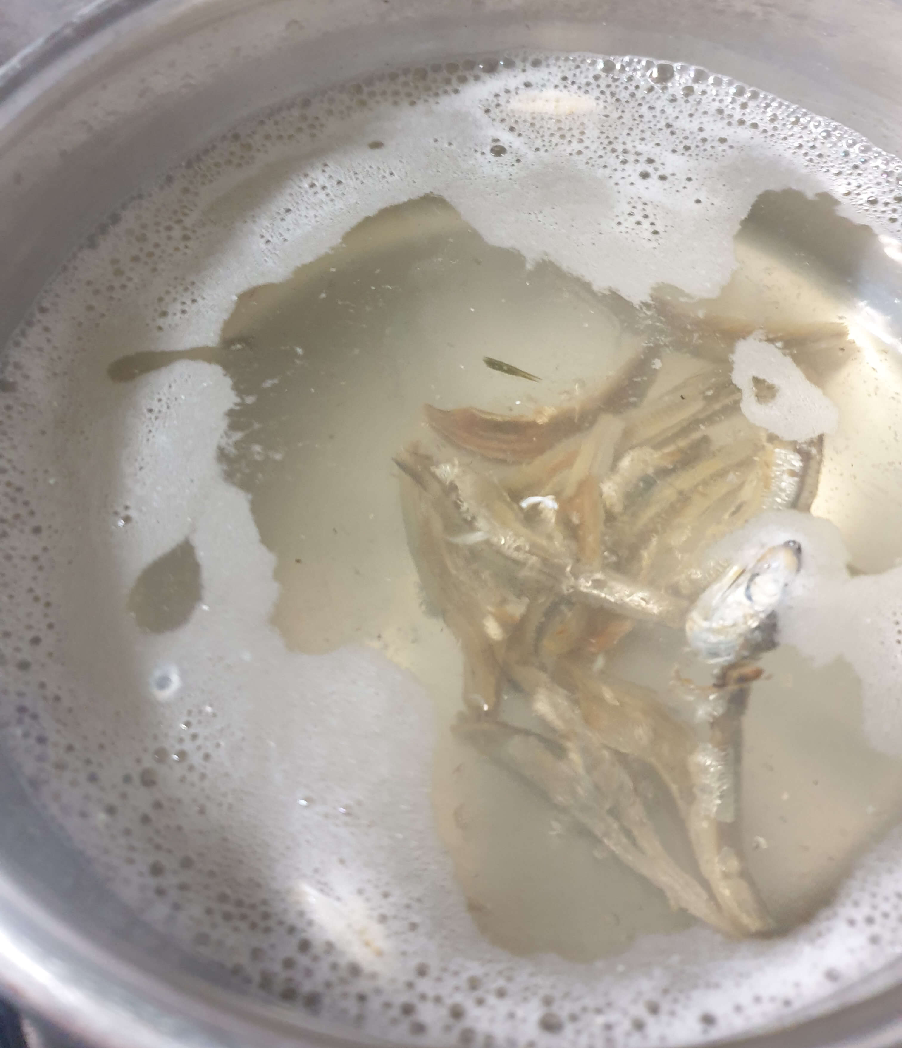 다시마 한 조각, 멸치 6~8마리 정도를 넣고