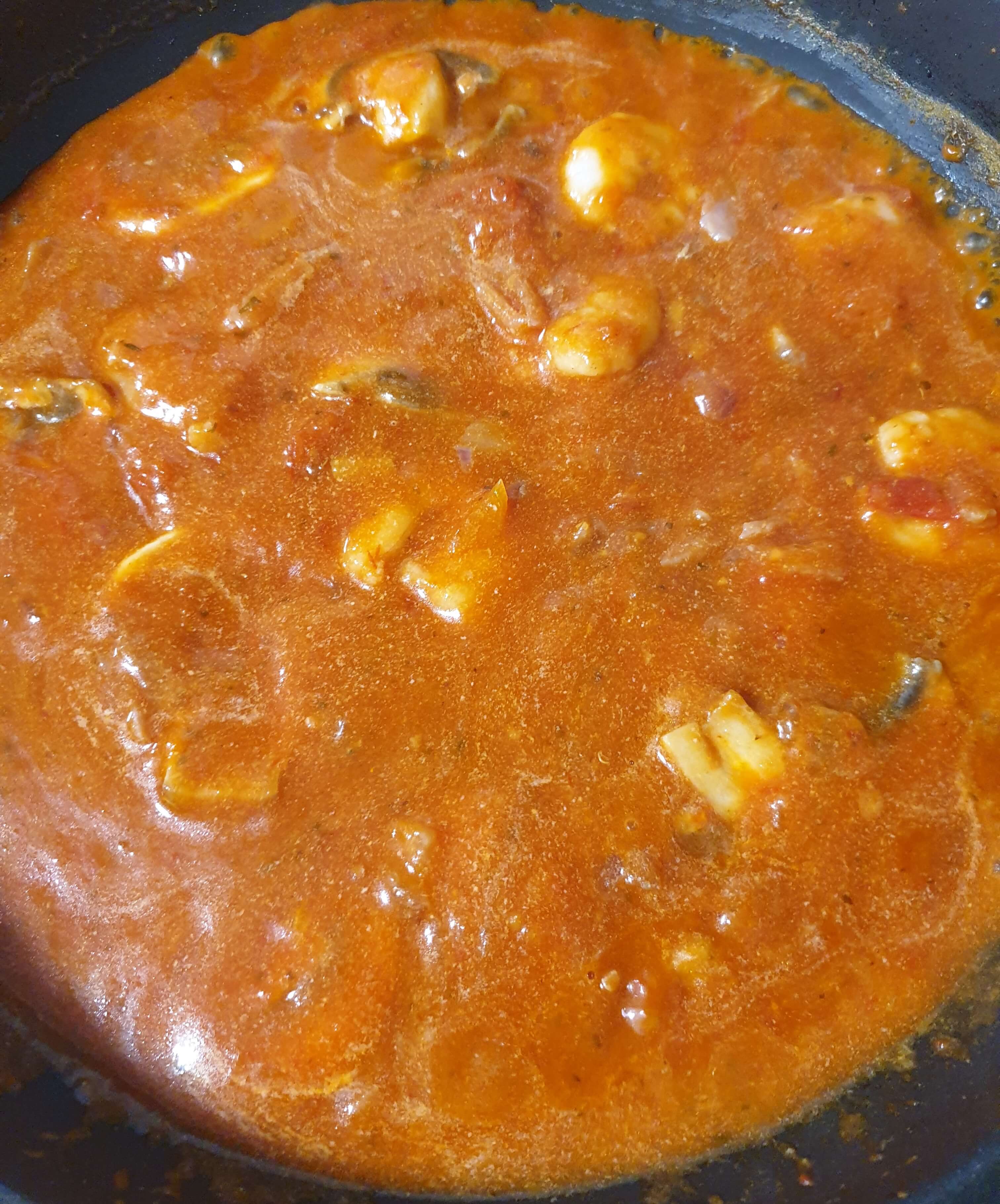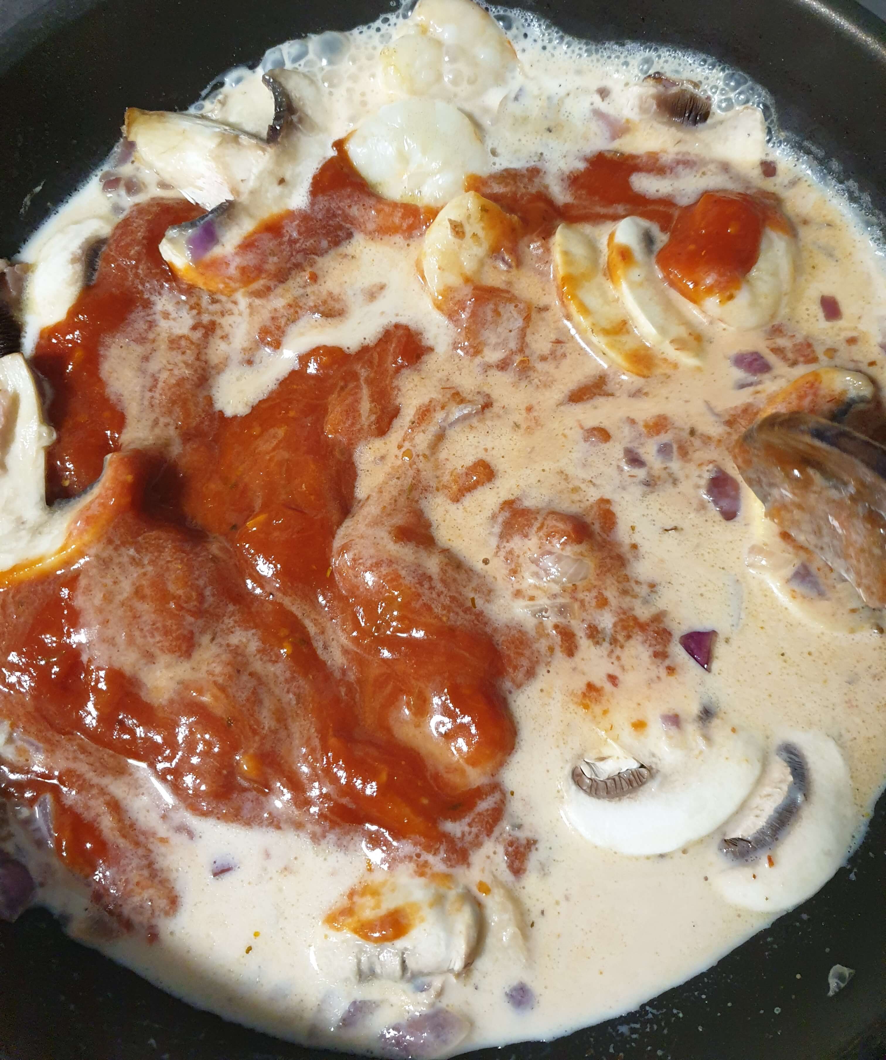 우유 100ml와 토마토소스 300~350ml를 넣고