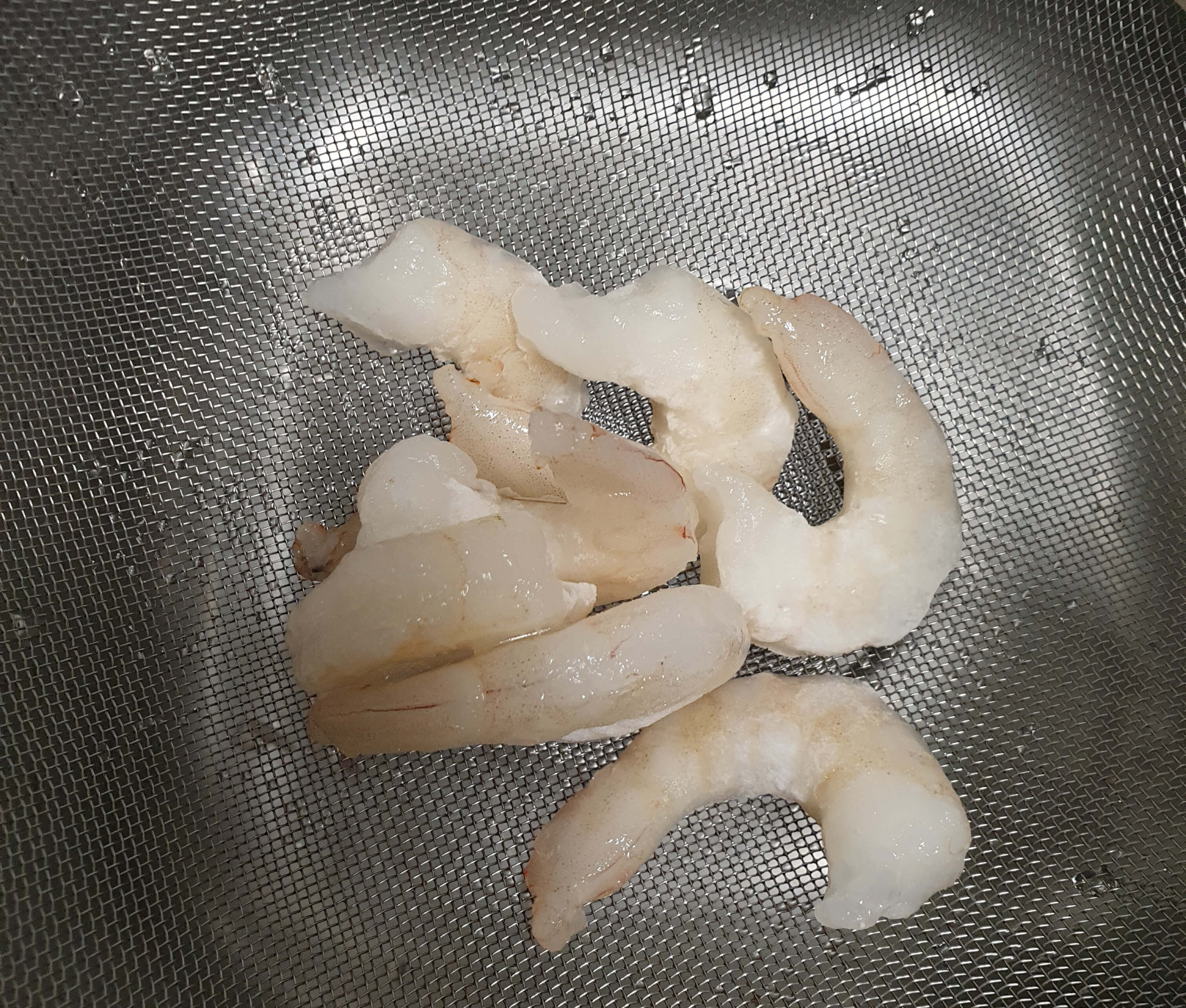 냉동 새우 7마리 정도 미리 해동해 줬어요.