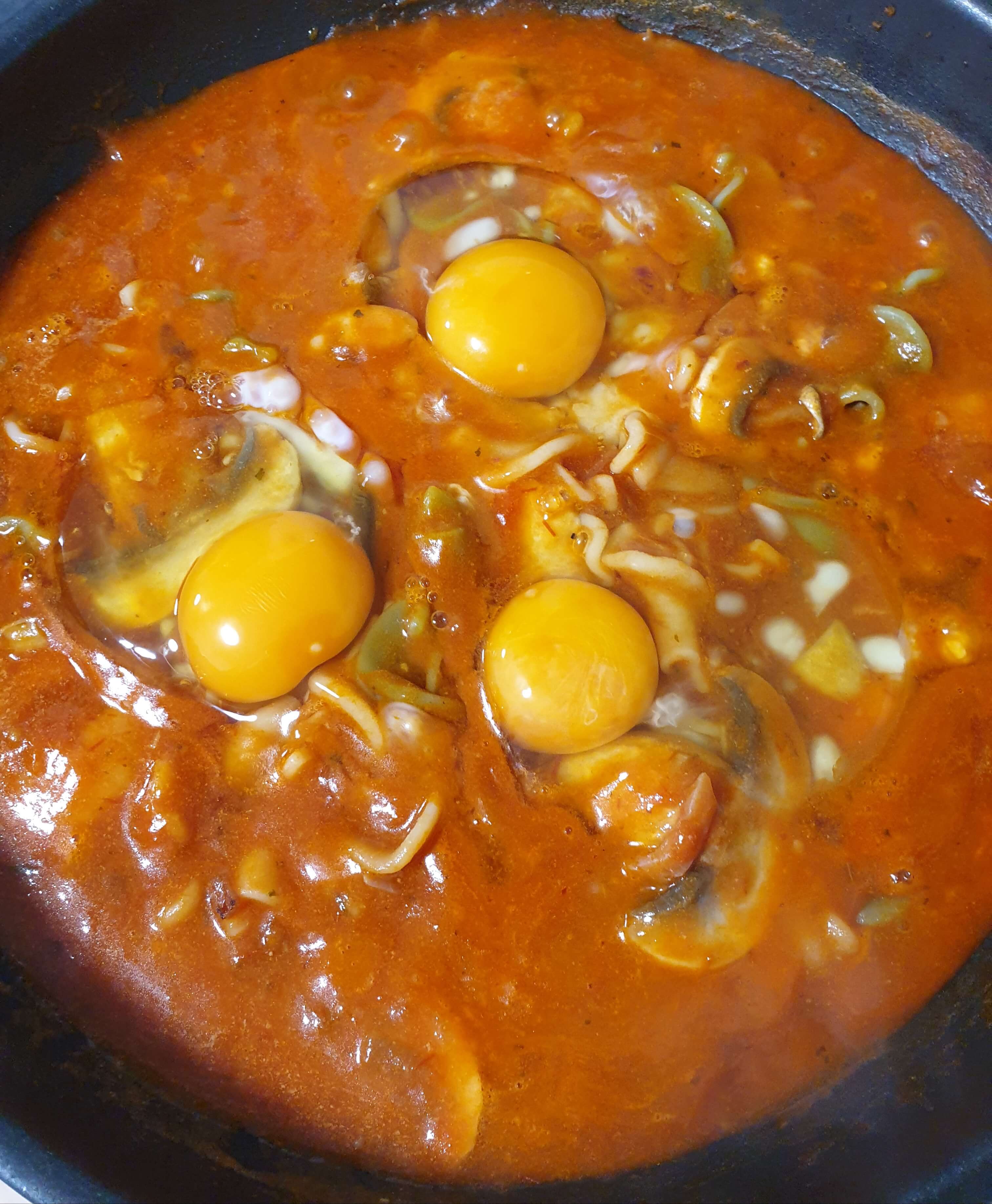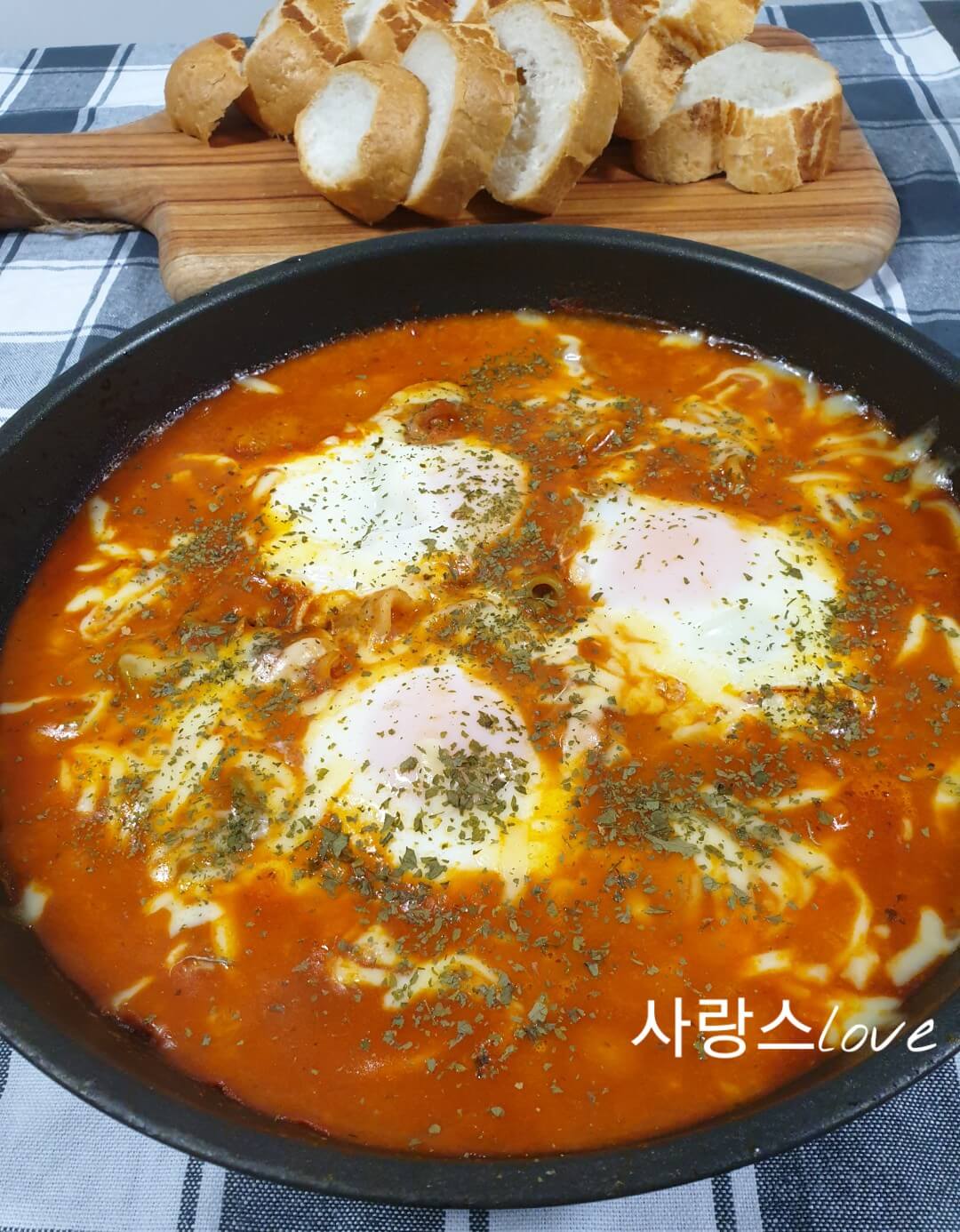 첨가하여 만든 스튜에 데친 달걀을 첨가한 음식으로