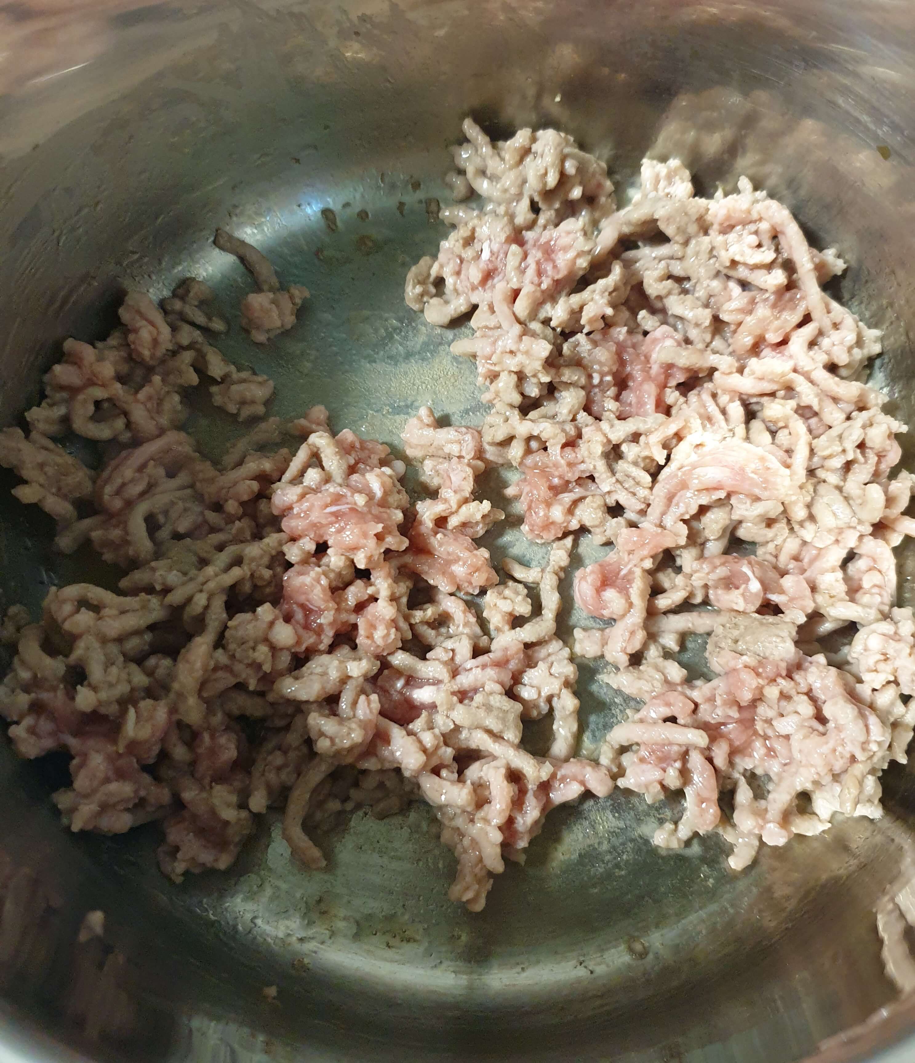 다짐육 약 100g을 넣고 볶아 주세요. (중불)