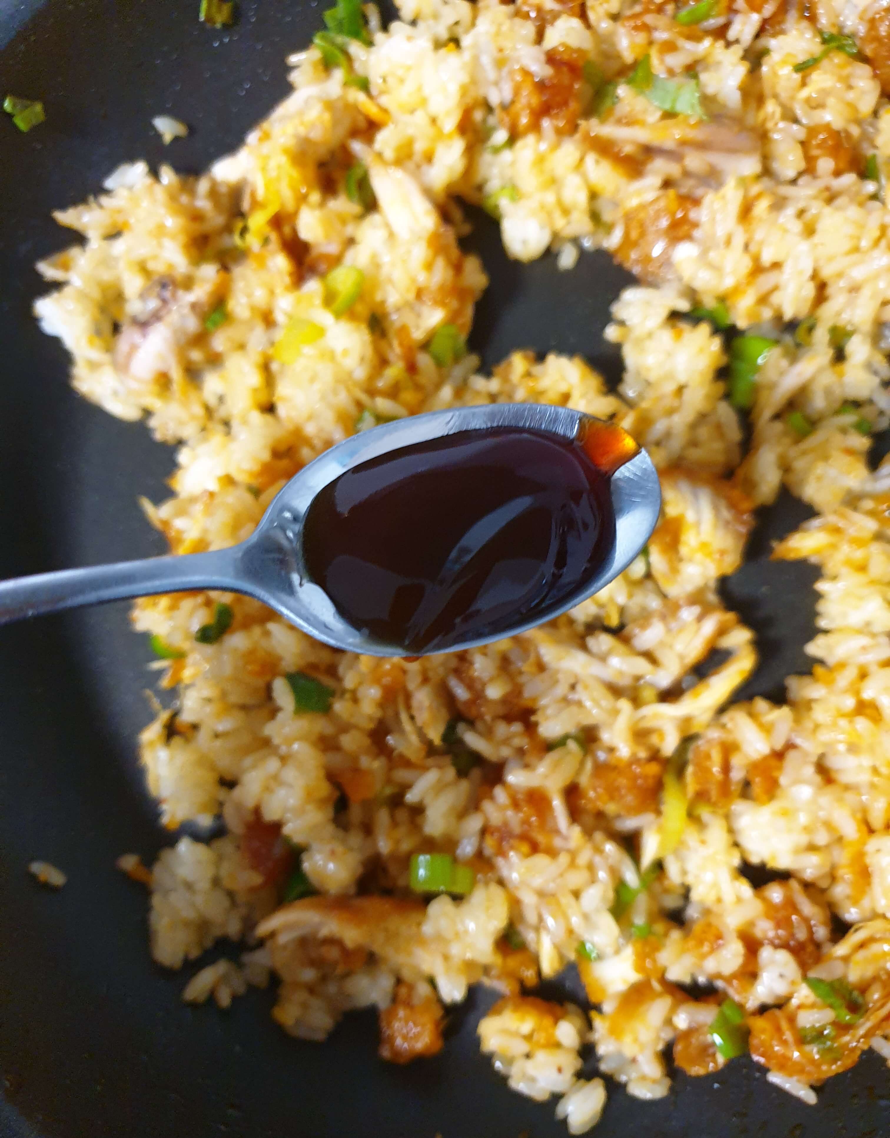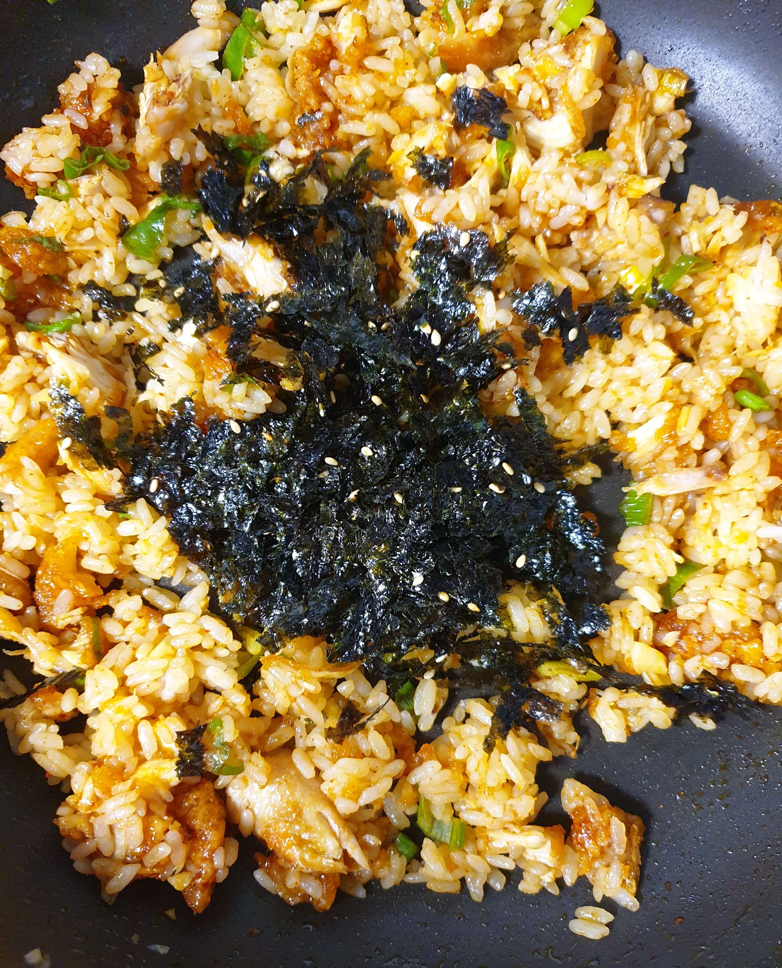 양념 치킨 볶음밥을 마무리해주세요.