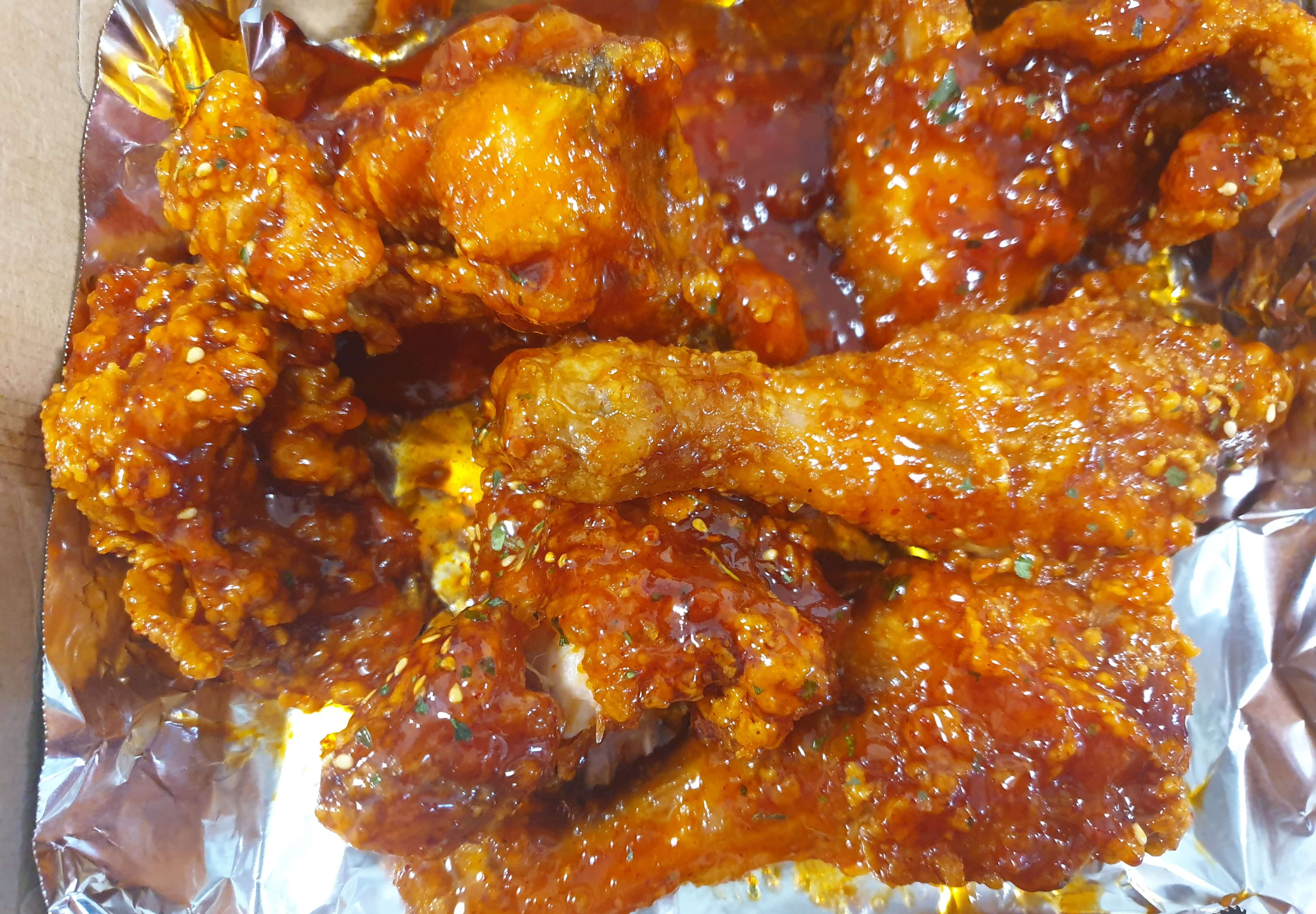 치킨 양념 반, 매운 양념 반을 사다 먹었는데