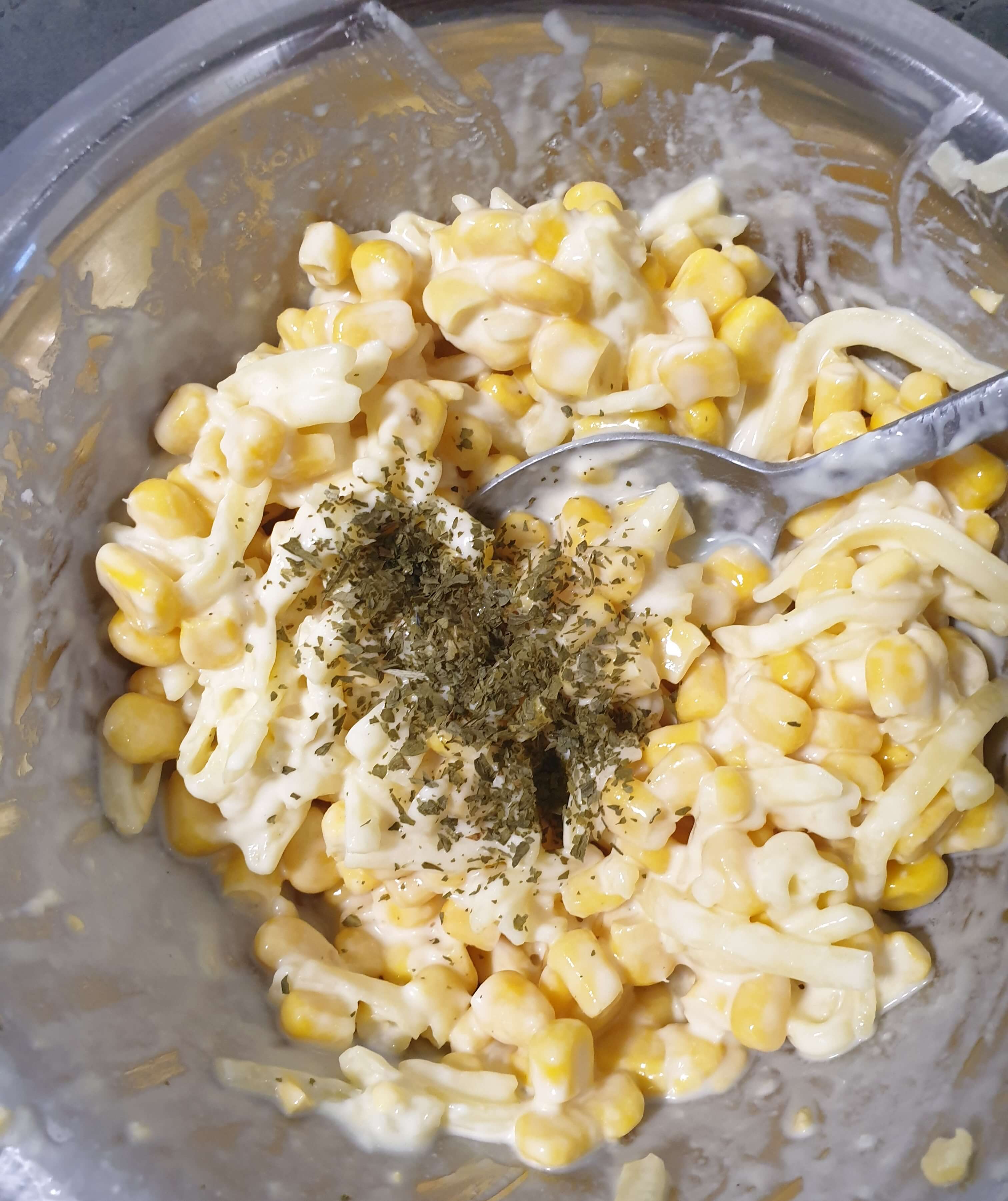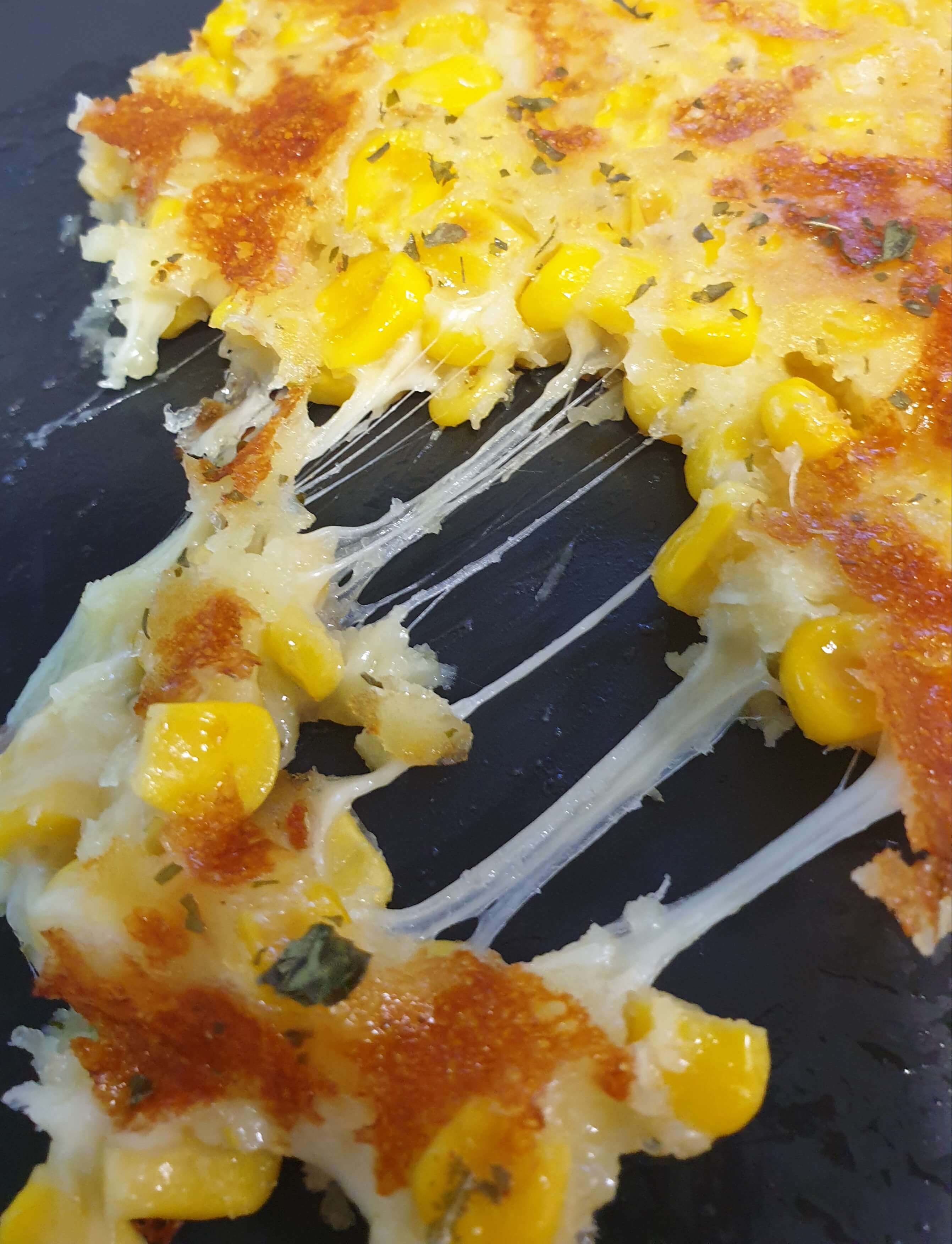 치즈와 옥수수가 노릇노릇 맛있게 구워졌어요.