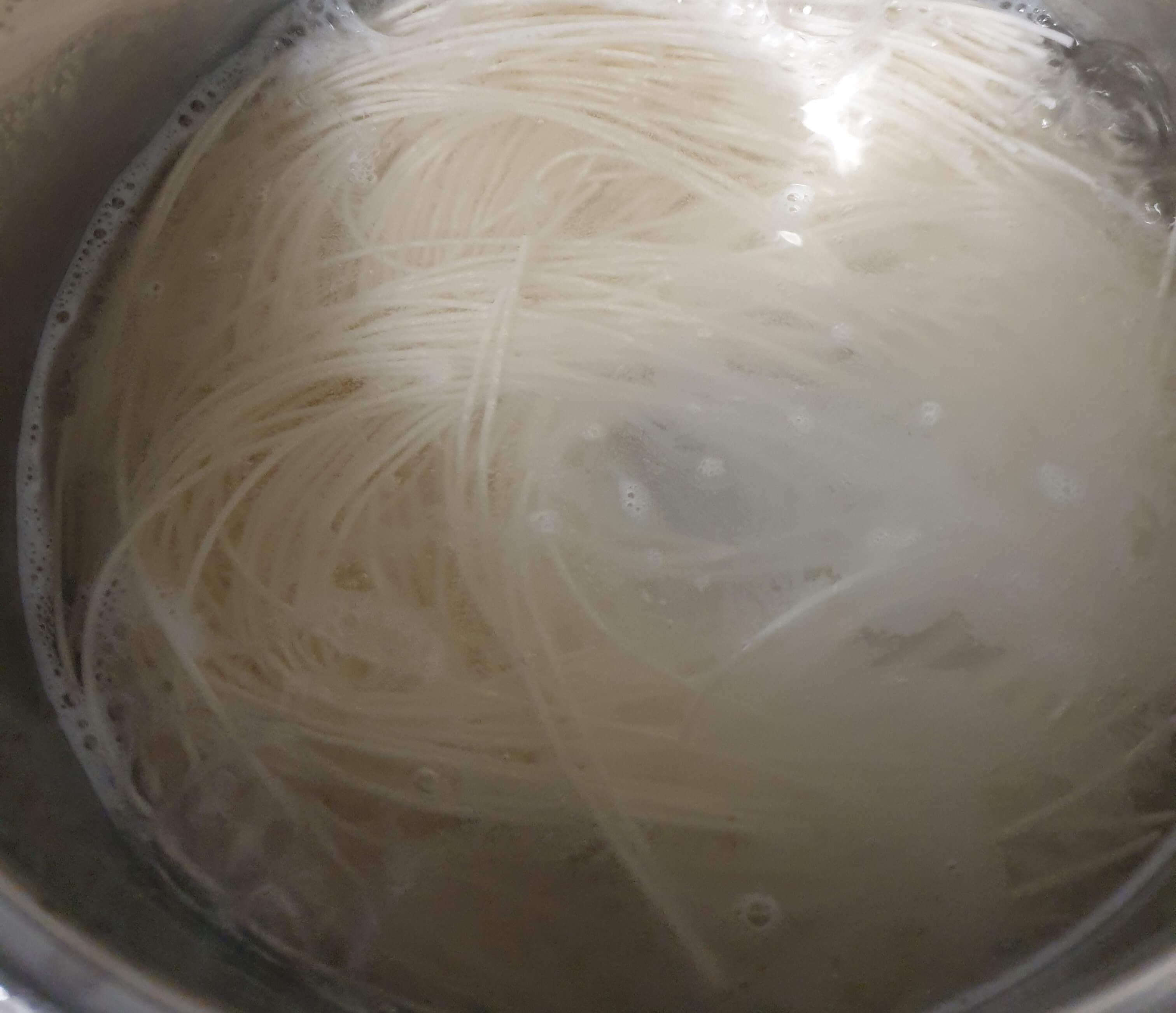 재료 준비가 끝나면 한쪽에서 소면도 먹을 만큼 삶기 시작해주세요.