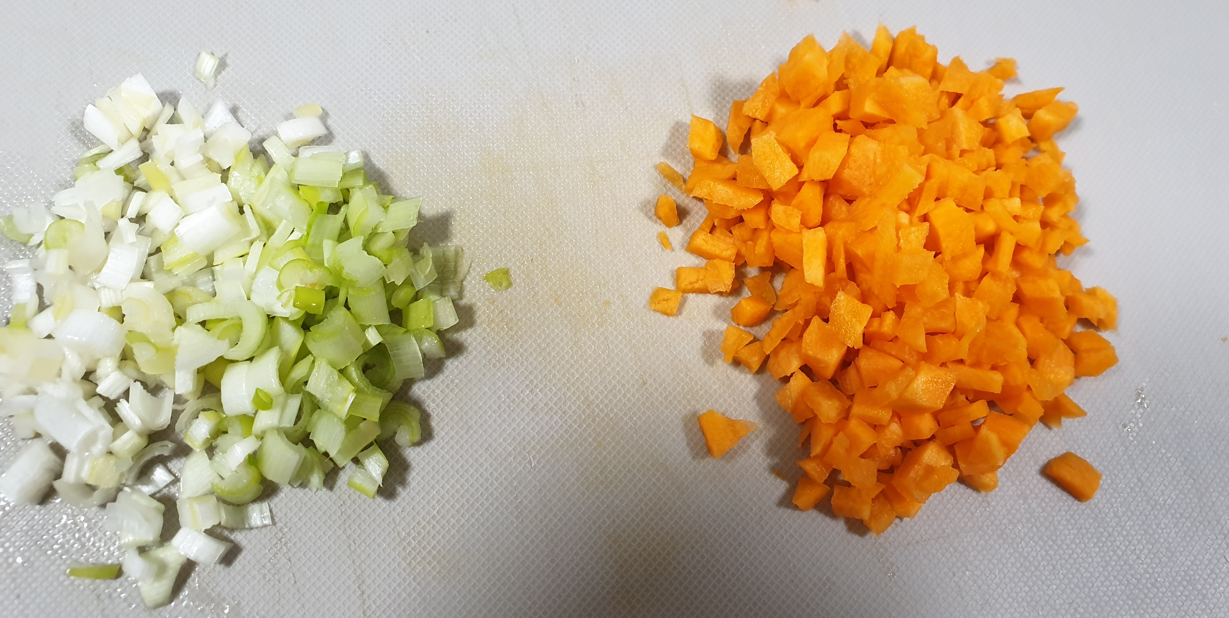 당근과 파를 잘게 썰어 주세요.