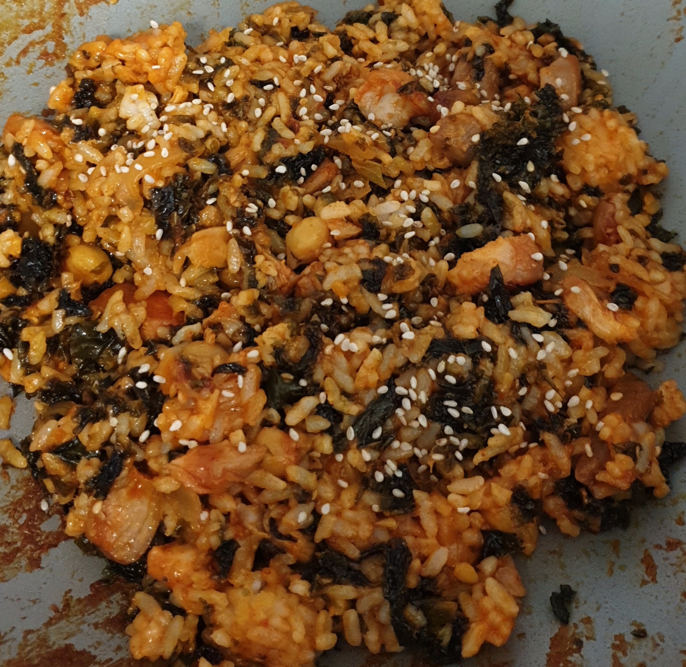 양념 좀 덜어내고 김가루, 참기름만 넣고