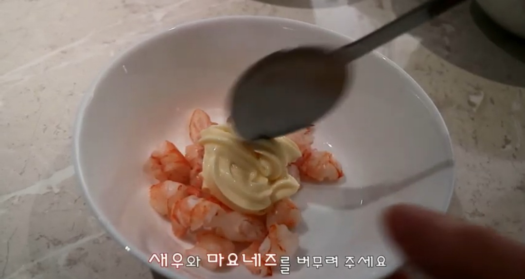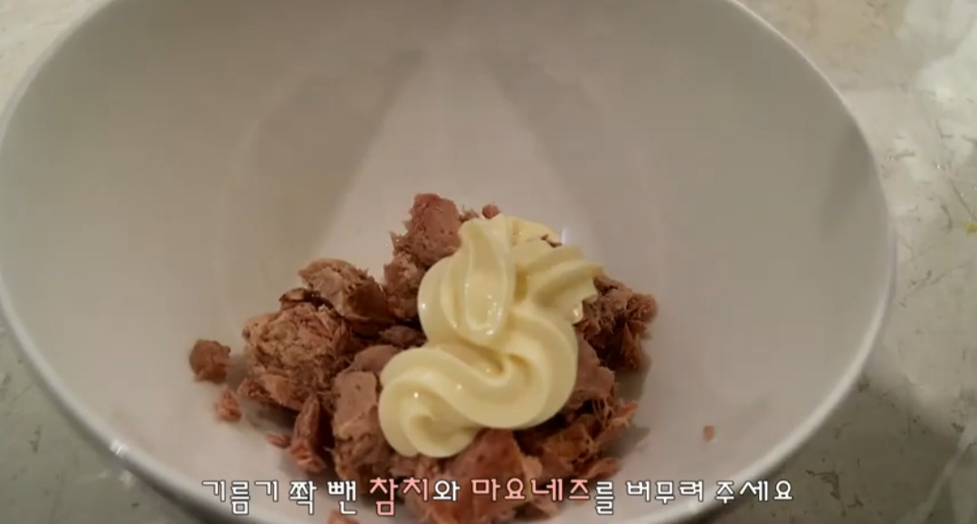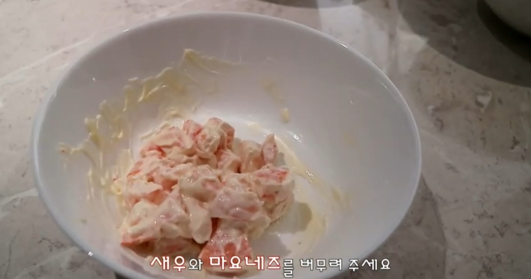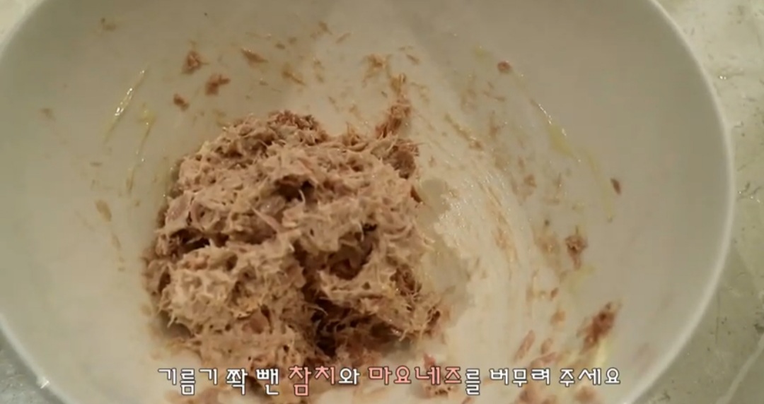 한 김 식혀서 마요네즈와 버무려 줍니다.
