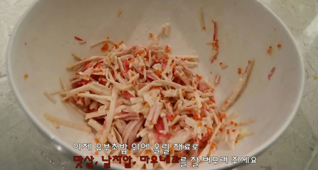 날치알과 마요네즈를 넣어 버무려 주세요.
