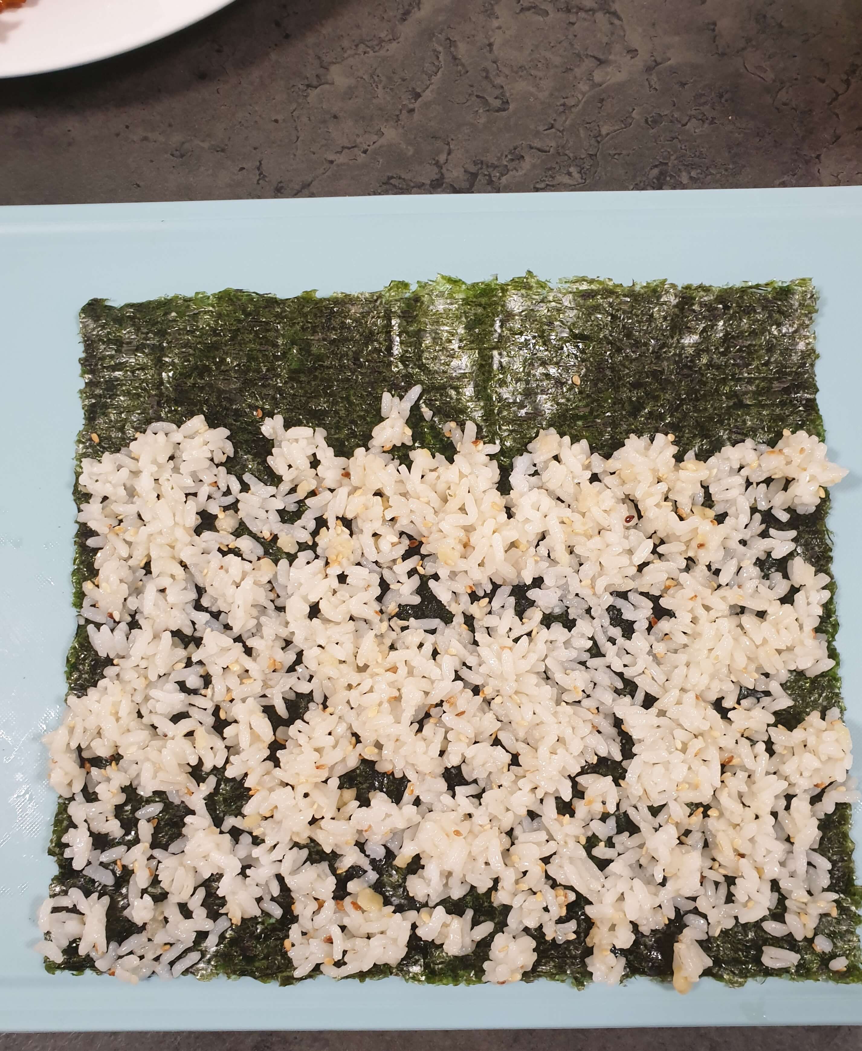 밥을 조금 더 위쪽까지 까는 게