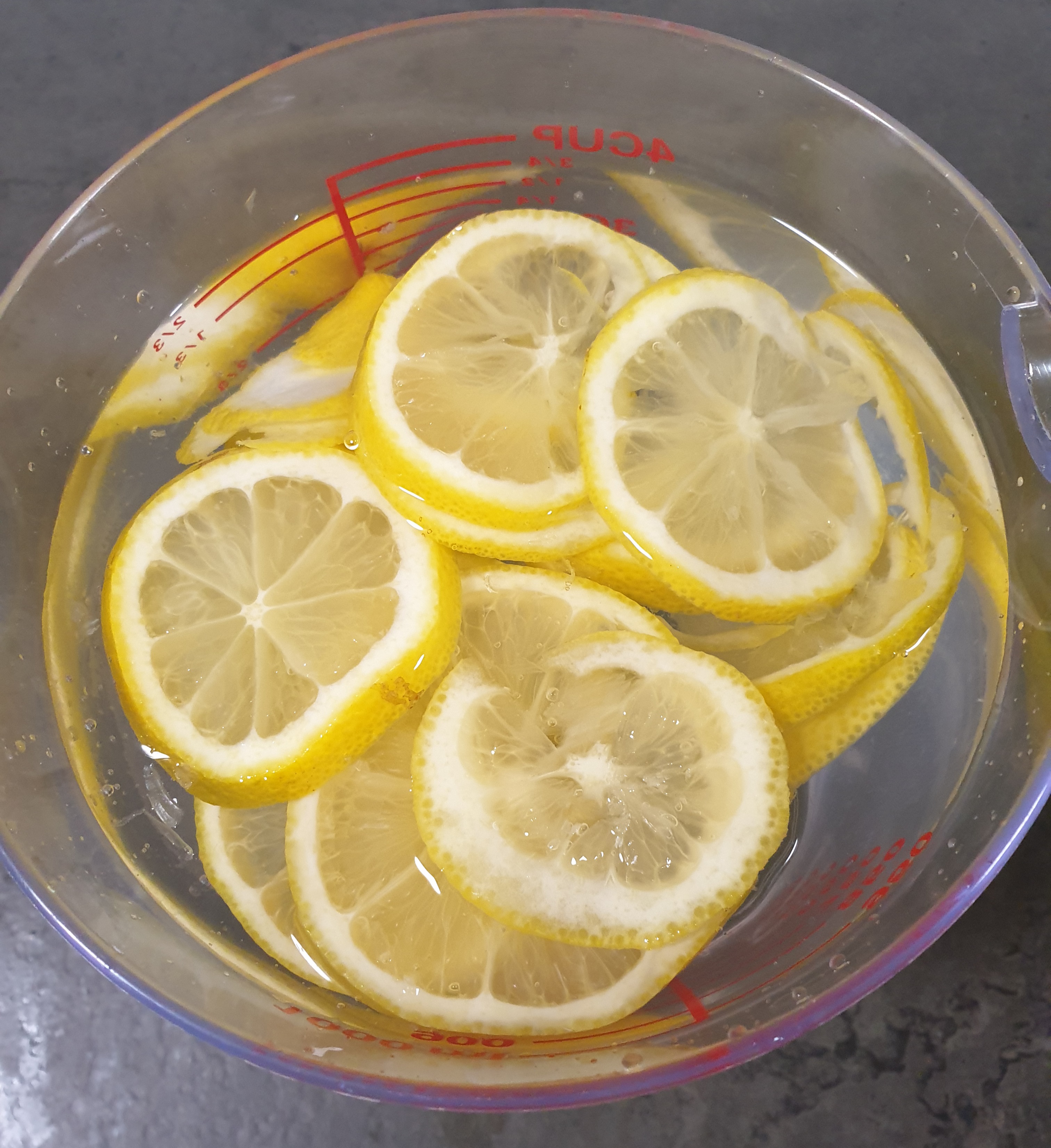 레몬을 5분 담가 놓는 동안
