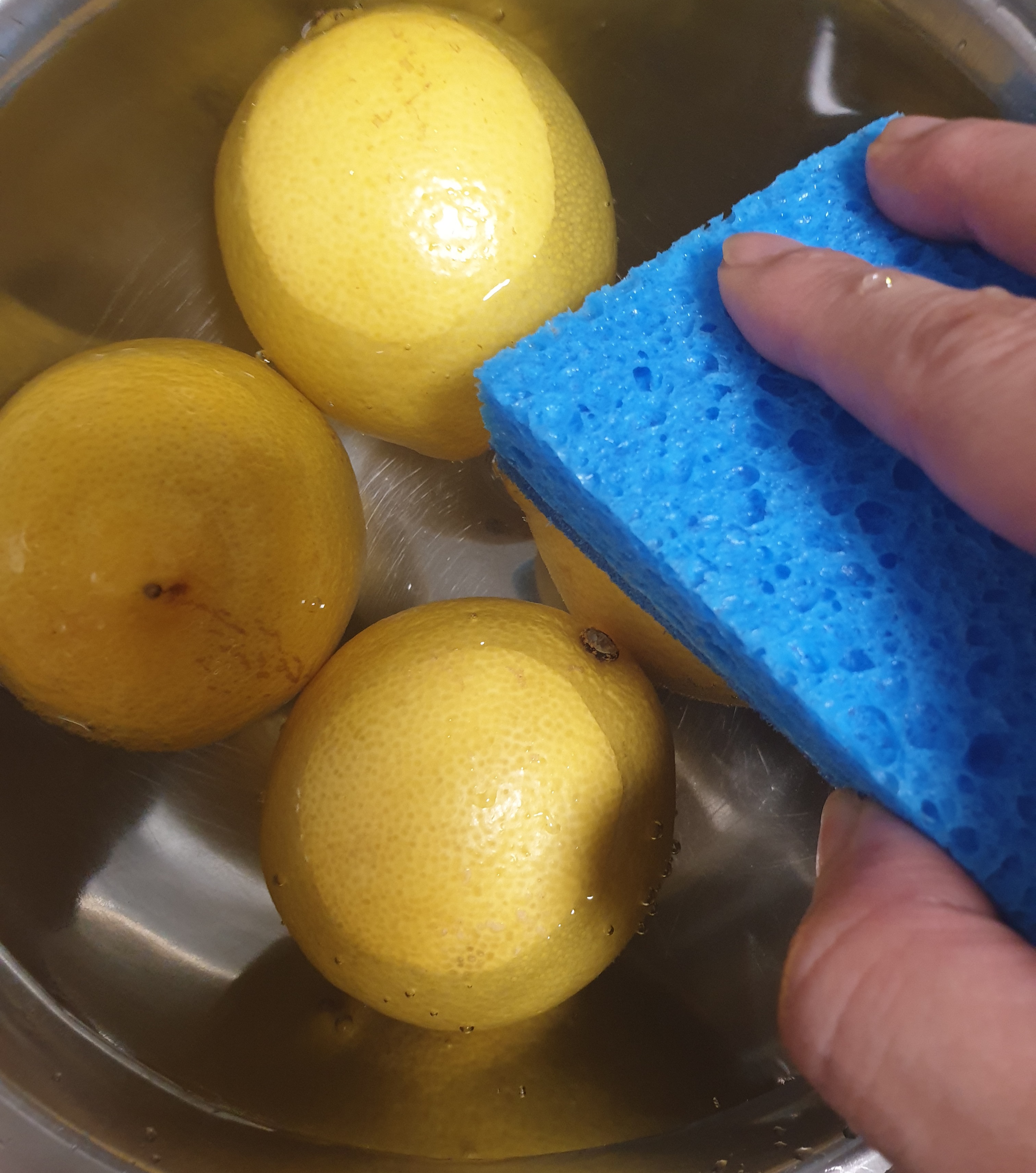 깨끗한 수세미로 빡빡 문질러 줬어요.