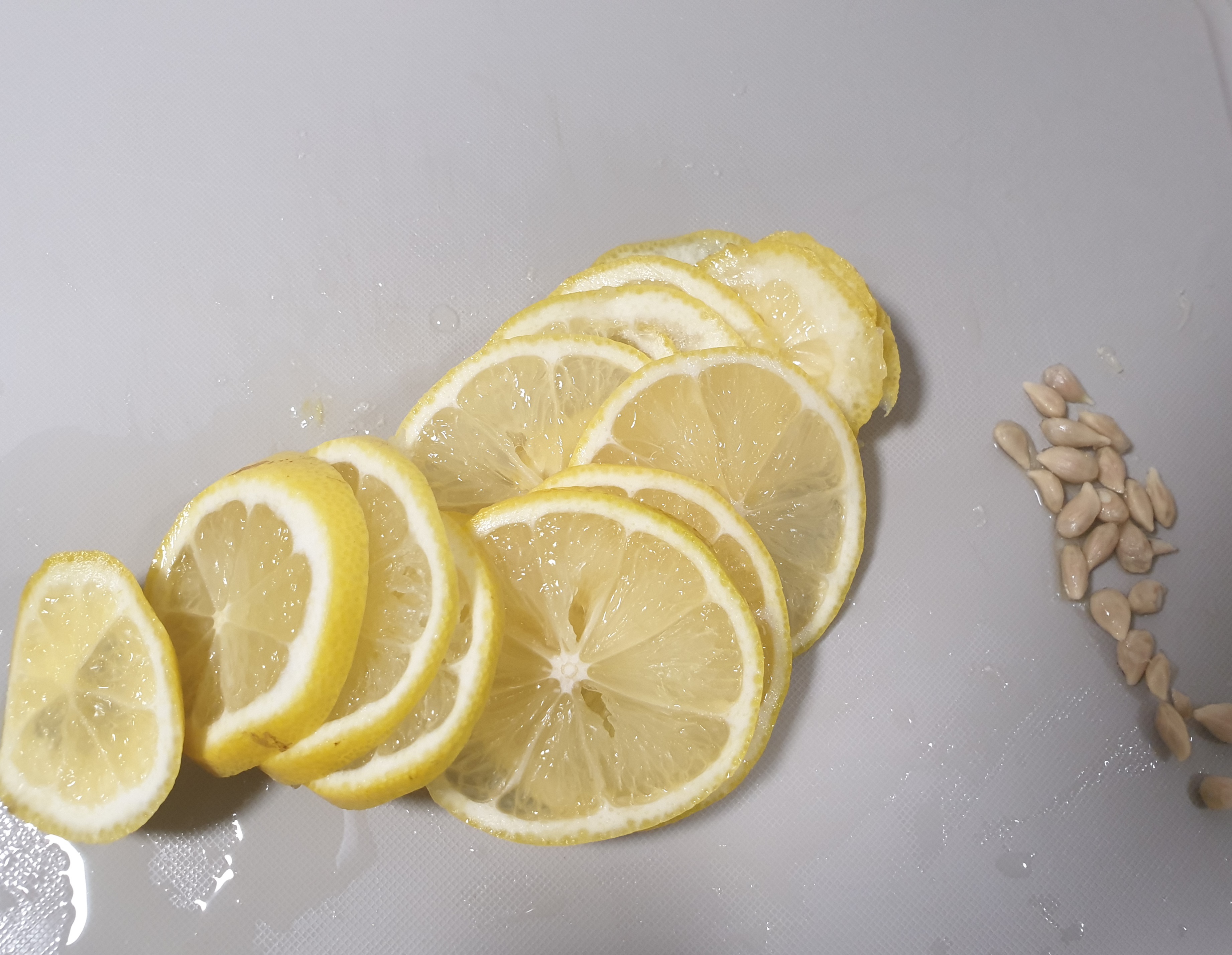 씨는 빼주고 레몬을 얇게 썰어 주세요.