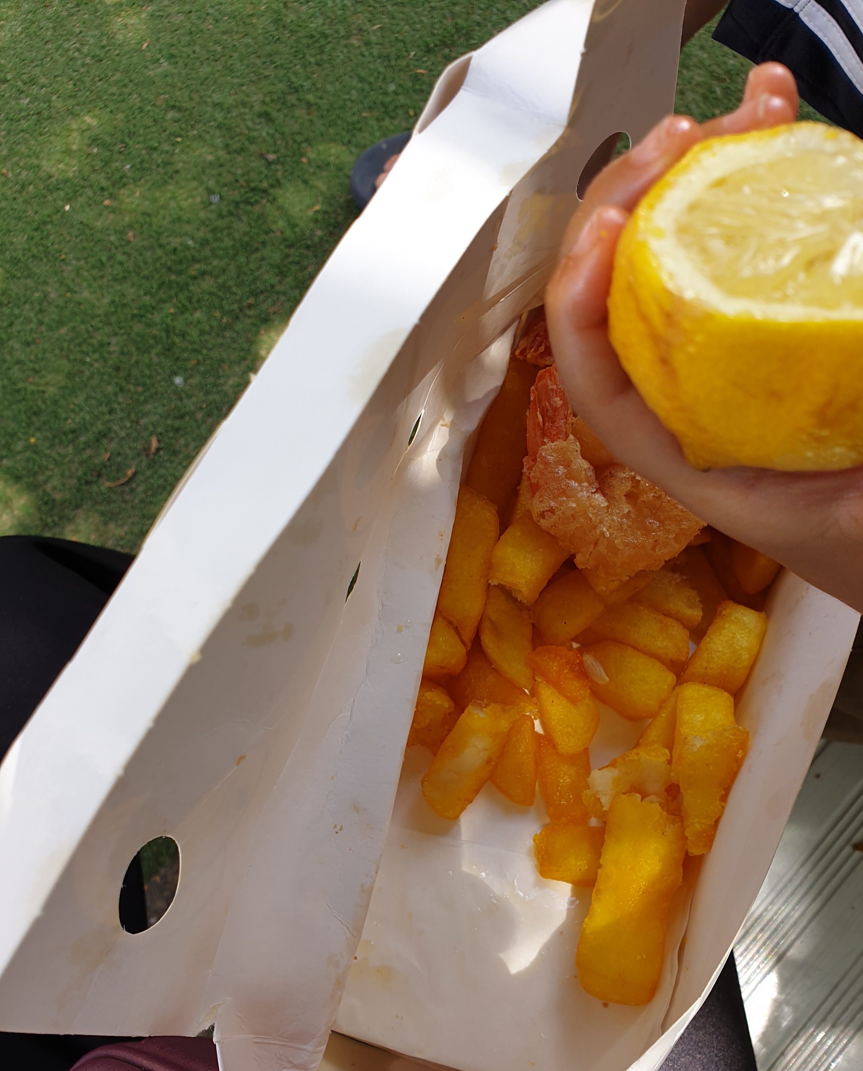 피시 앤 오징어 튀김($17.90)이랑 새우튀김 & 칩스(24.90) 시켰는데 사진을 거의 다 먹고 찍었네요.ㅎㅎ
