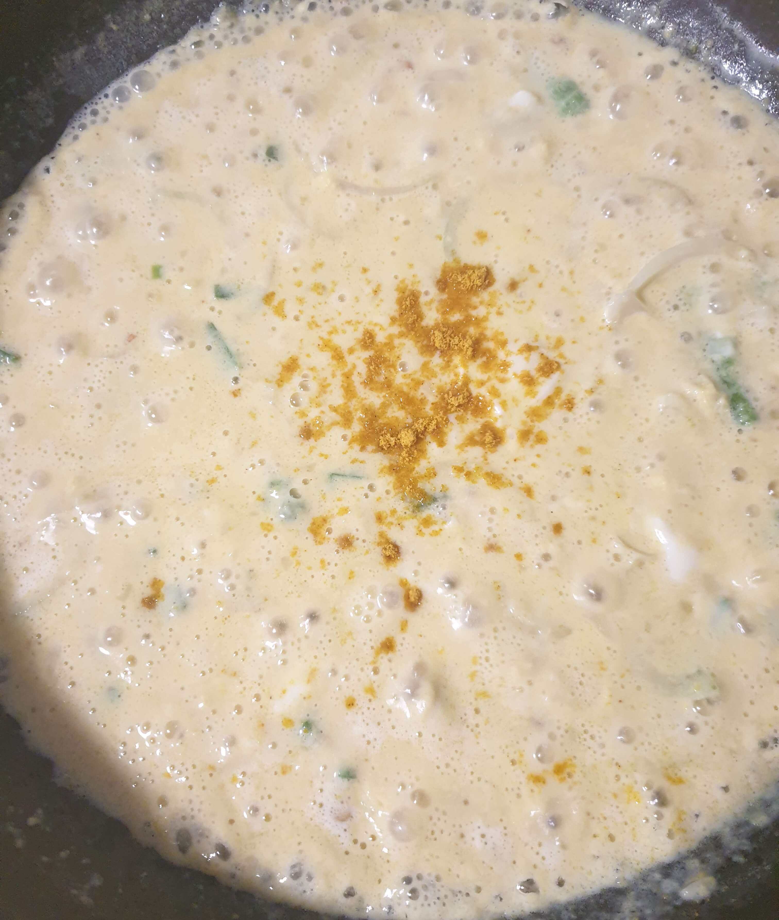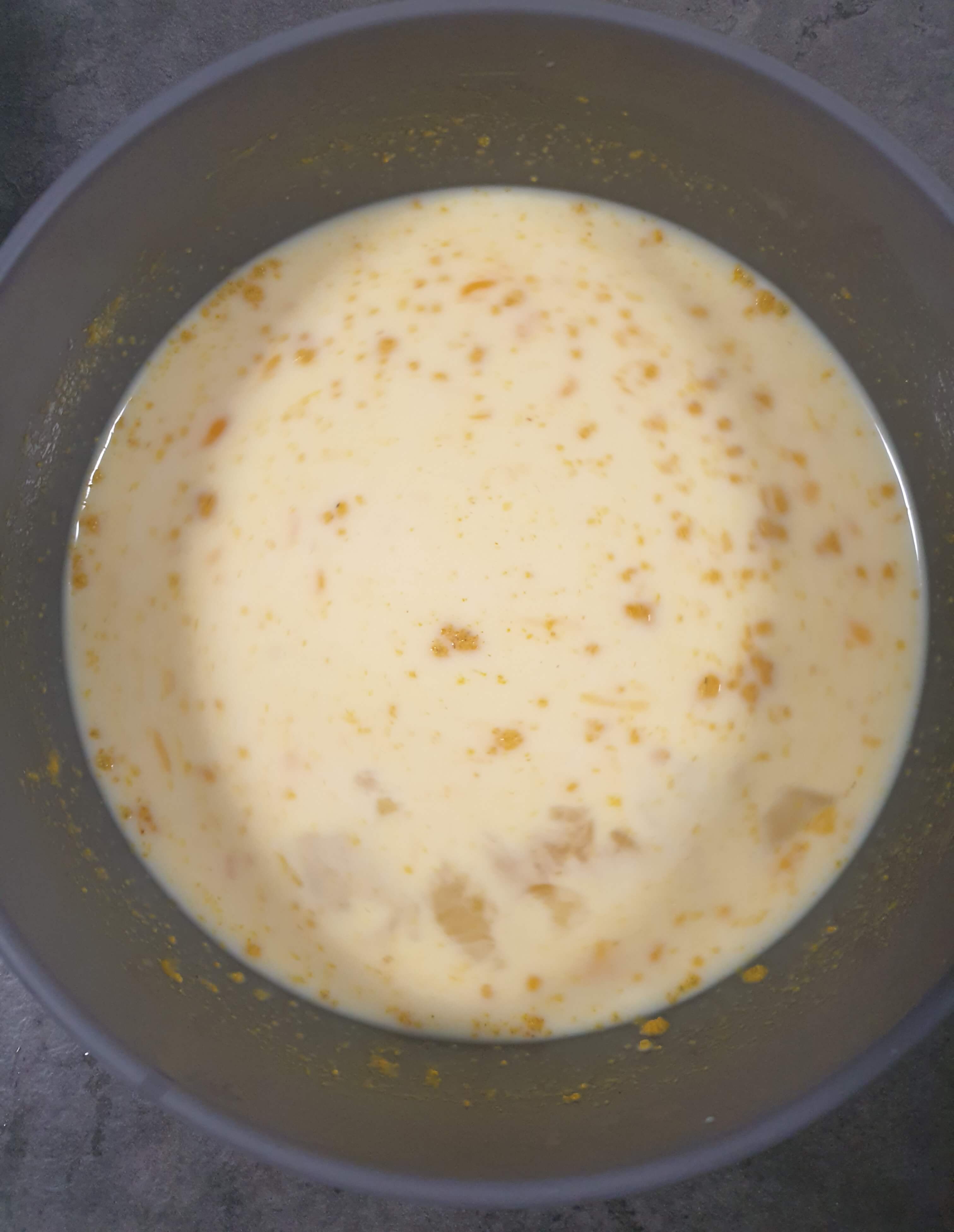 우유에 풀어놓은 카레를 다 부어 주세요.
