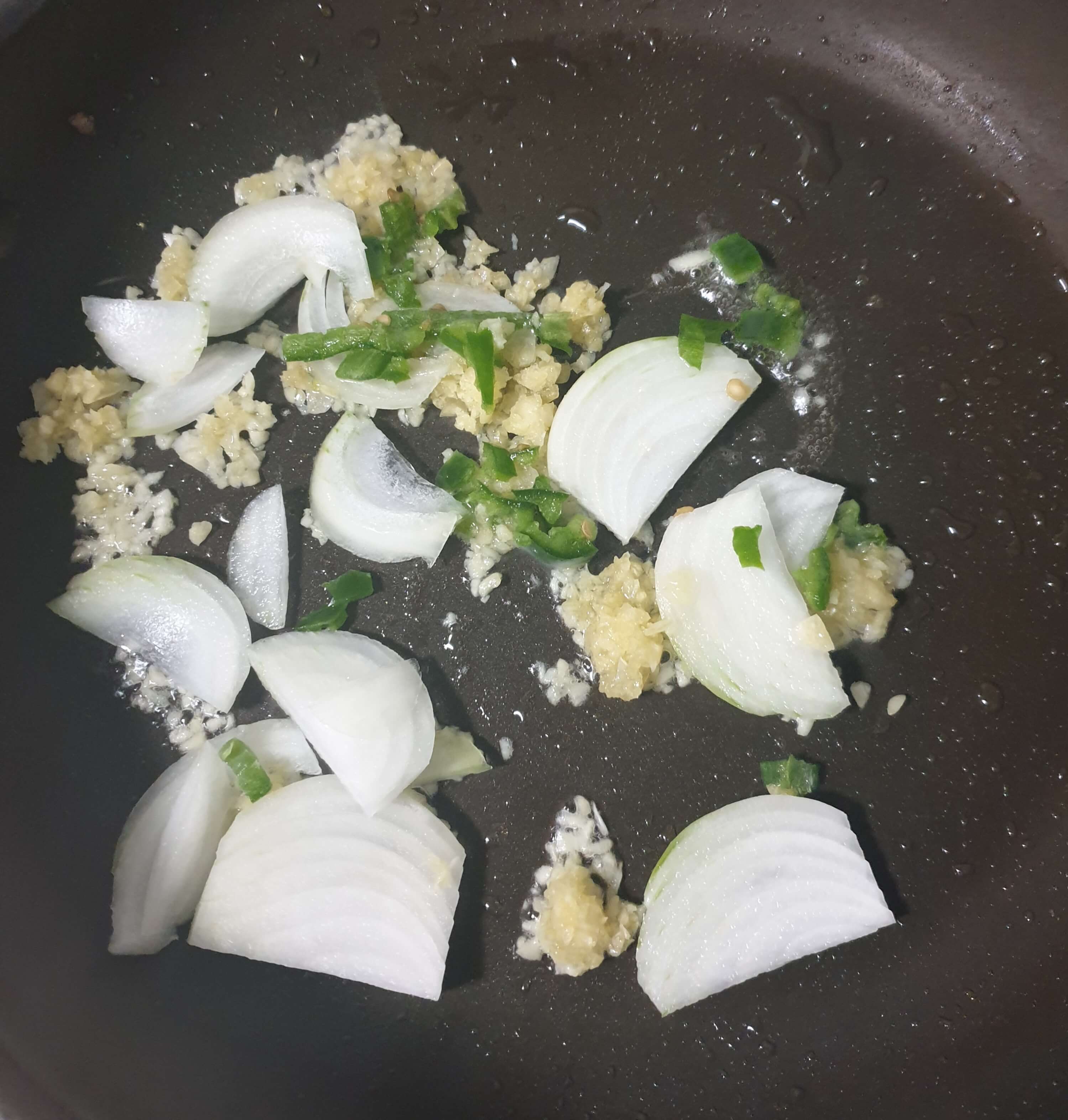 다진 마늘이 타지 않을 정도로만 볶아 줍니다.