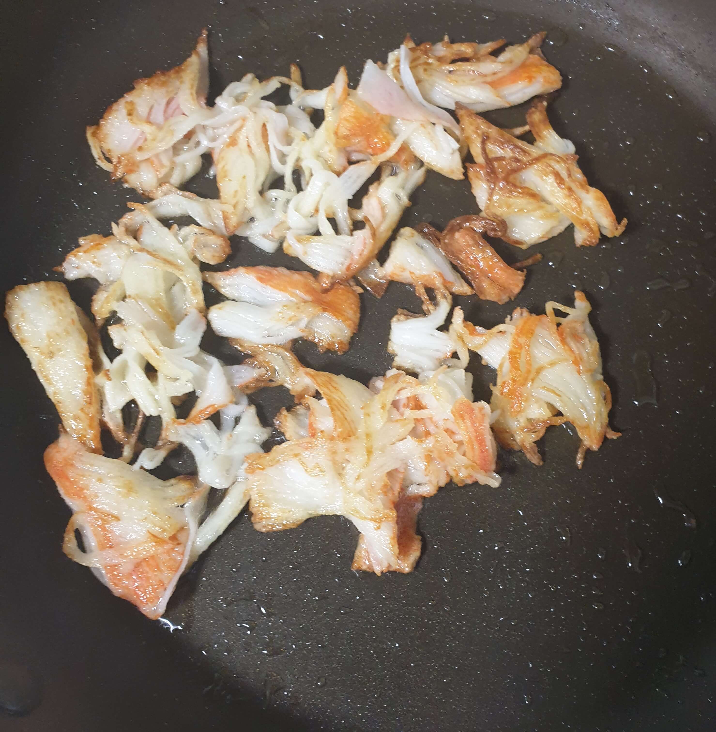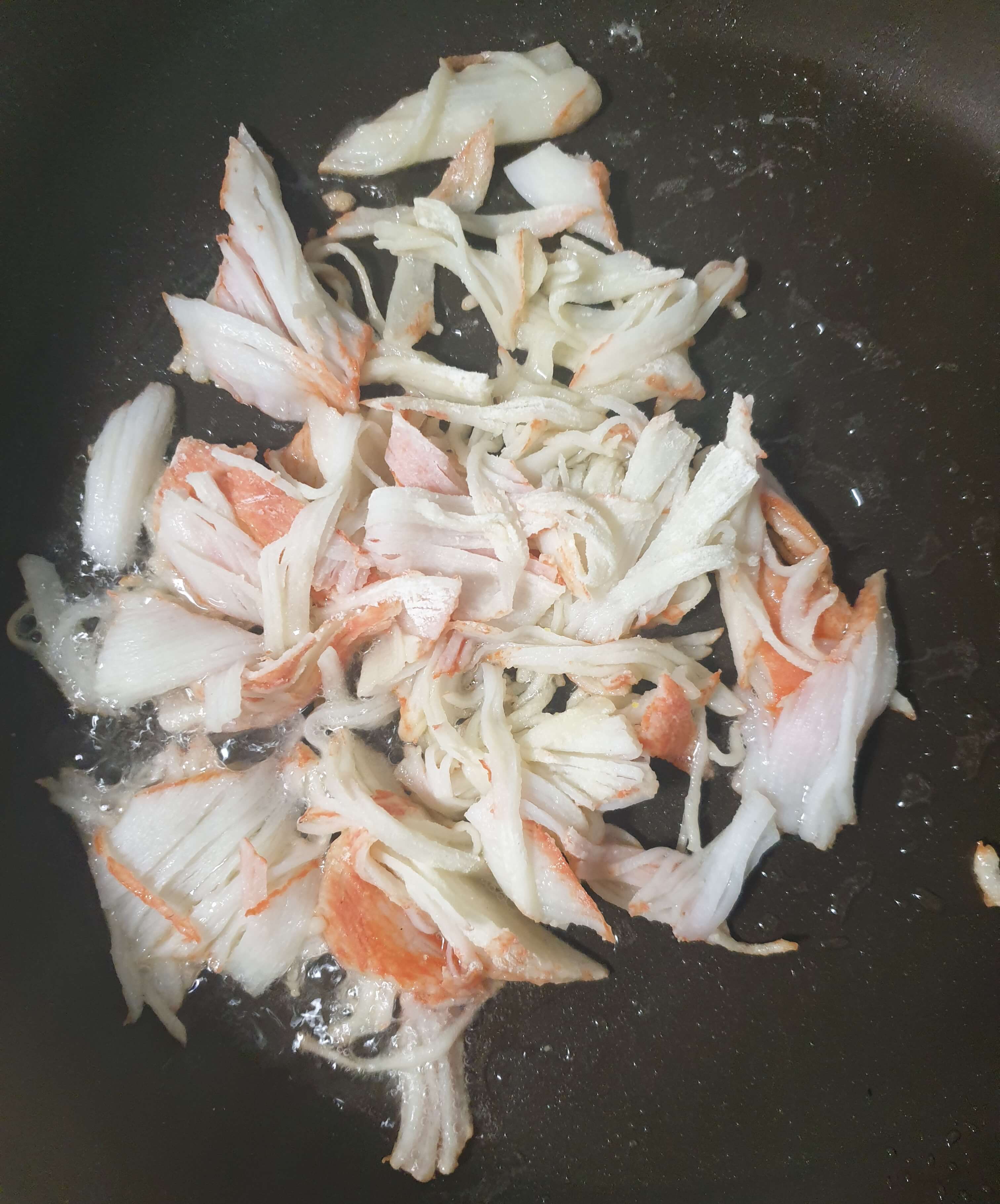 크래미를 앞 뒤로 바짝 튀겨 주세요.